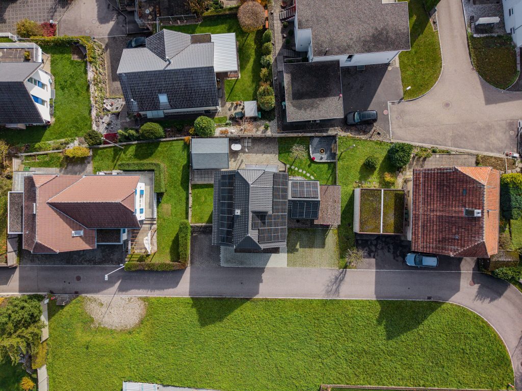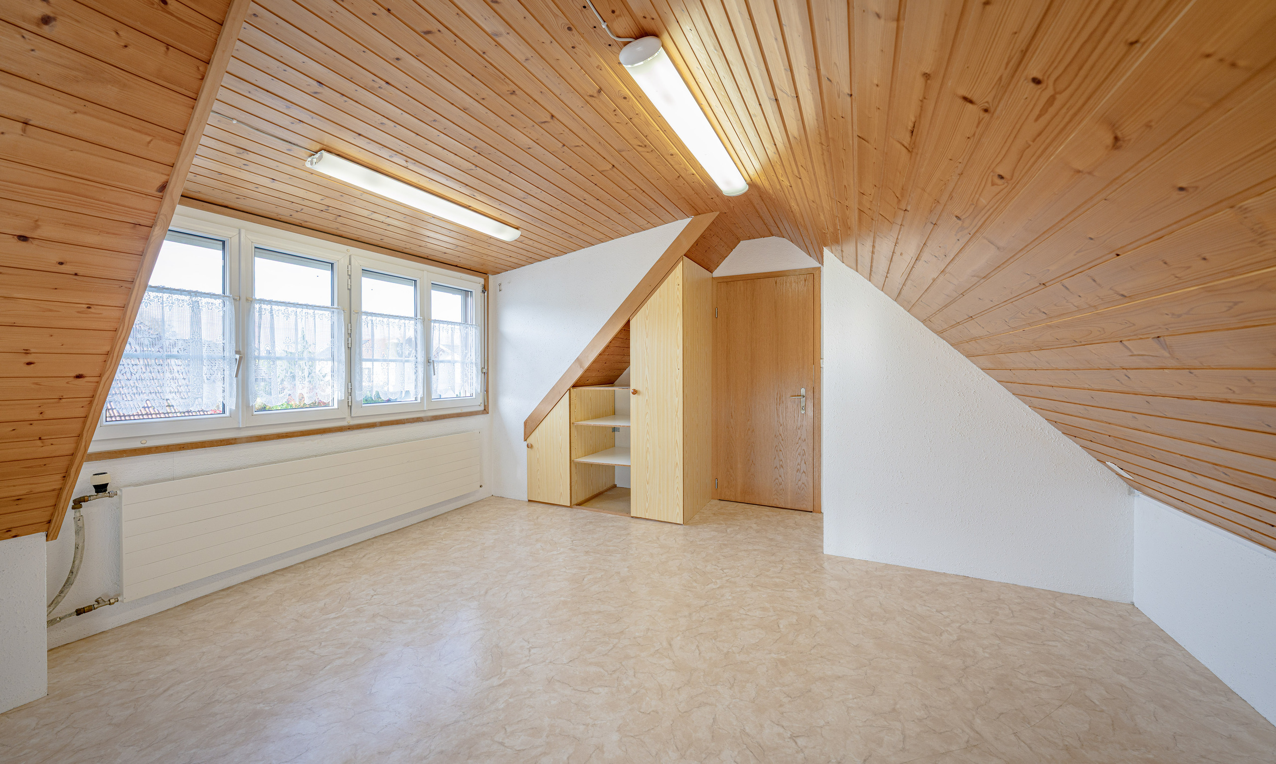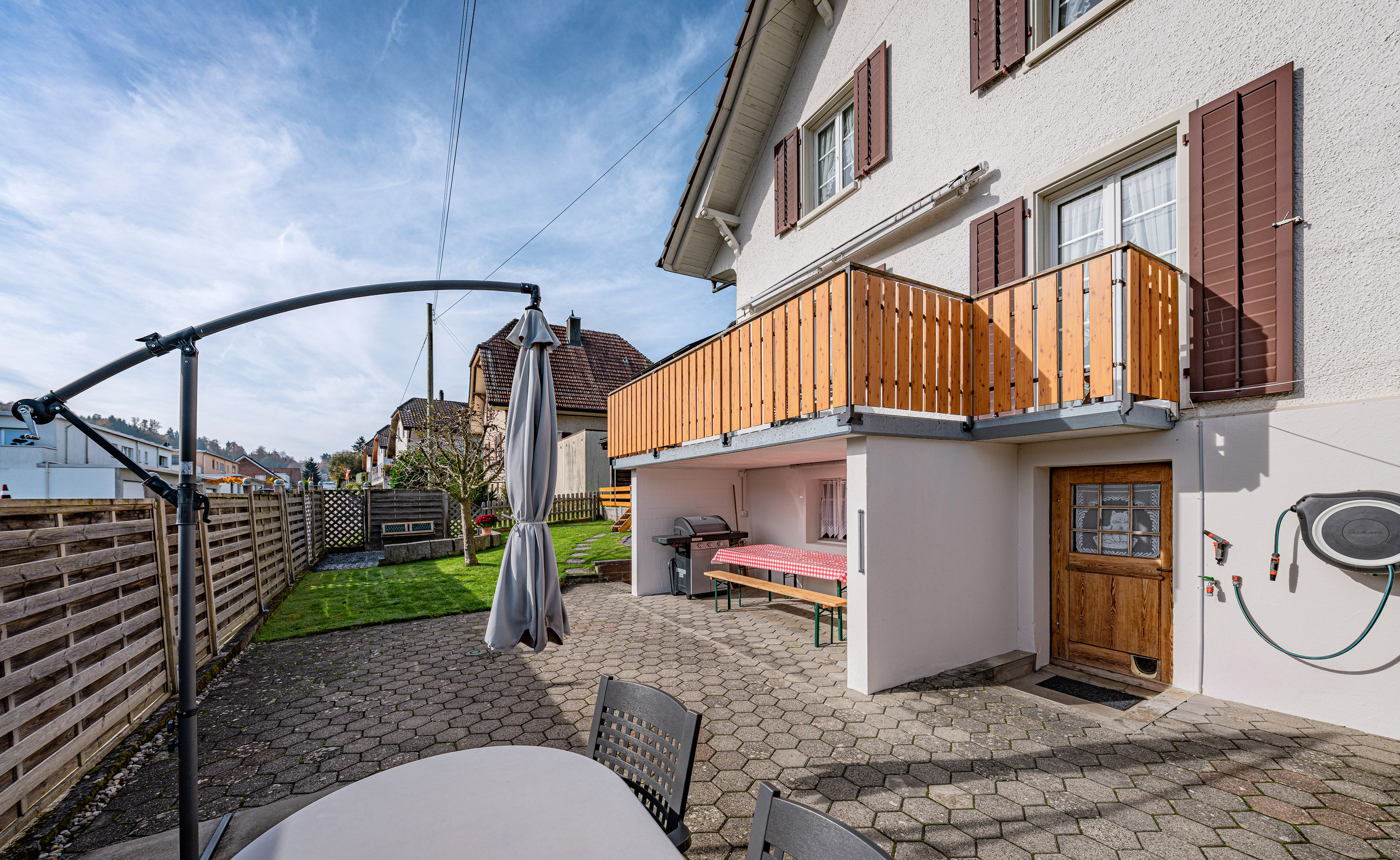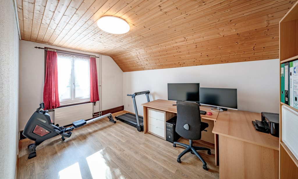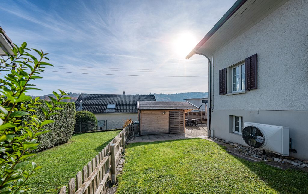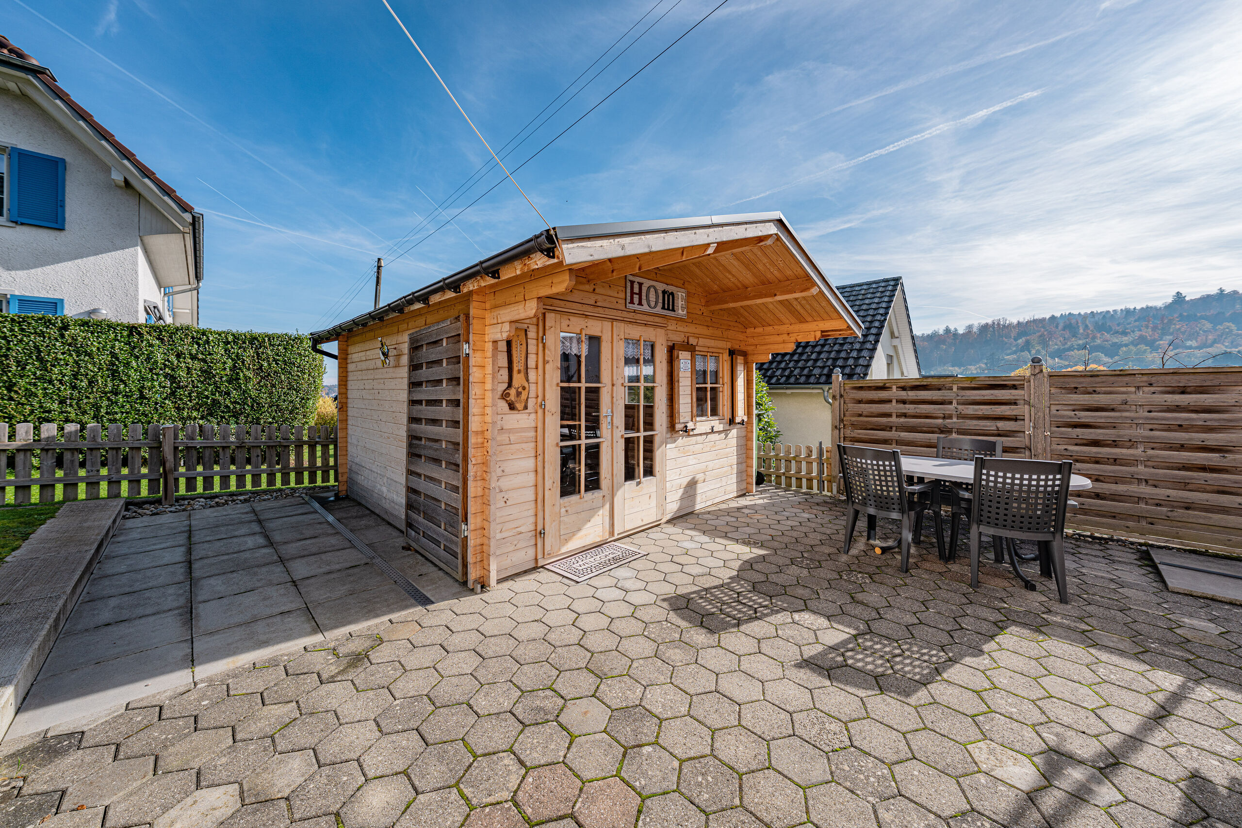 Im Untergeschoss stehen praktische Räume zur Verfügung: Werkstatt, Waschküche, Keller und ein vielseitig nutzbarer Hobbyraum. Der Aussenbereich ist gepflegt, gut nutzbar und dennoch angenehm unkompliziert zu unterhalten. Ein teils gedeckter Gartensitzplatz, eine Rasenfläche, eine Feuerstelle, ein Obstbaum und ein Gartenhaus schaffen eine Umgebung, die Familien und Gartenfreunde gleichermassen anspricht.