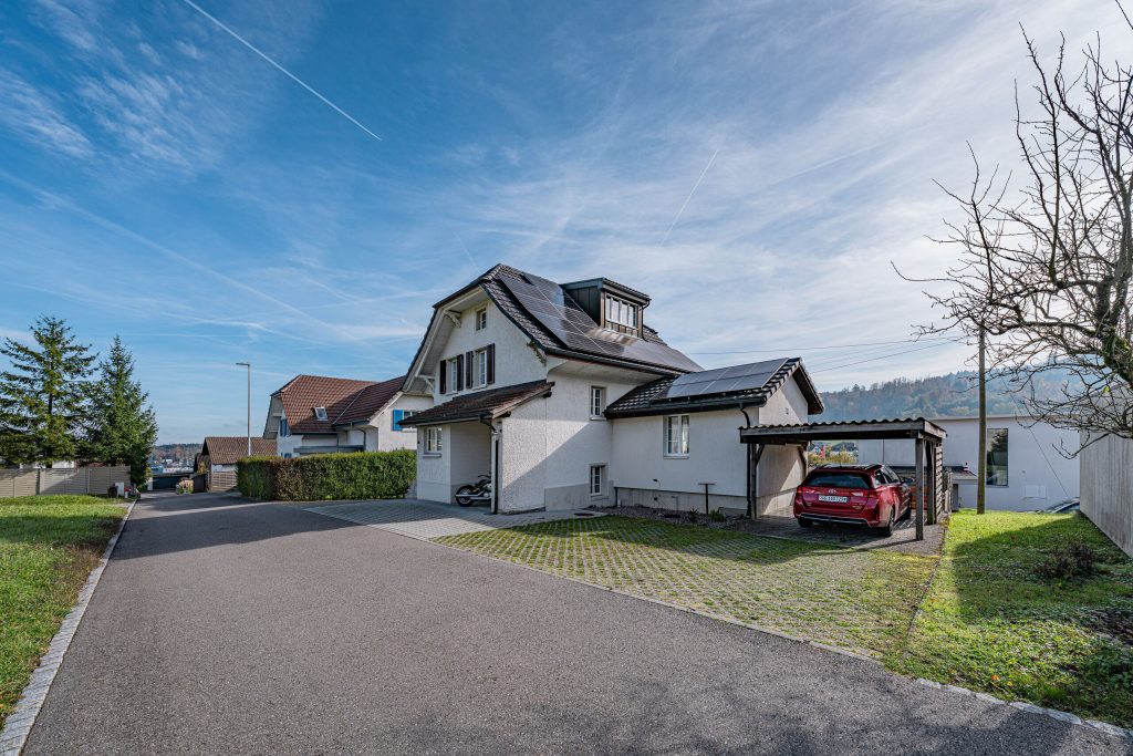 Für Fahrzeuge stehen zwei Carport-Plätze und sechs zusätzliche Aussenstellplätze bereit – ideal für Familien mit mehreren Autos oder Besucher.