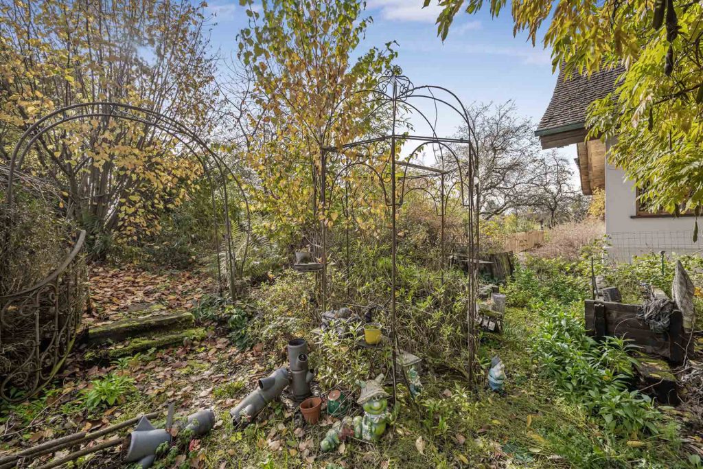 Der Aussenbereich umfasst einen weitläufigen Garten mit viel Potenzial. Aktuell ist er umfangreich mit Bäumen bepflanzt und bietet Raum für Spiel, Ruheplätze, Gemüsebeet oder einen neu angelegten Gartenbereich.