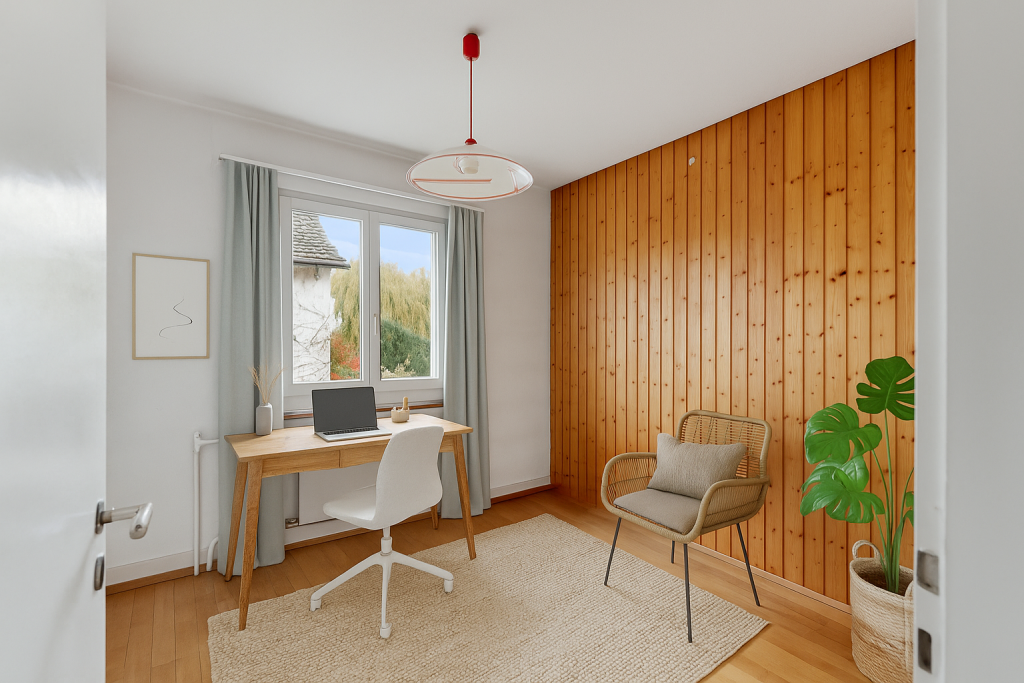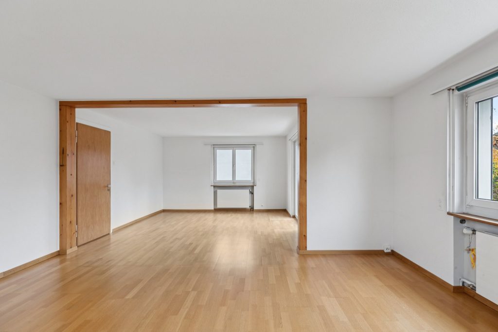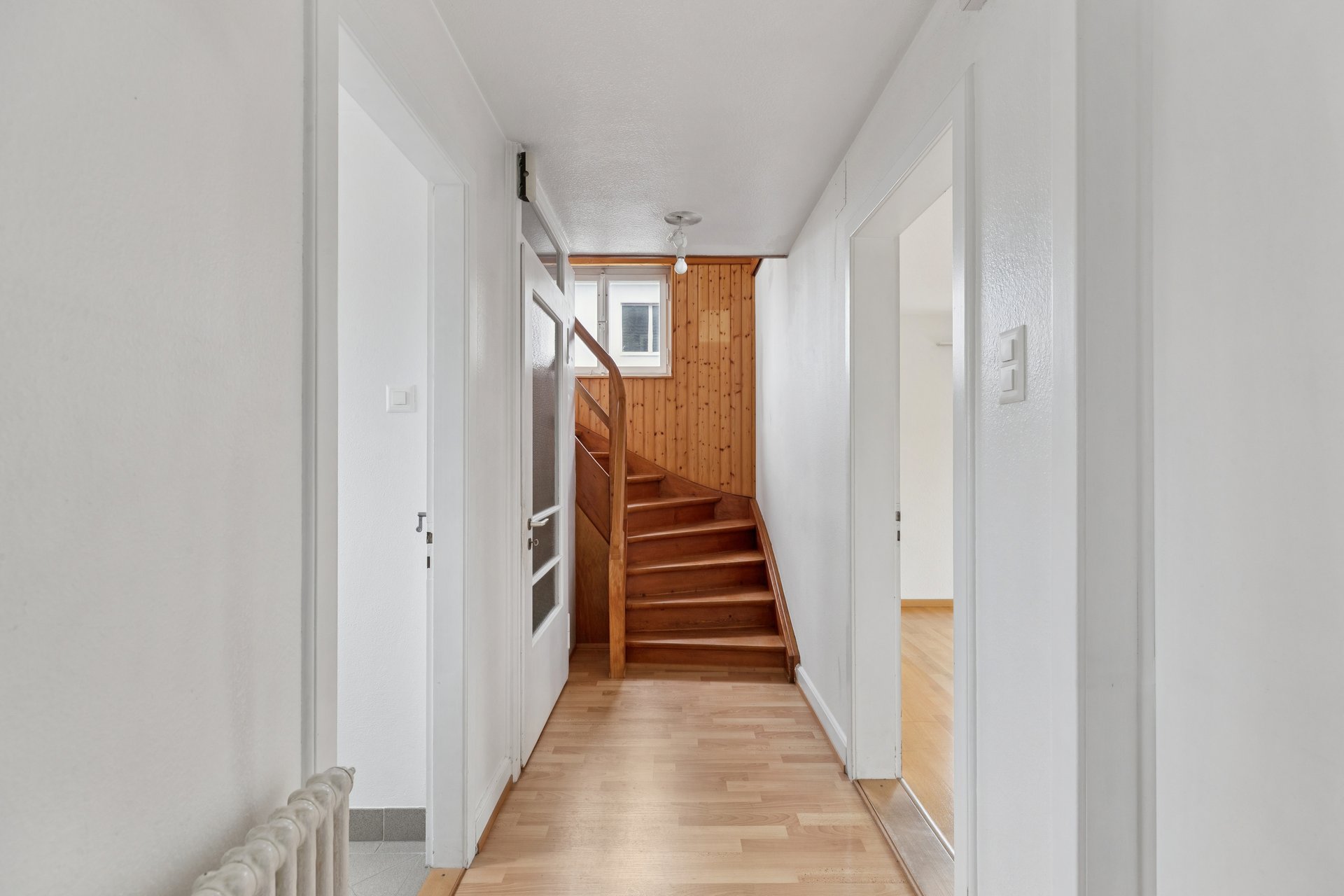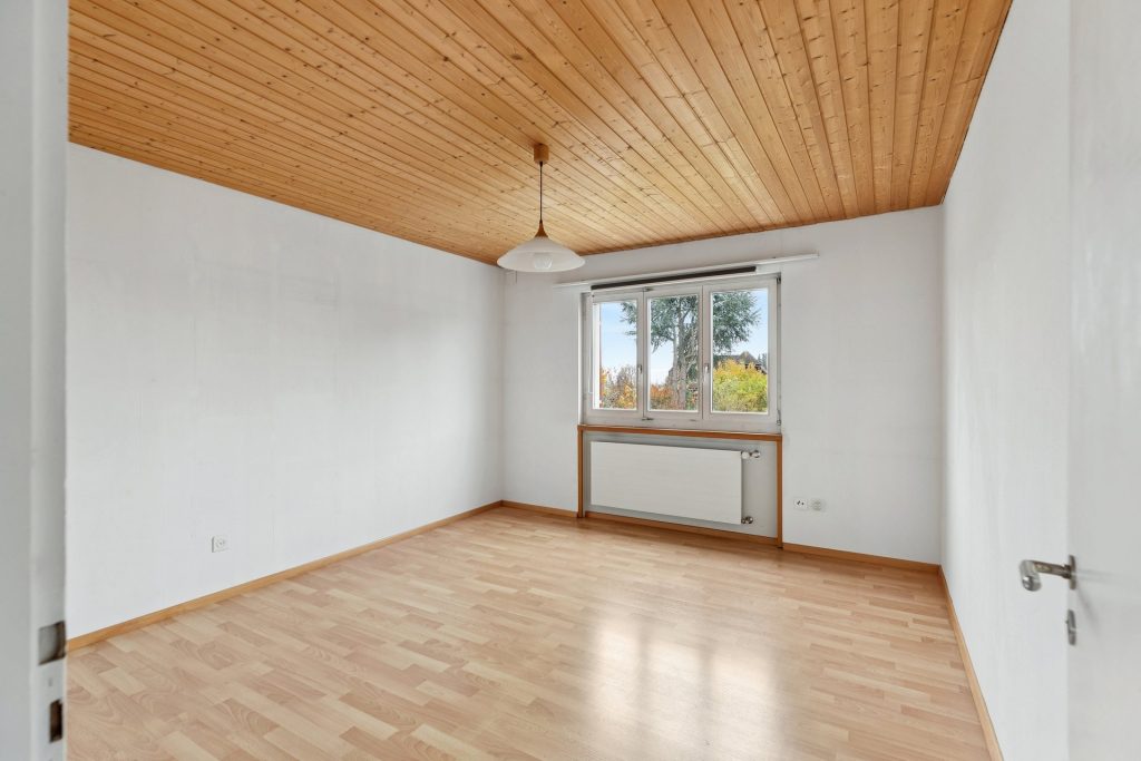 Die Küche ist grosszügig gehalten, mit einer gemütlichen Sitzbank und genügend Raum für einen Esstisch. Zwei Nassbereiche sorgen für Komfort im Alltag: ein Bad/WC im Obergeschoss sowie ein Gäste-WC im Erdgeschoss. Das Nebenraumangebot ist deutlich überdurchschnittlich: ein grosser Estrich im Dachgeschoss, zwei Kellerräume, eine Waschküche und ein Heizungsraum mit integrierter Werkbank.