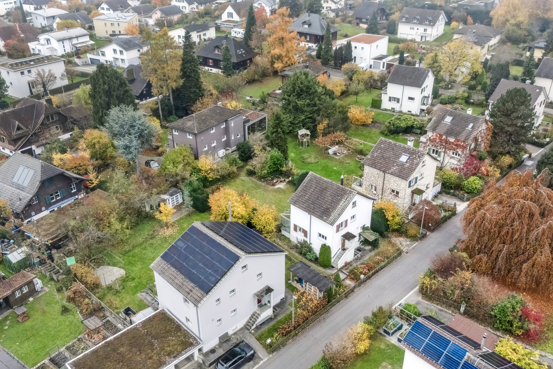 Der Aussenbereich ist gepflegt und angenehm pflegeleicht. Ein Sitzplatz, eine Rasenfläche und ein Gartenunterstand schaffen genau die richtige Mischung aus Erholungsraum und praktischer Nutzung. Und wer gerne am Wasser ist, erreicht den schönen Arboner Hafen mit dem Velo in nur sieben Minuten.