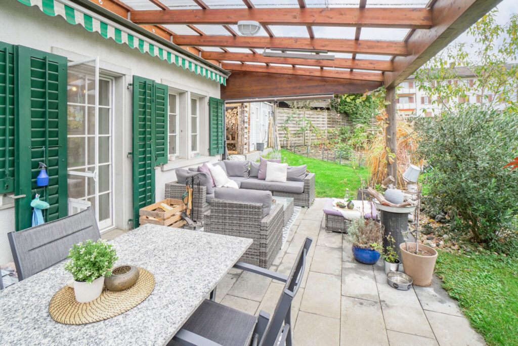 - Umgebung: Grosszügiger, sonniger Garten mit Gestaltungsmöglichkeiten
