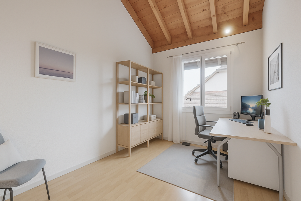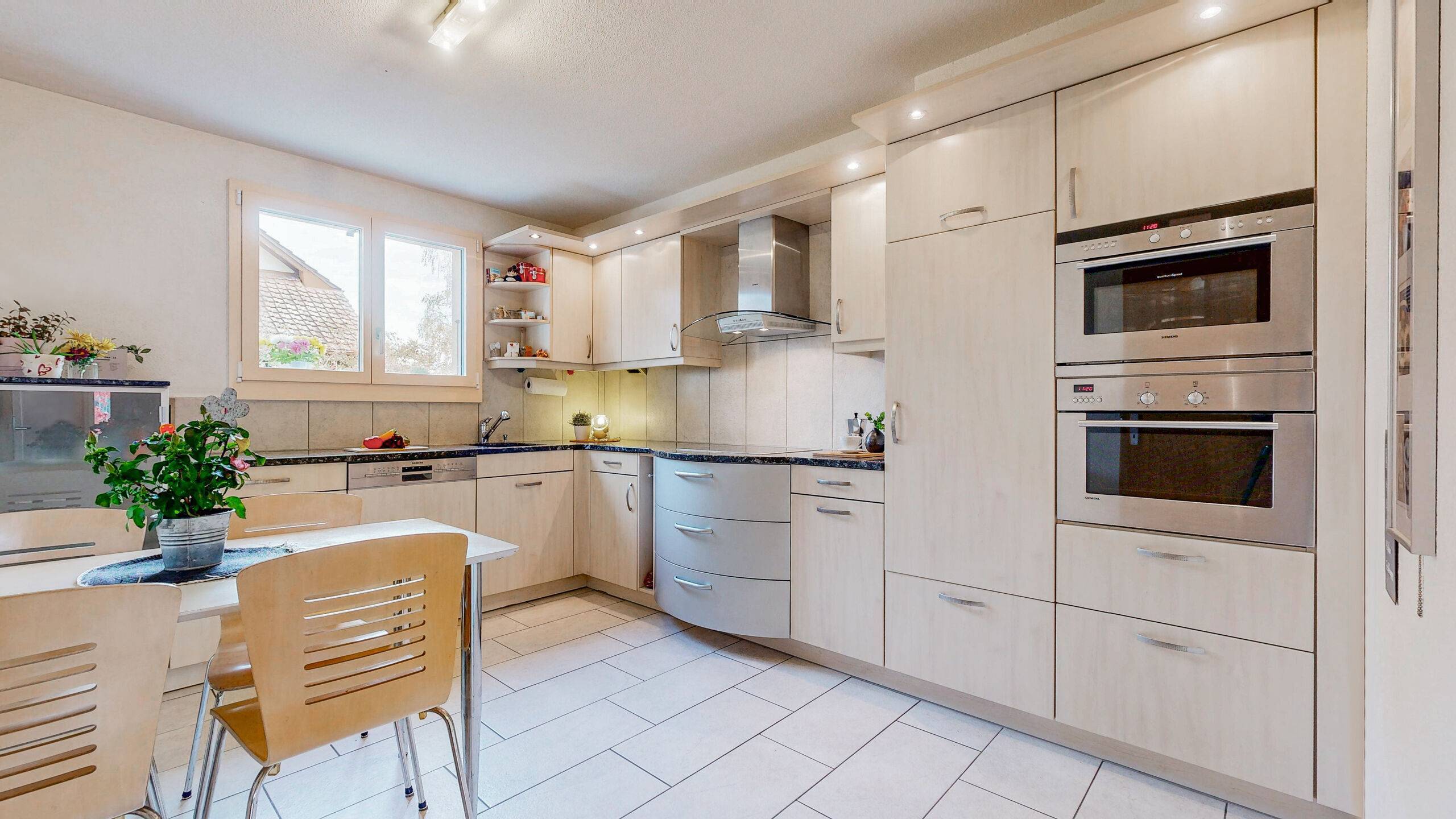 Die rund 126 m² Wohnfläche verteilen sich auf einen gut nutzbaren Grundriss, der ohne komplizierte Wege auskommt. Helle Wohnräume schaffen eine freundliche Atmosphäre und geben dem Haus eine offene, einladende Wirkung. Der Wohn- und Essbereich bildet dabei den zentralen Treffpunkt für das tägliche Zusammenkommen – gemütlich, funktional und mit direktem Bezug zum Aussenbereich.