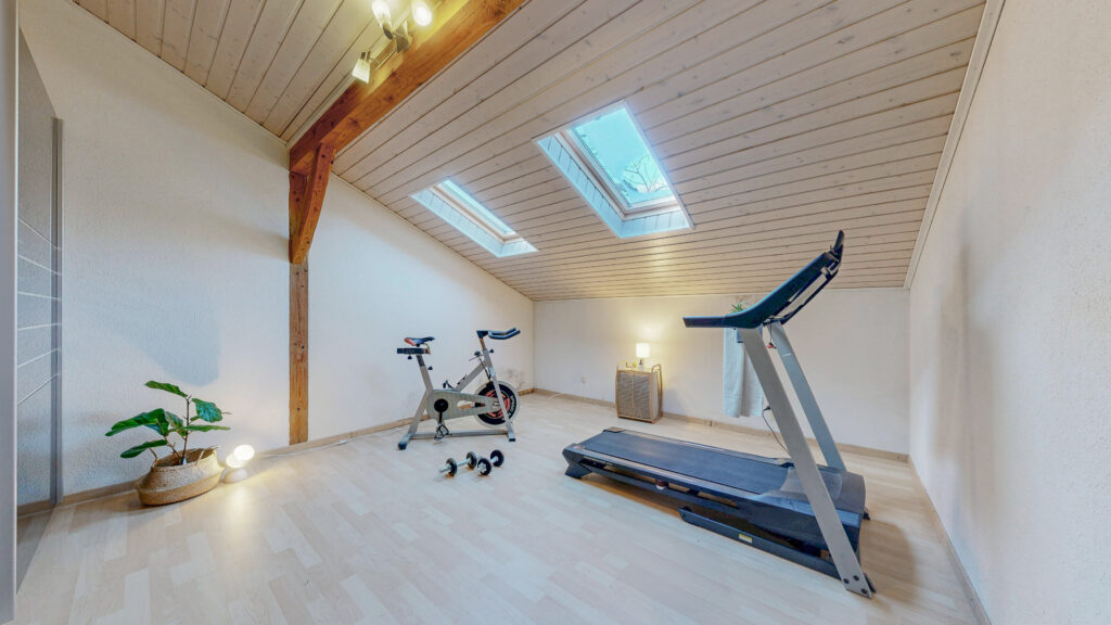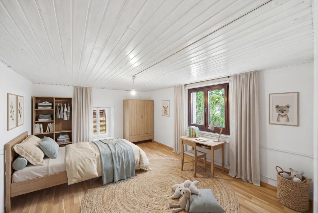 - Raumprogramm: Hochwertig ausgebautes 5.5 Zimmer Haus (aktuell vermietet) mit Galerie auf der Südseite, Einliegerwohnung im Erdgeschoss sowie eine 4.5 Zimmer Duplexwohnung im Norden, dazu ein externer Pferdestall