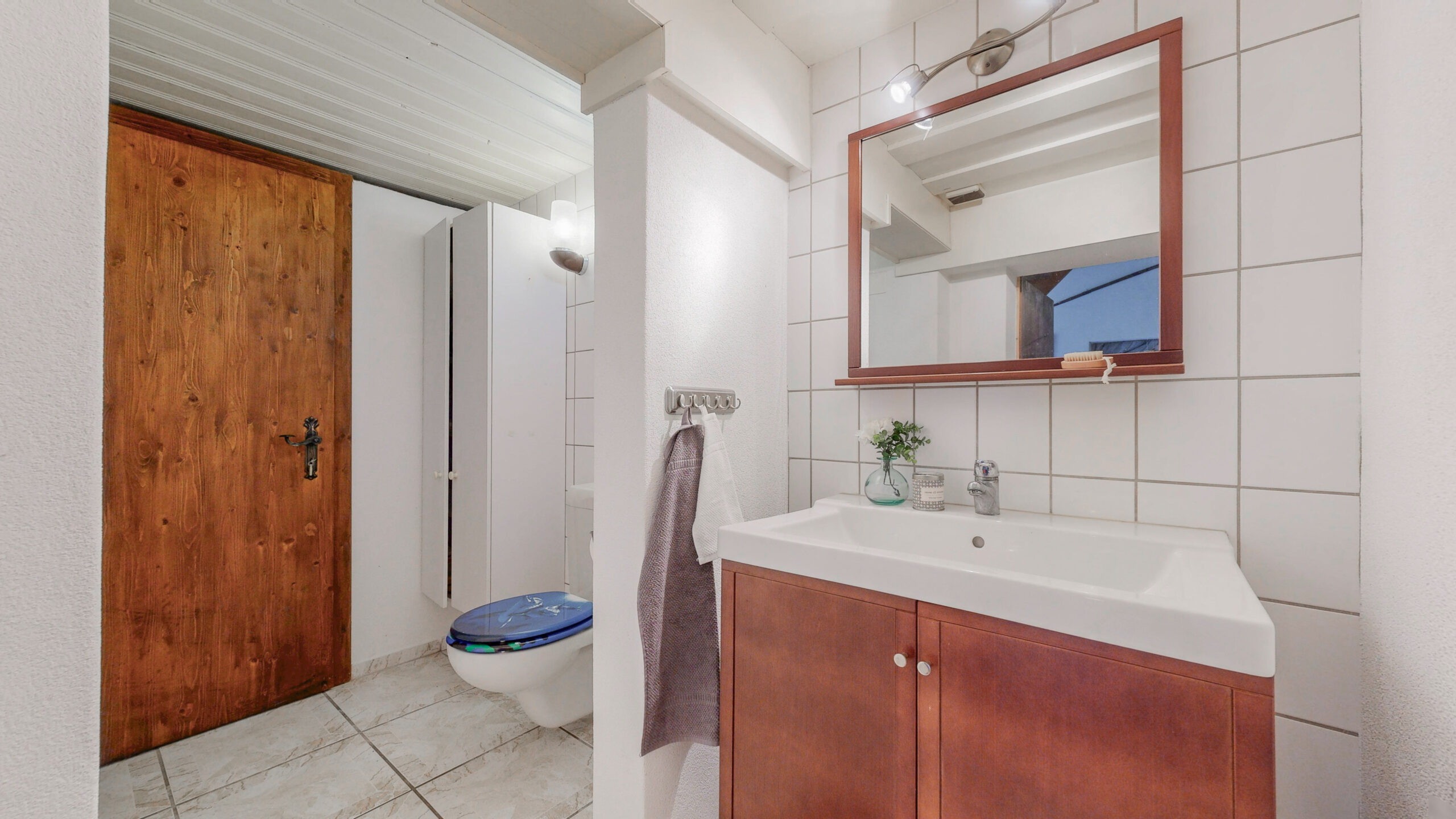 Ergänzt wird das Raumprogramm durch eine freundliche Einliegerwohnung im Erdgeschoss mit eigenem Bad. Eine Küche kann bei Bedarf problemlos integriert werden, wodurch sich die Einheit ideal für Gäste, Familienmitglieder oder zur Vermietung eignet.