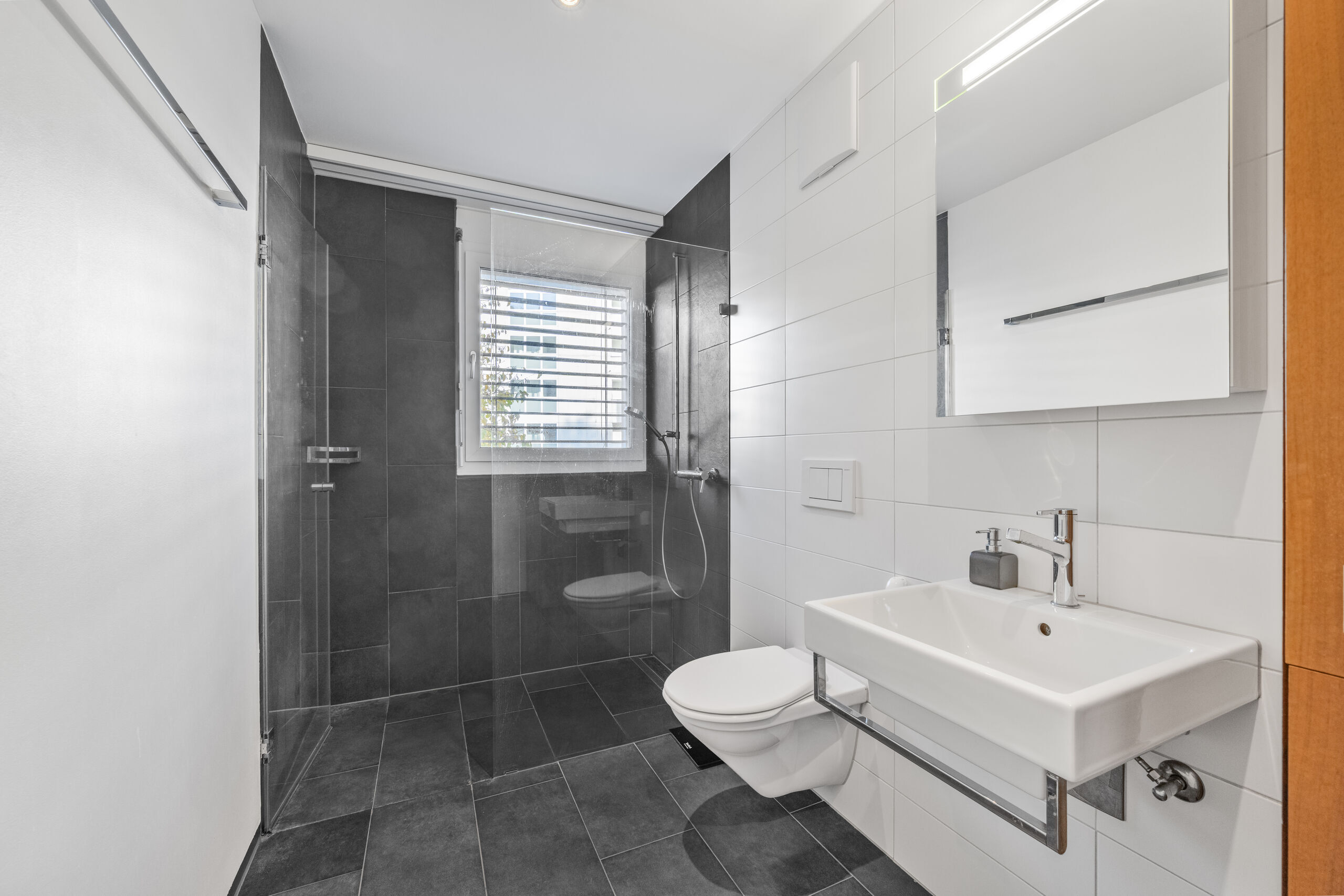 - Zwei grosszügige und hochwertige Nassbereiche: Bad/WC mit Waschturm und Dusche/WC