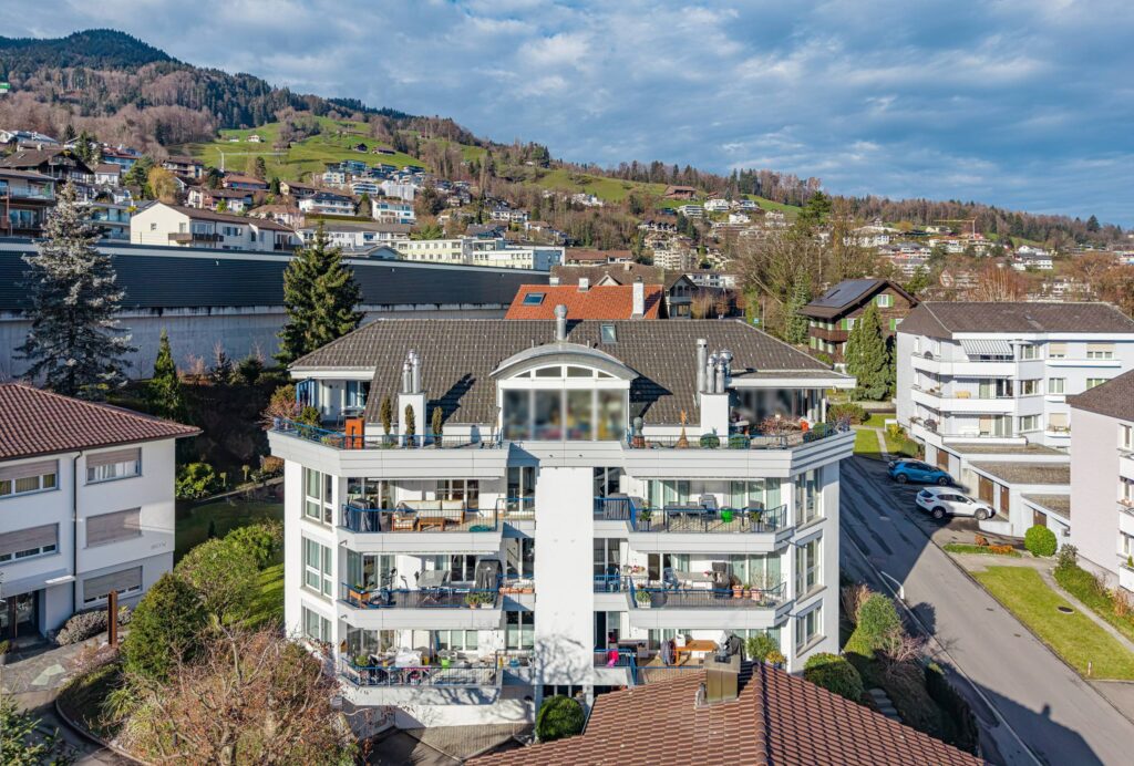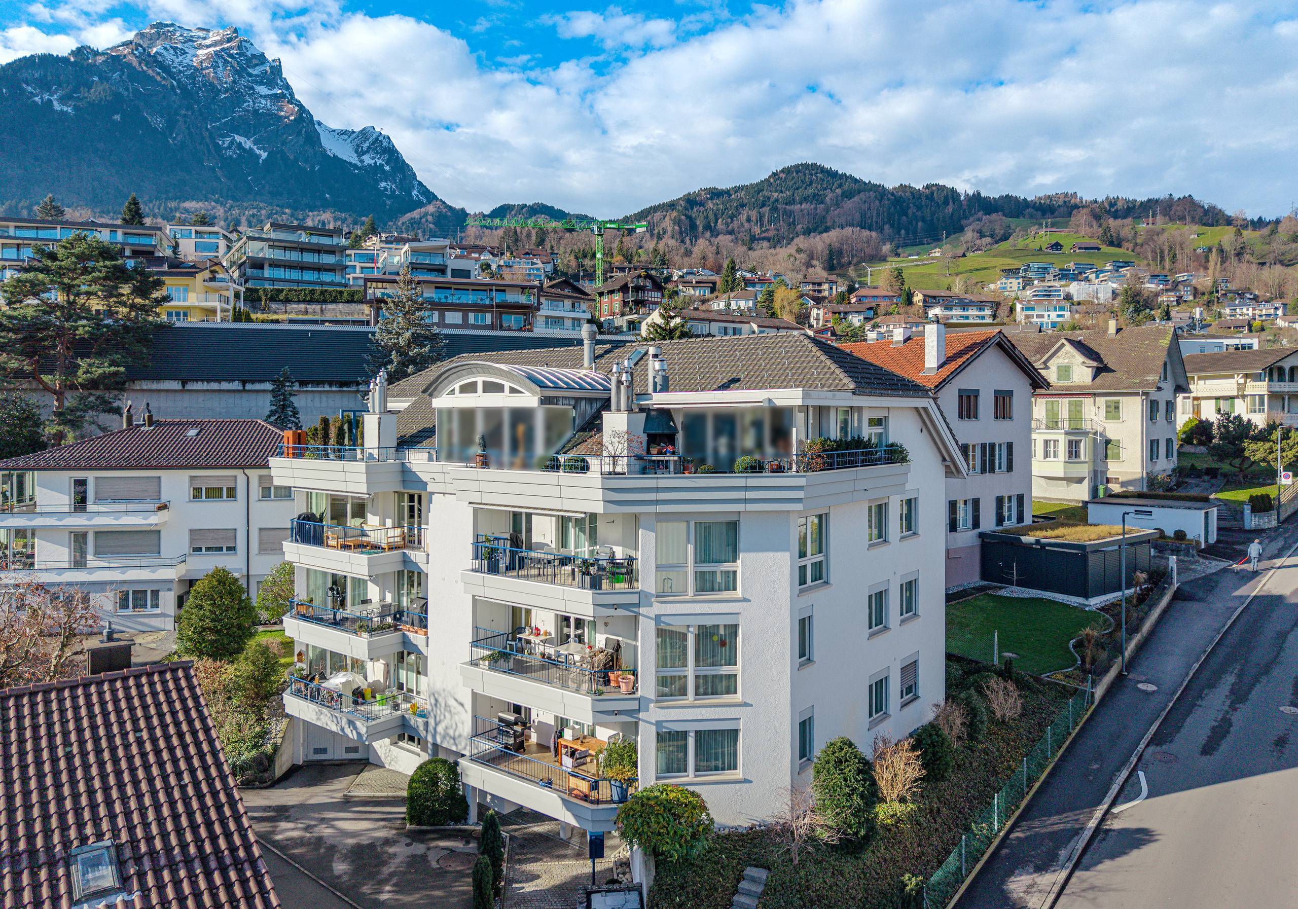 Ein Personenlift im Gebäude ermöglicht einen bequemen Zugang zur Wohnung. Ein Einstellhallenplatz ist bereits im Kaufpreis inbegriffen. Die Lage rundet das Gesamtpaket ab: In nur etwa zehn Gehminuten erreichen Sie sowohl den Vierwaldstättersee als auch den Bahnhof. Eine Wohnung für alle, die Aussicht, Qualität und Lebensqualität schätzen.