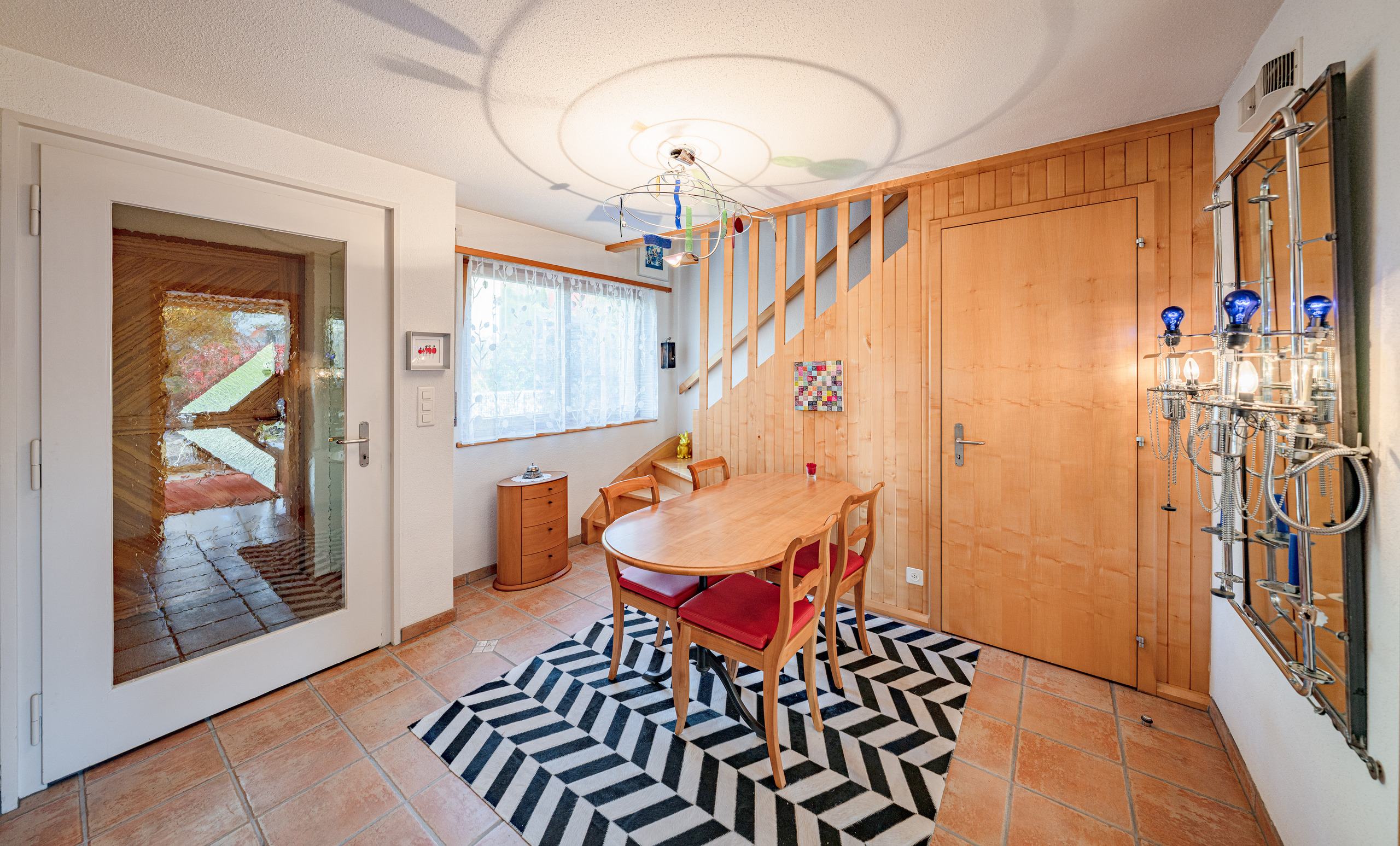 Dank regelmässiger Sanierungen präsentiert sich das Haus in sehr gutem Zustand. Die zeitgemässe Innenarchitektur kombiniert ein freundliches Farbkonzept mit mutigen, frechen Akzenten – besonders eindrucksvoll in den Nassbereichen. Hier wurde nicht einfach renoviert, sondern gestaltet.