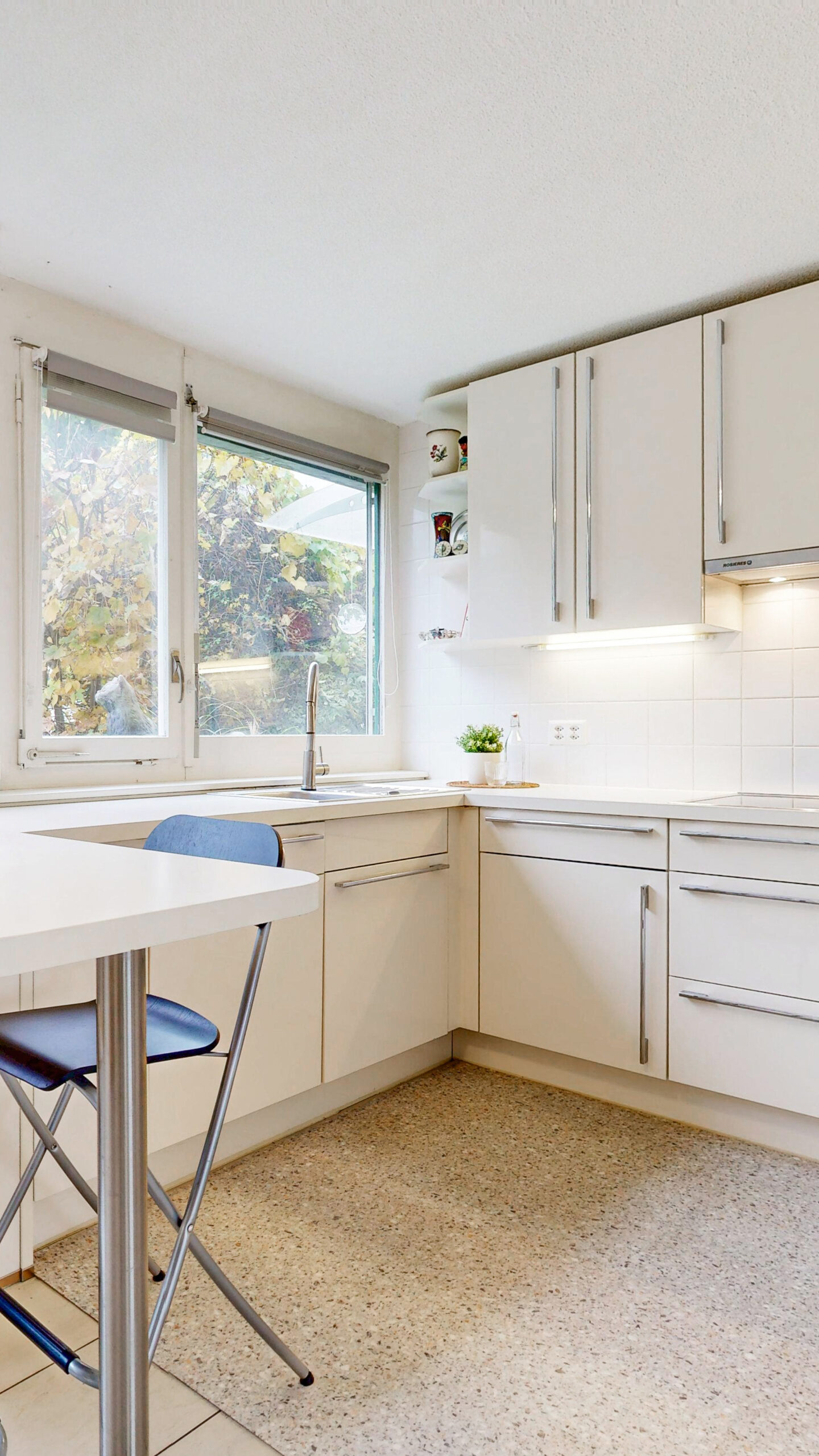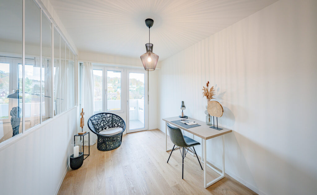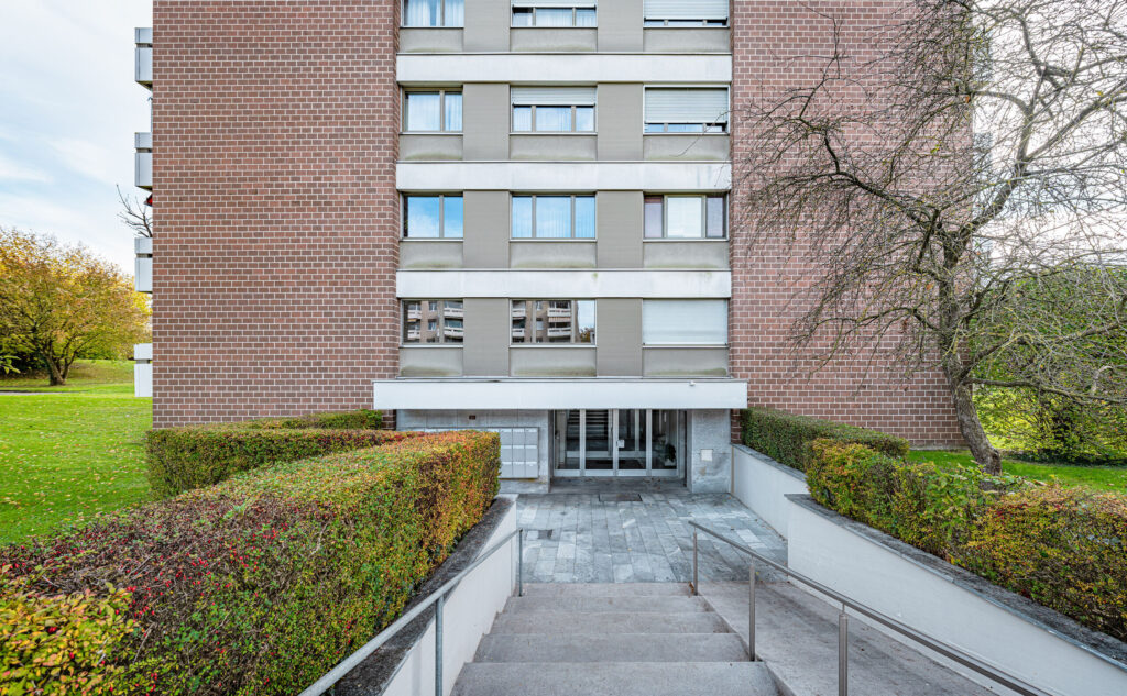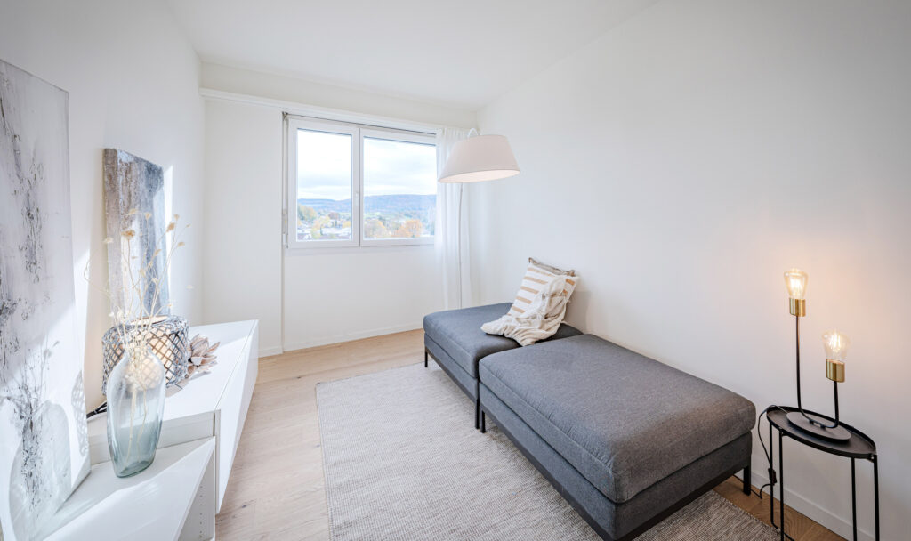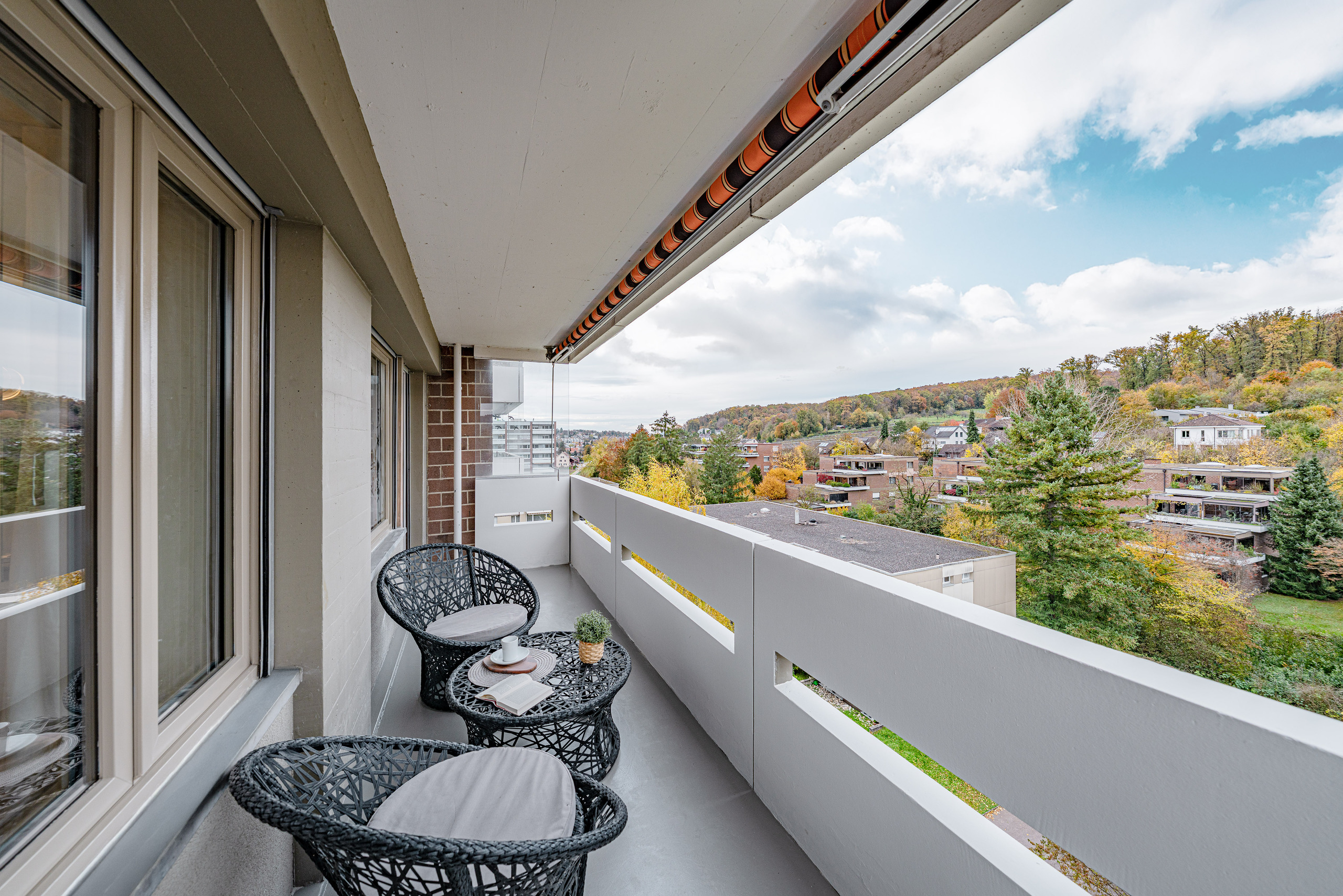 Hoch oben im 7. Stock ist die Welt mit viel Ruhe, Licht und Aussicht noch in Ordnung. Und nach der aufwendigen Totalsanierung ist diese 4.5 Zimmer Eigentumswohnung ohnehin ein guter Kauf. Doch damit der Vorteile nicht genug: