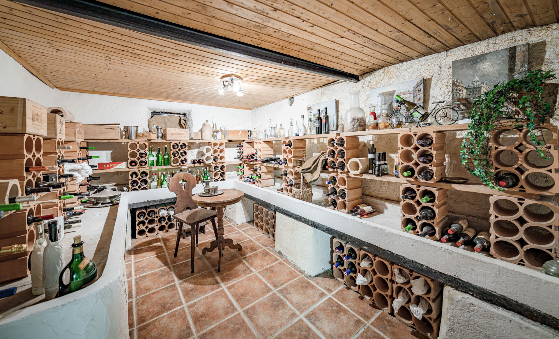 • Innenausbau: Rustikaler Innenausbau mit zahlreichen Sichtbalken und Sichtmauerwerk