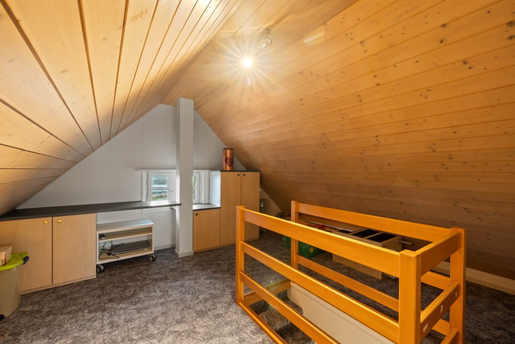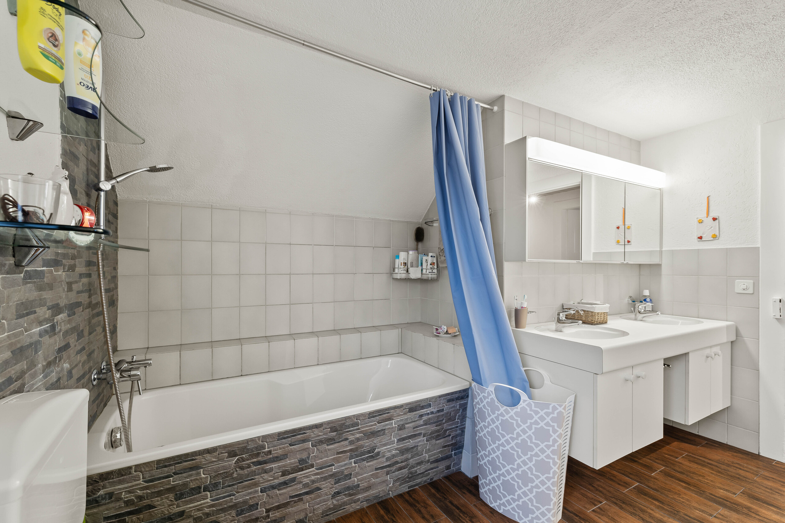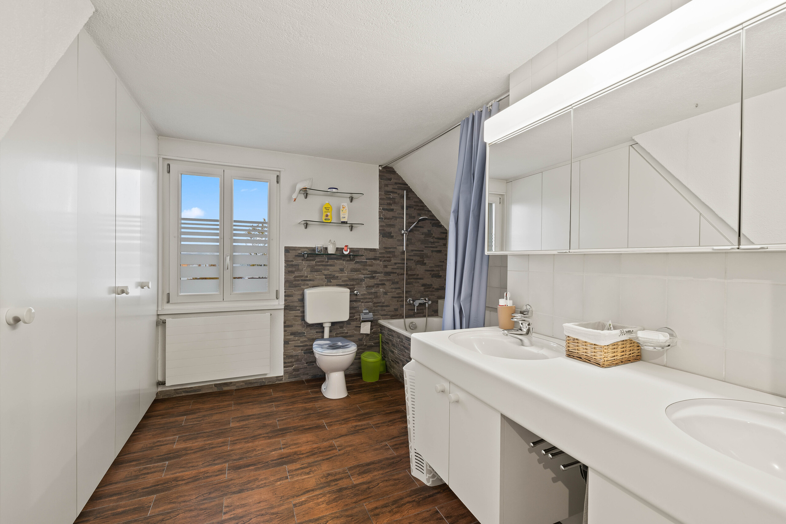 Die Küche bietet viel Platz, moderne Ausstattung und genügend Stauraum – ideal für alle, die gerne kochen. Ergänzt wird das Raumangebot durch praktische Nebenräume: ein grosser Keller, eine Waschküche und ein Estrich, der zusätzlichen Stauraum ermöglicht.