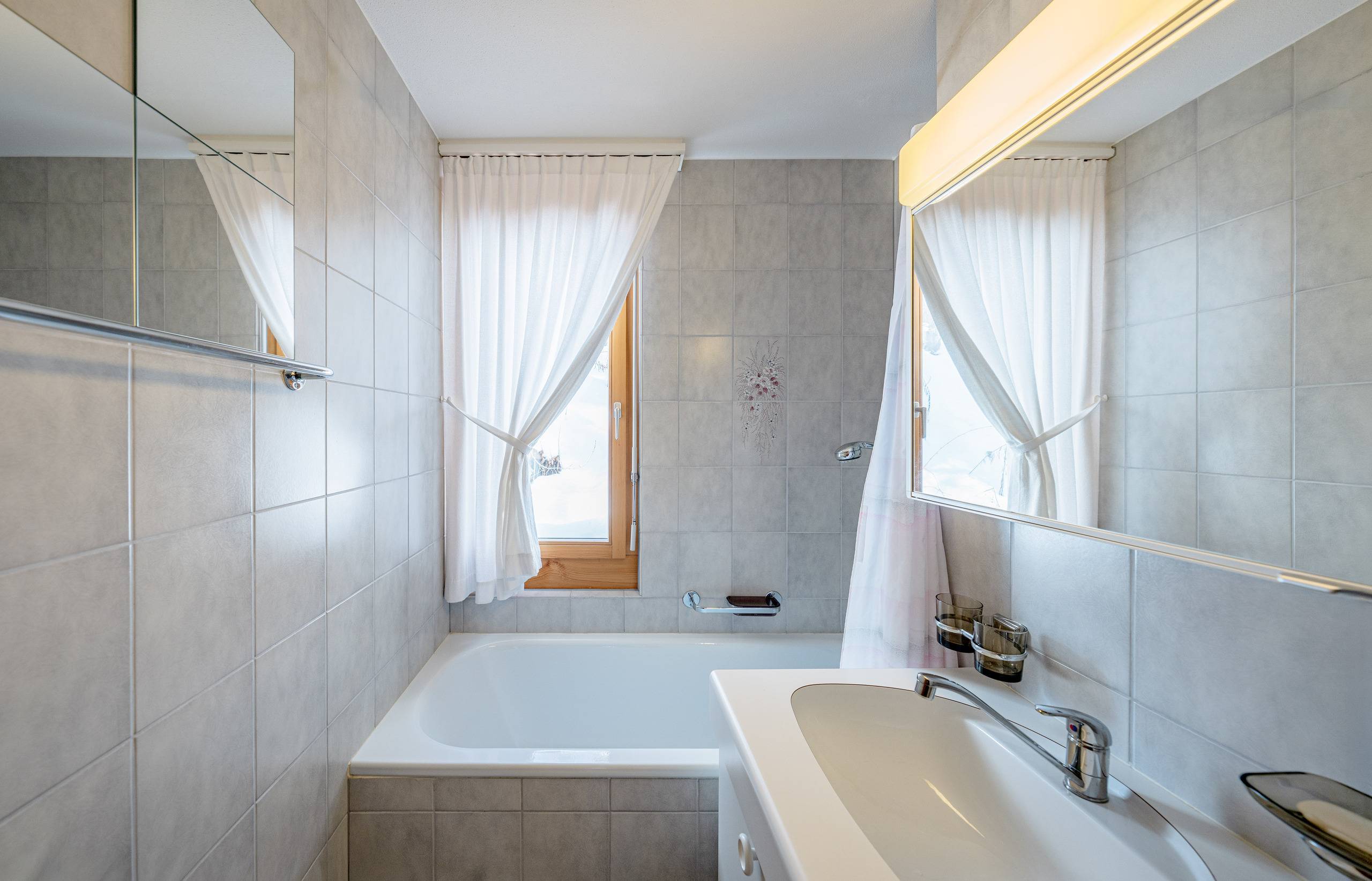 Der Aussenbereich überzeugt mit einem überdachten Balkon sowie einer panoramareichen Terrasse, die zum Verweilen, Sonnen und Entspannen einlädt. Ergänzt wird das Angebot durch funktionale Nebenräume wie ein Kellerabteil, einen gemeinschaftlich genutzten Skikeller sowie eine Waschküche.