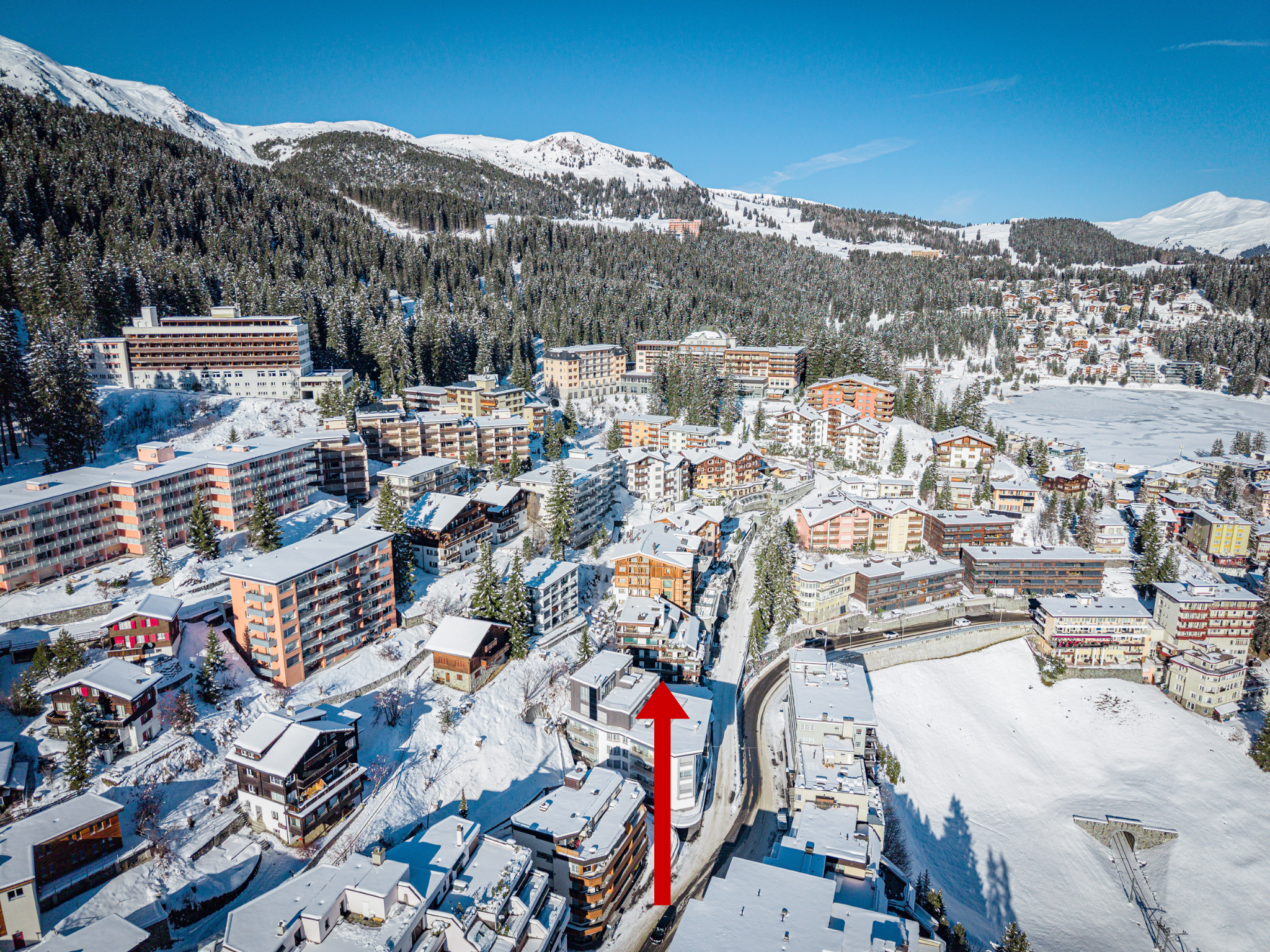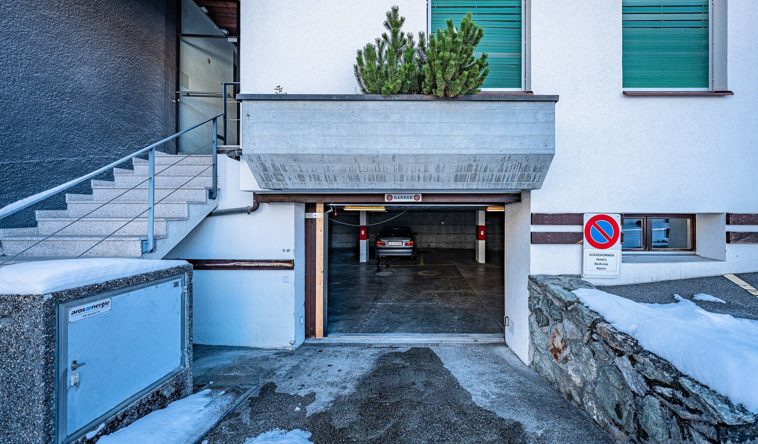 Ein Einstellhallenplatz mit bequem zugänglicher Zufahrt ist bereits im Kaufpreis inbegriffen – ein klarer Vorteil in Arosa.
