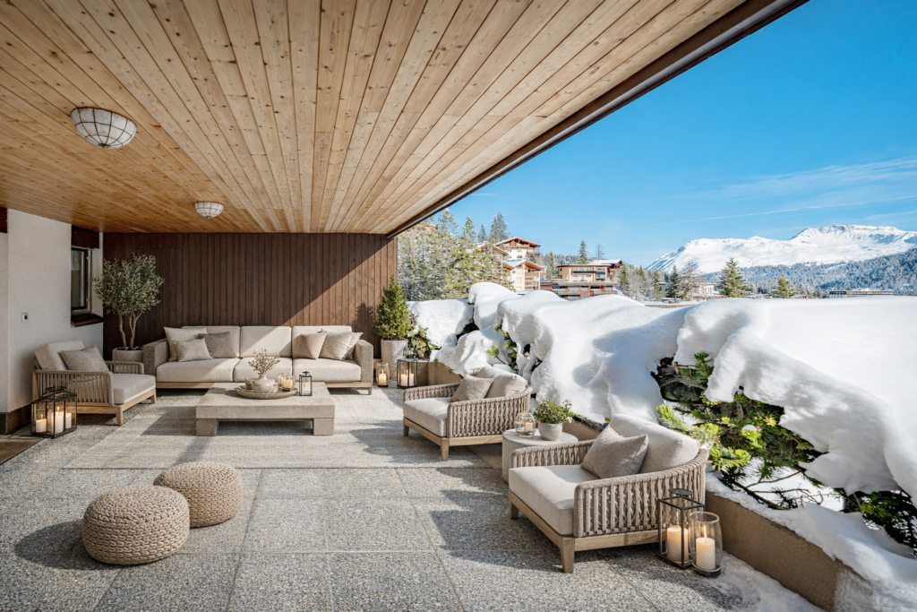 - Aussenbereich: Überdachter Balkon und panoramareiche Terrasse – perfekt für entspannte Stunden mit Alpenblick