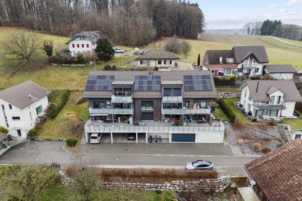 Die Parkierung ist bequem gelöst: Ein Einstellhallenplatz sowie ein Carport können bei Bedarf dazu erworben werden. Eine moderne Dachwohnung in naturnaher Lage, die Ruhe, Qualität und zeitgemässes Wohnen auf angenehme Weise vereint.