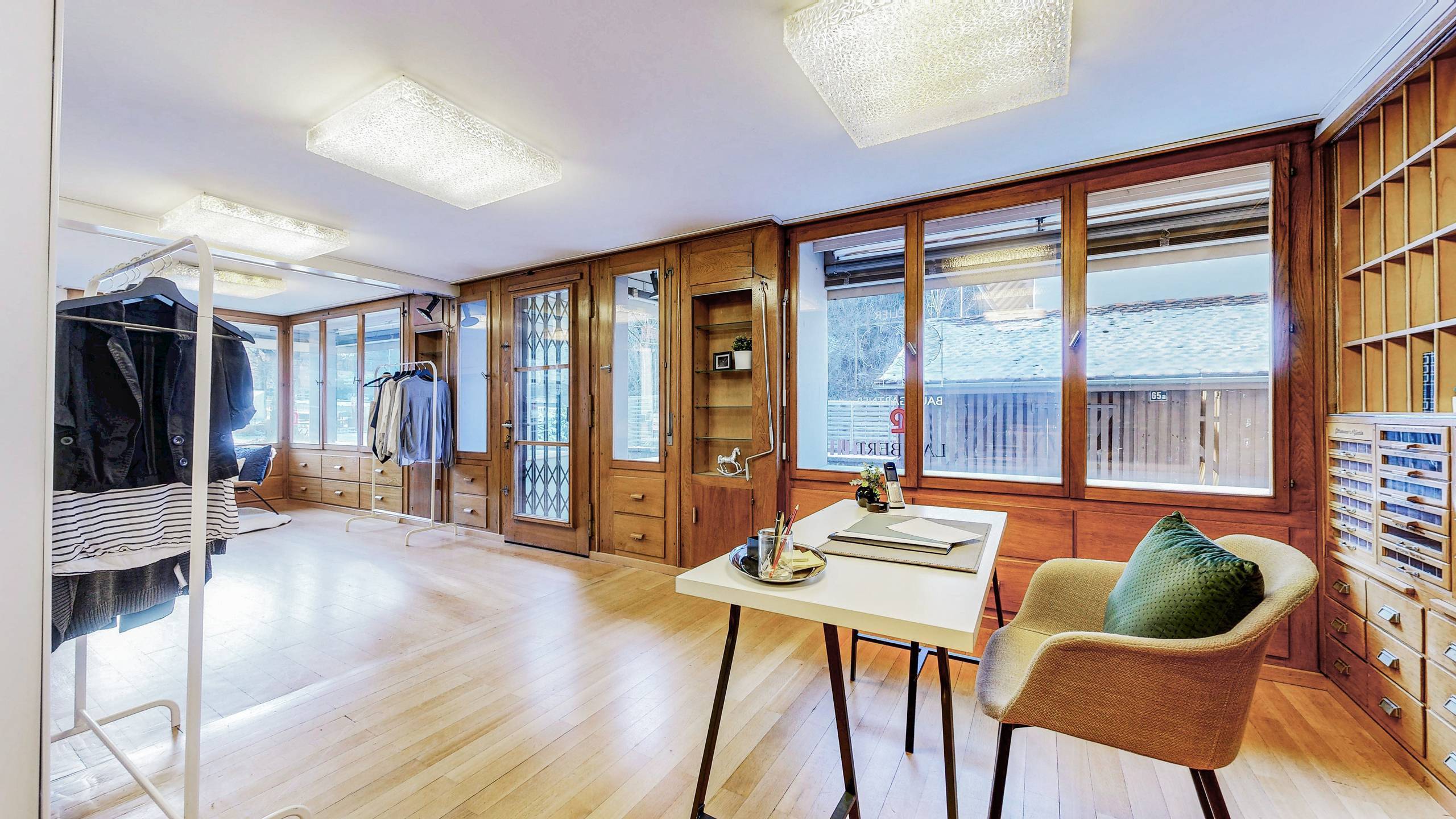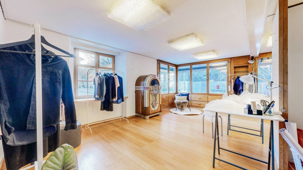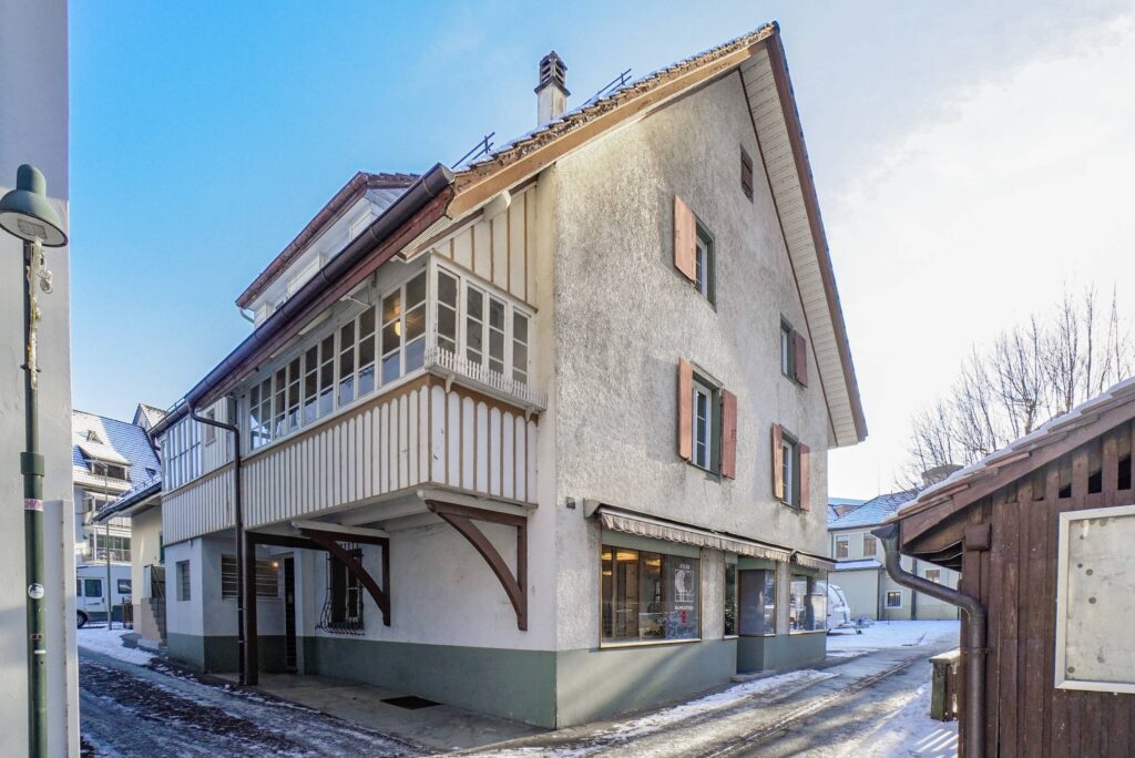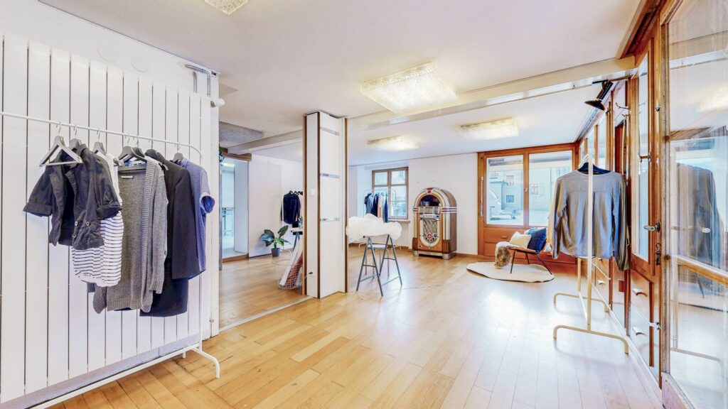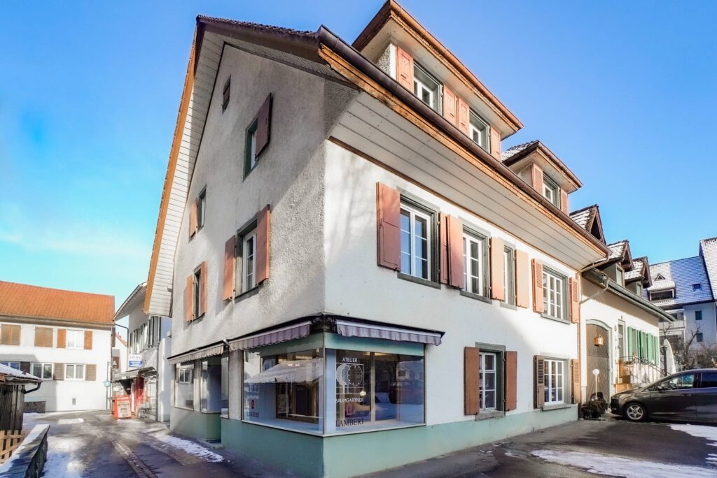 Im Erdgeschoss befindet sich ein rund 76 m² grosses Ladenlokal (aktuell als Atelier genutzt) mit vielseitigen Nutzungsmöglichkeiten – ob als Verkaufsfläche, Atelier, Galerie, Ausstellungsraum oder Büro – und ermöglicht so die ideale Verbindung von Wohnen und Arbeiten unter einem Dach.