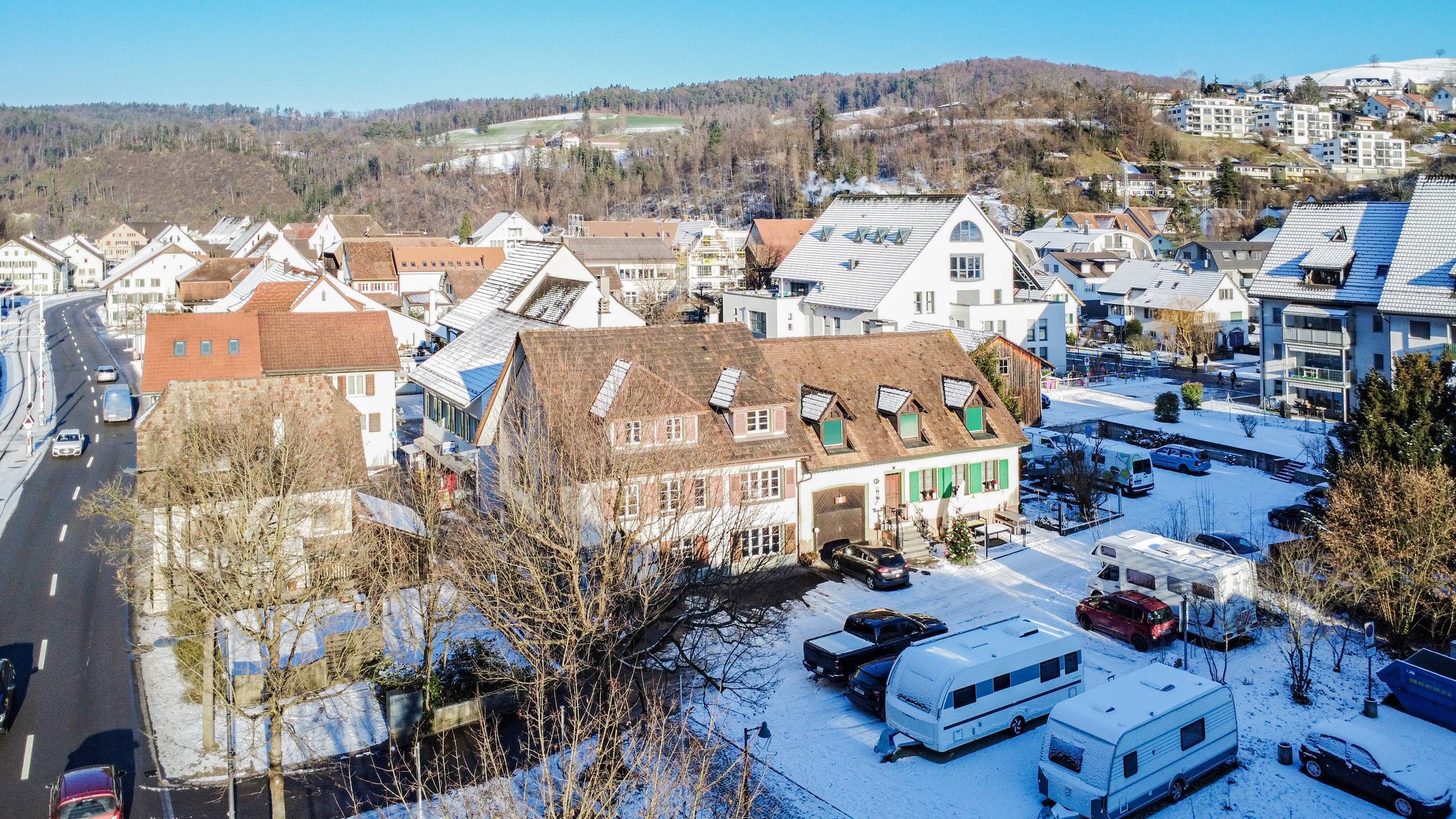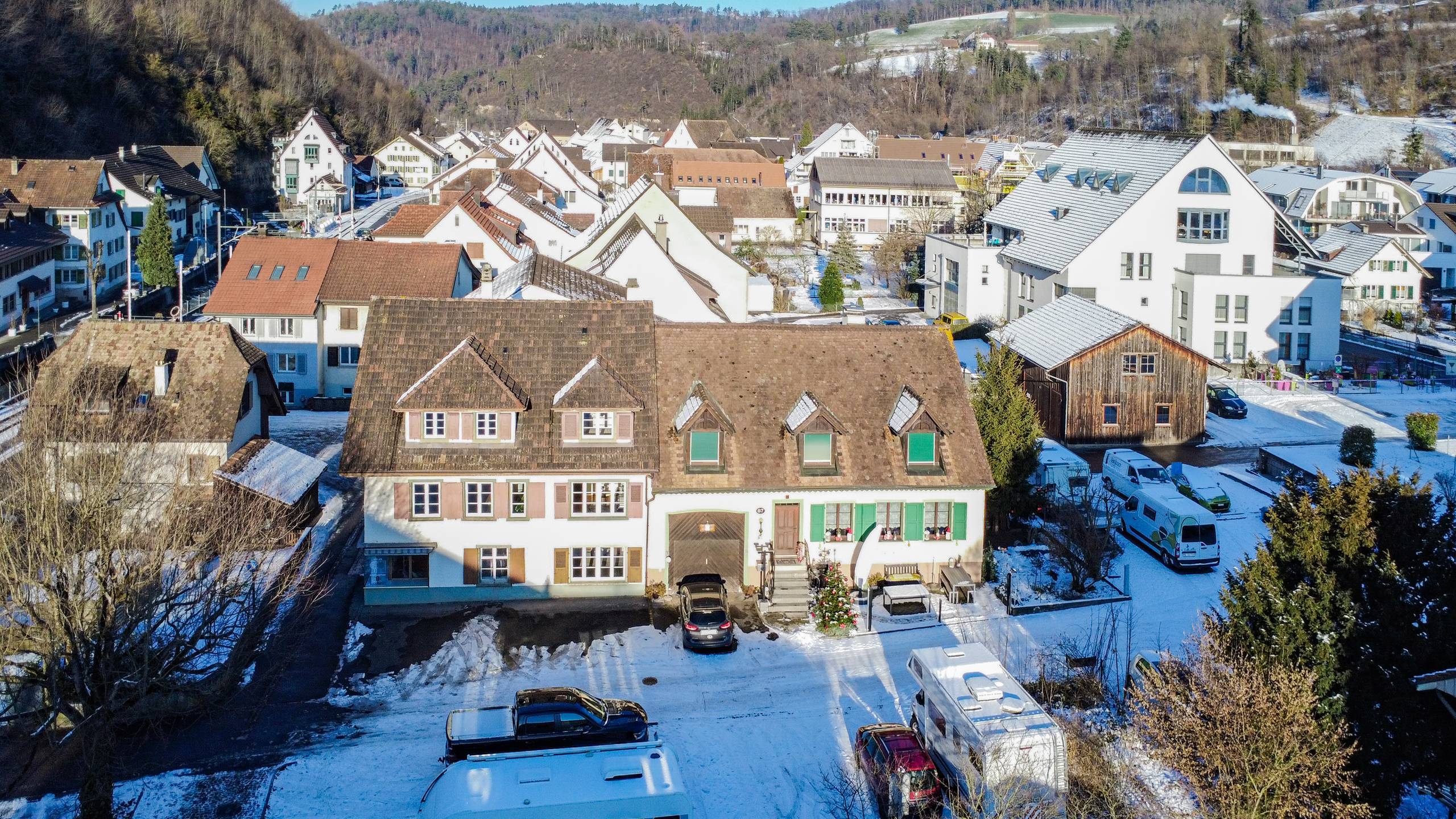 - Parkierung: Es sind vier Aussenparkplätze vor dem Haus sowie weitere fünf auf dem zusätzlichen Grundstück vorhanden