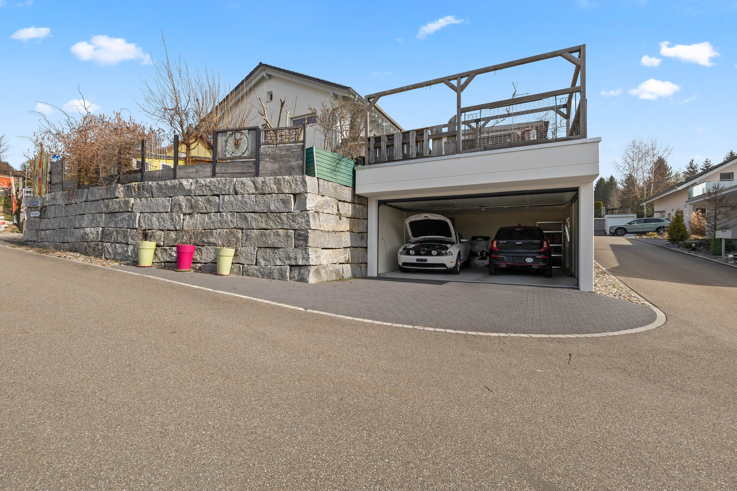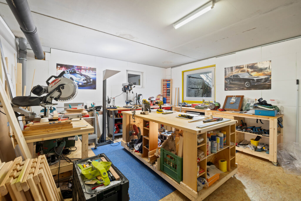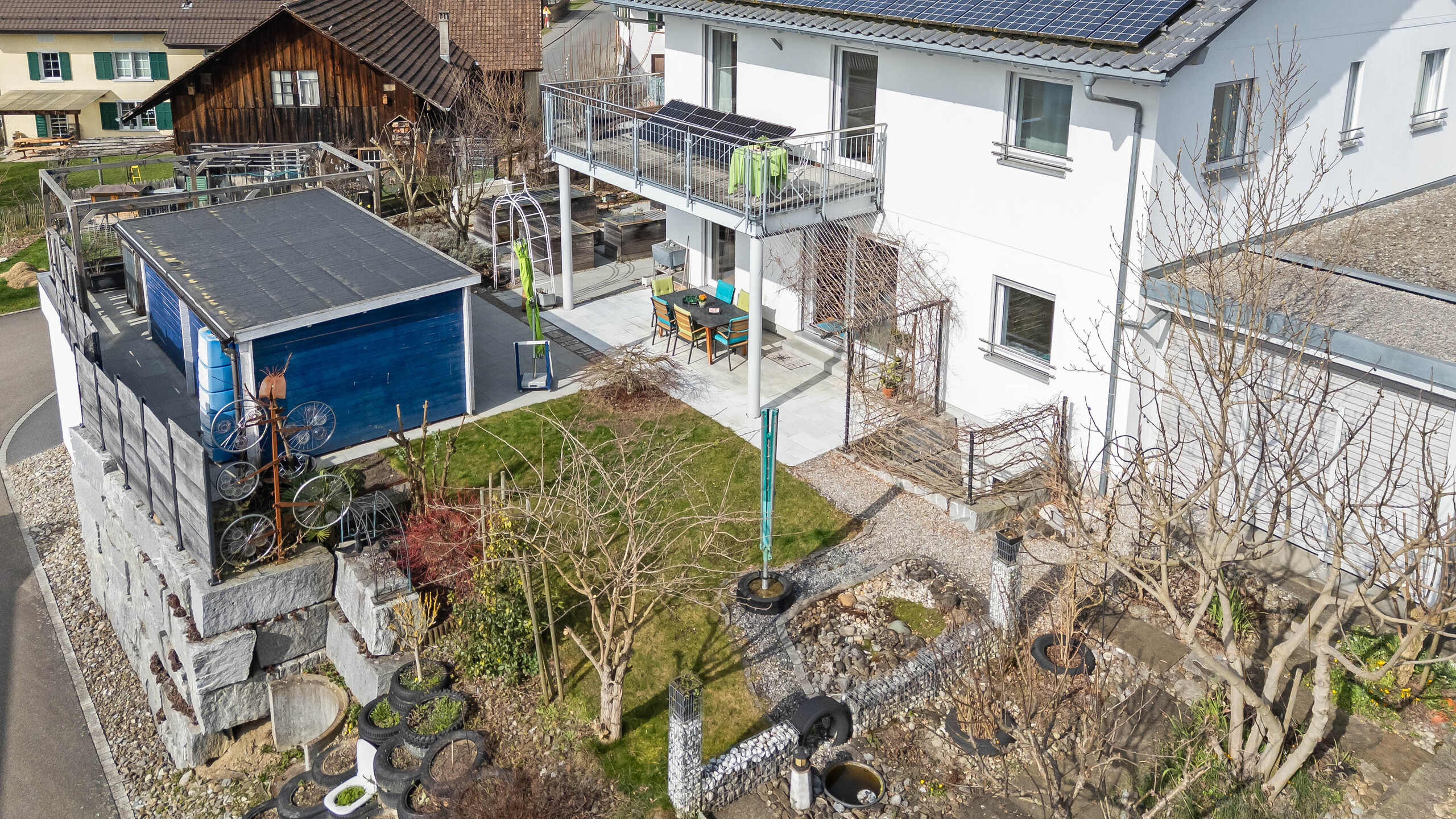 Auch praktisch überzeugt die Immobilie: Nebenräume wie Keller, Waschküche und Werkstatt bieten viel zusätzlichen Stauraum und Nutzungsmöglichkeiten. Ein Schopf im Garten ergänzt das Platzangebot im Aussenbereich sinnvoll. Mehrere Parkmöglichkeiten direkt beim Haus sind im Preis inbegriffen.