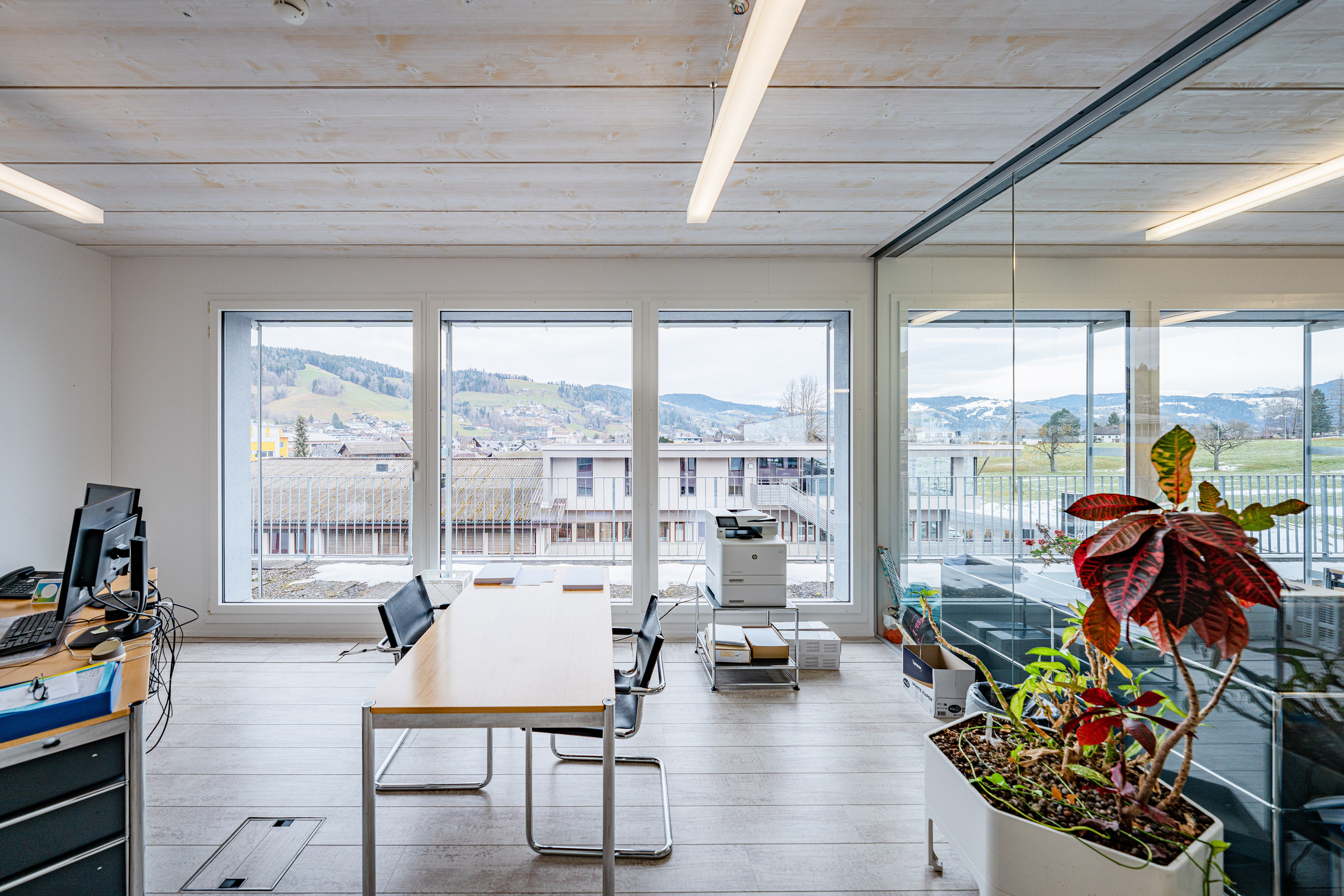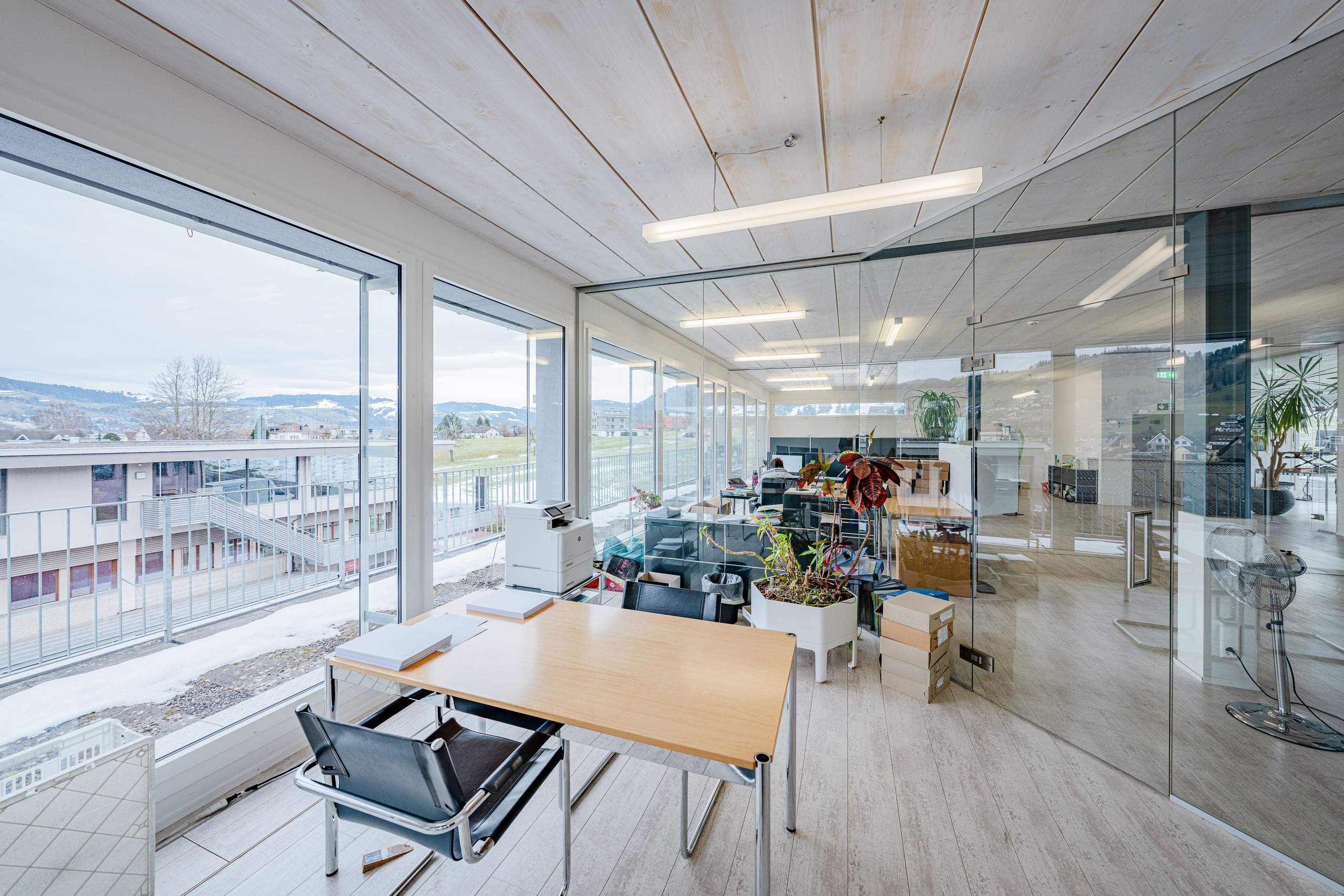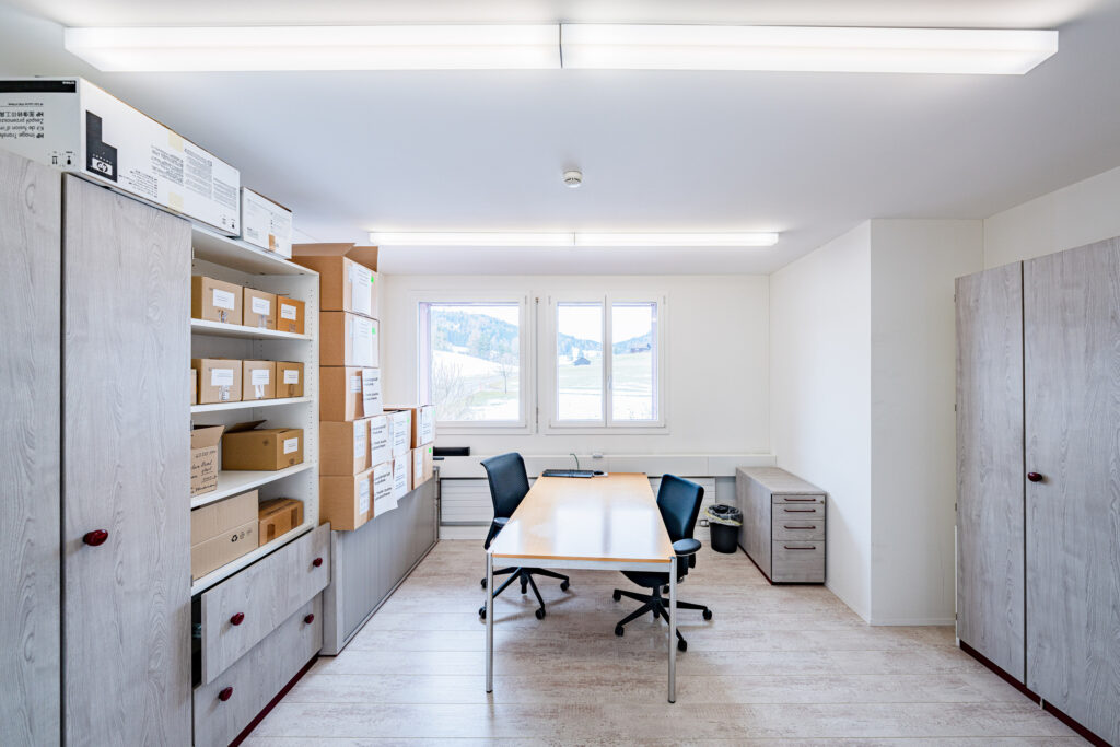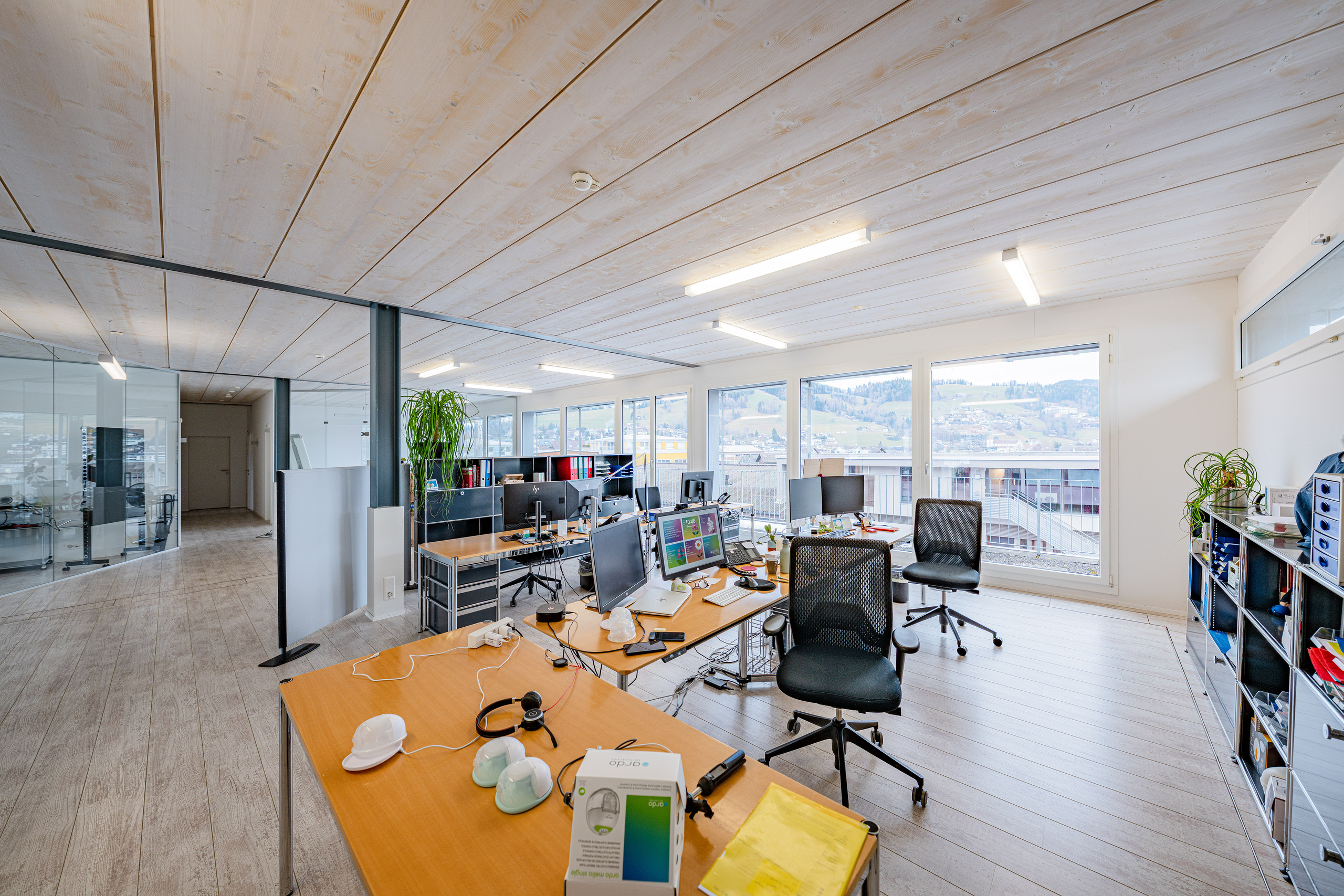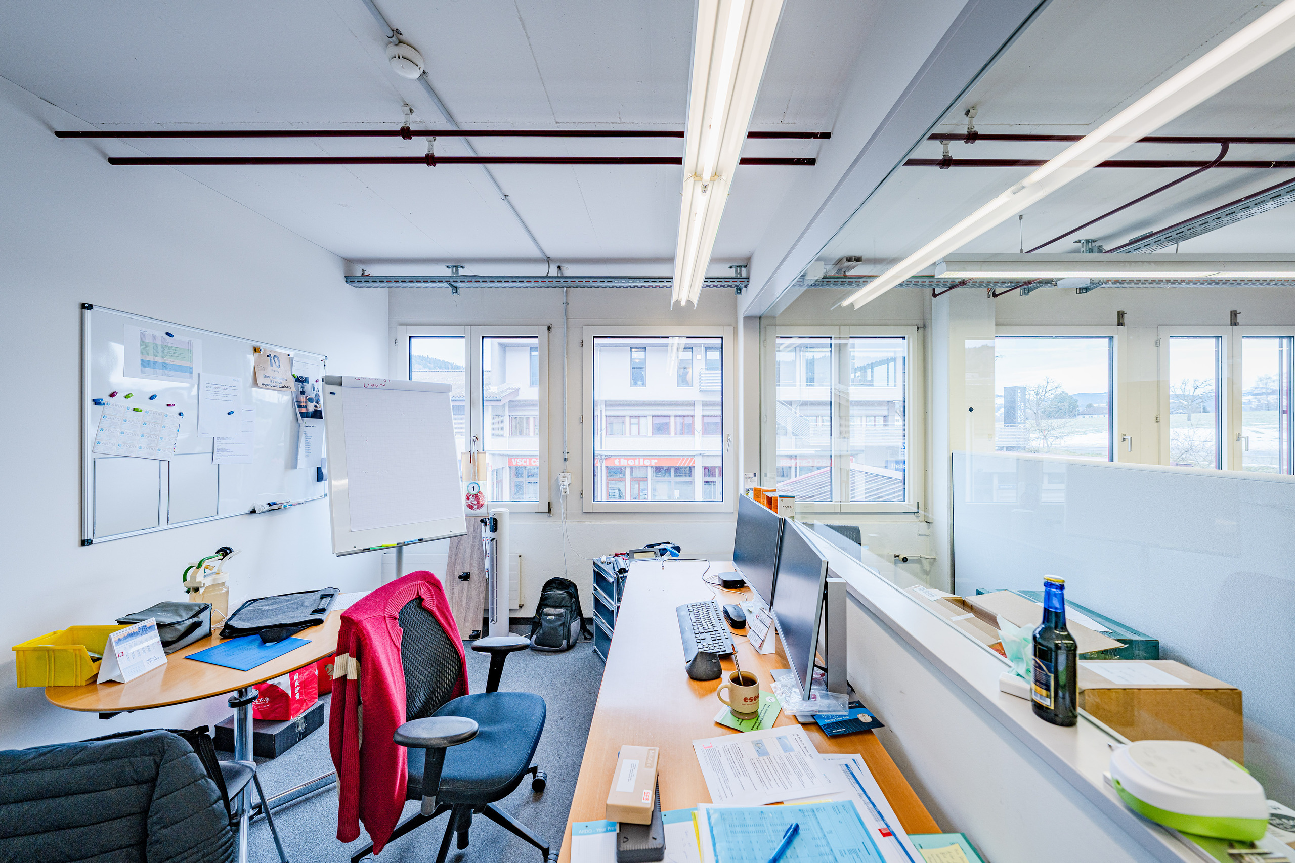 Das vielseitige Flächenangebot umfasst rund 1’778 m² Bürofläche, 430 m² Produktionsfläche sowie weitere 830 m² Lagerfläche. Die Liegenschaft befindet sich in gutem Zustand und wurde dank regelmässiger Investitionen laufend unterhalten. Ein Lift, ein Glasfaseranschluss sowie vier Garagen und rund 50 Aussenparkplätze runden das attraktive Gesamtpaket ab.