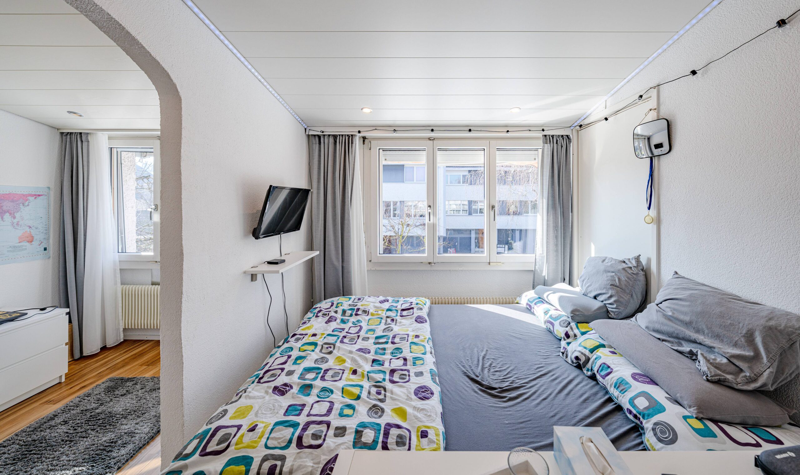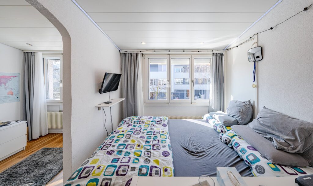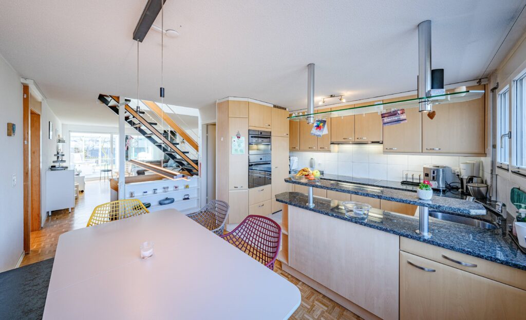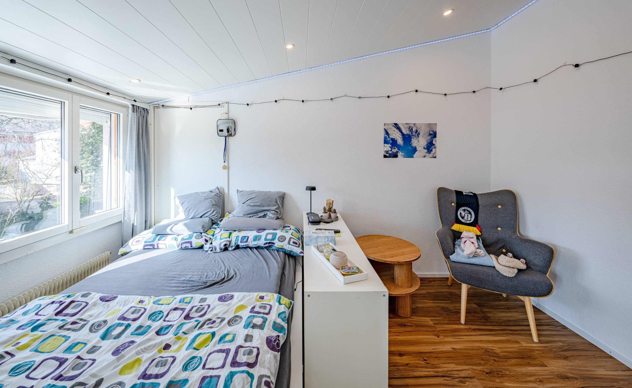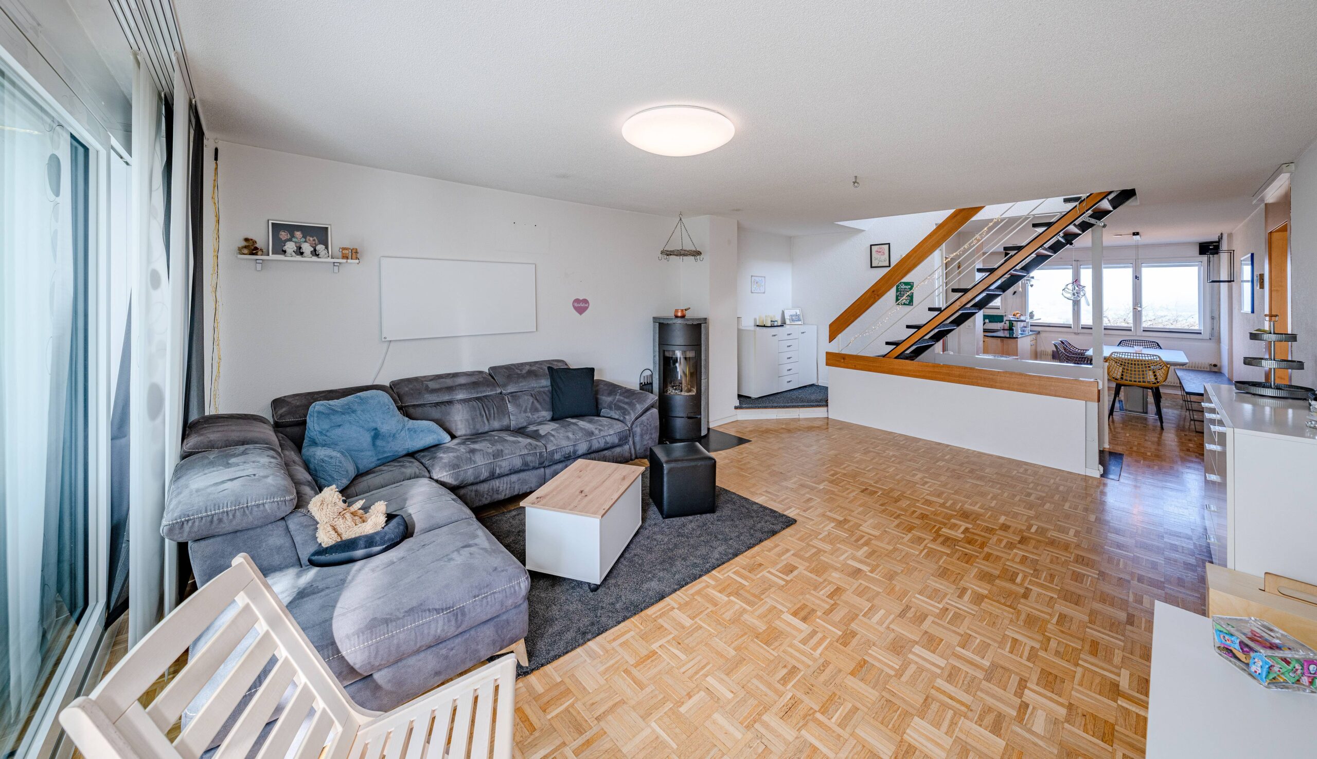 Die 4.5 Zimmer verteilen sich durchdacht über drei Ebenen und bieten genügend Platz für Paare oder Familien. Im Obergeschoss befindet sich ein Bad mit Dusche/WC, während im Erdgeschoss ein praktisches Gäste-WC zur Verfügung steht.