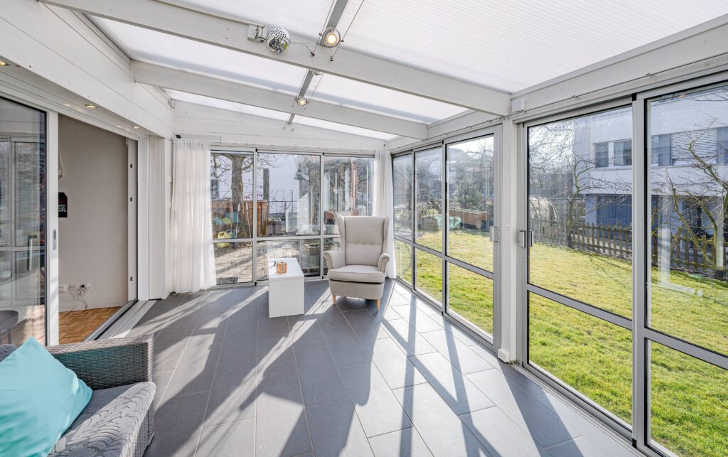 • Wintergarten: Sonniger Wintergarten für gemütliche Stunden mit Elektrostoren