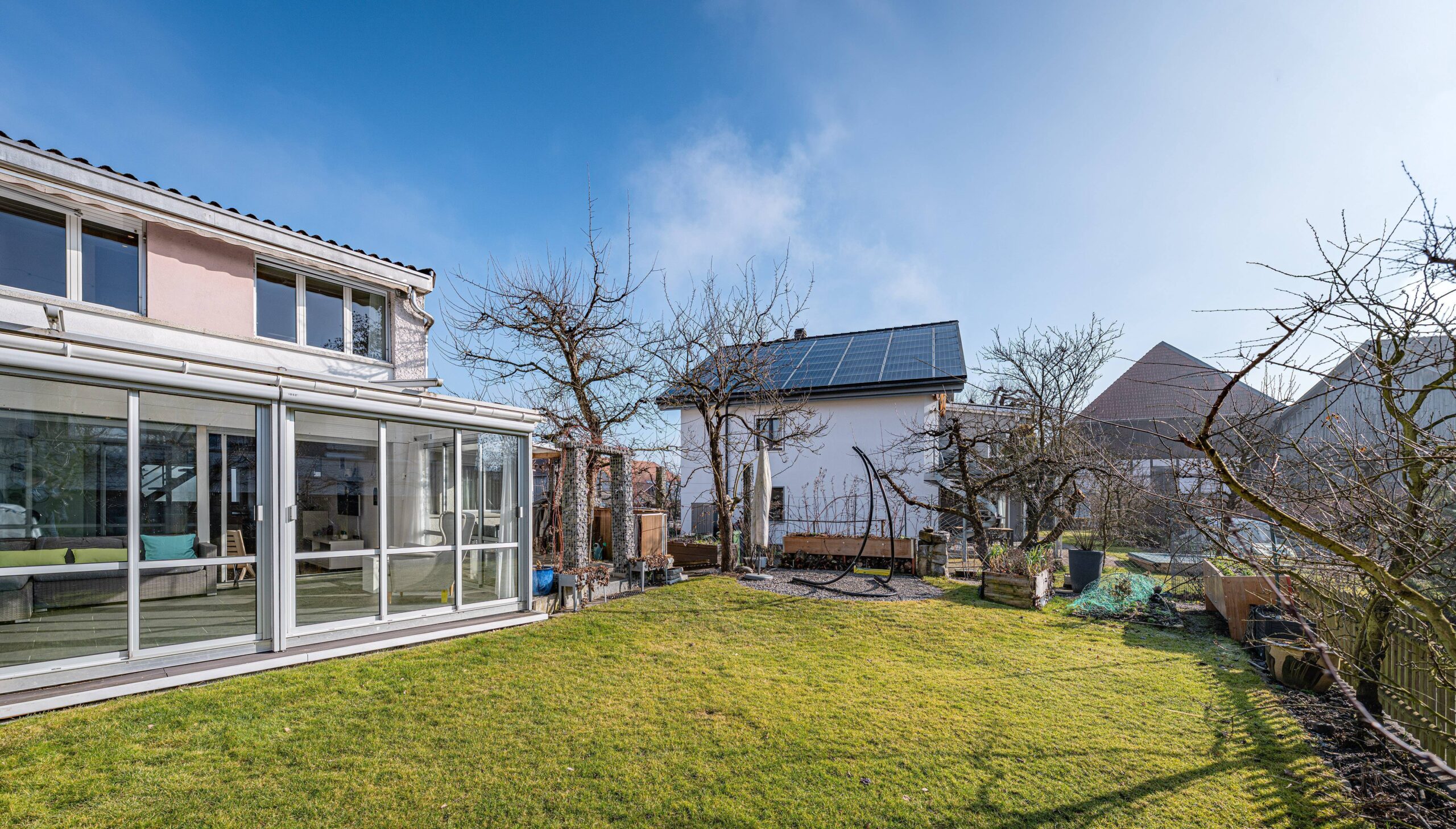 Im Untergeschoss ergänzen ein Keller sowie eine Waschküche das Raumangebot sinnvoll. Auch die Parkplatzsituation überzeugt: Eine Garagenbox, eine Doppelgaragenbox sowie zusätzliche Abstellmöglichkeiten auf dem Vorplatz bieten aussergewöhnlich viel Komfort.