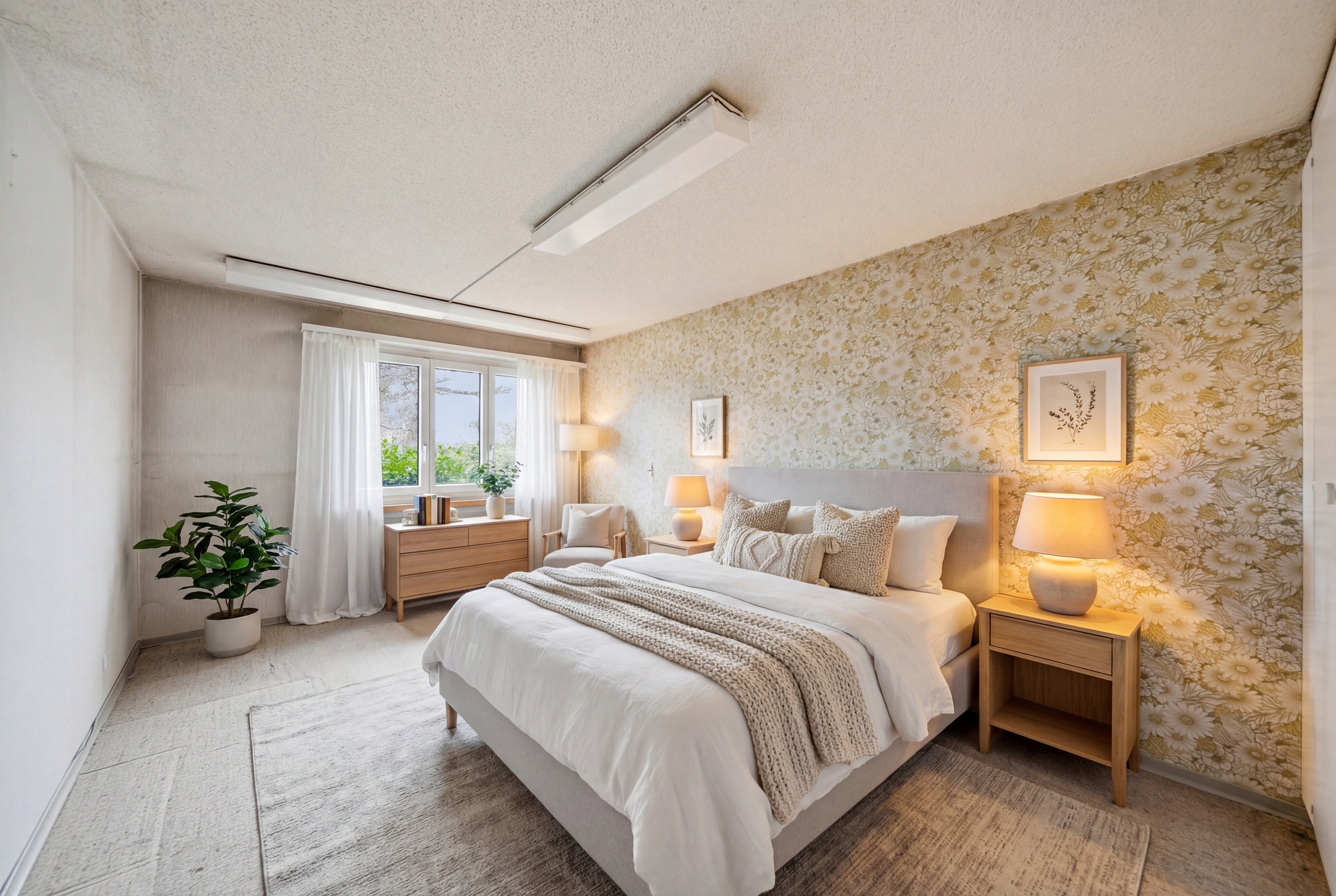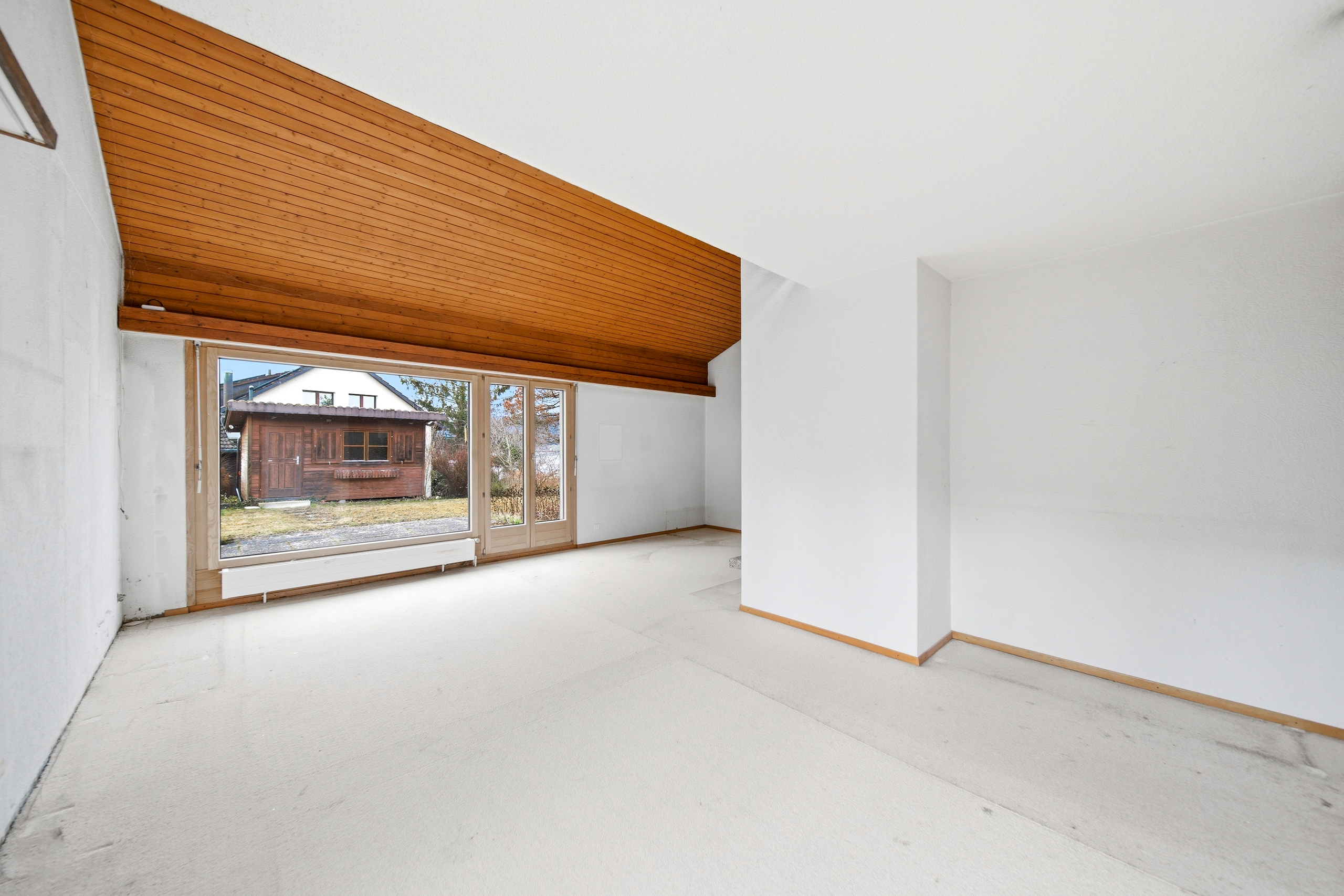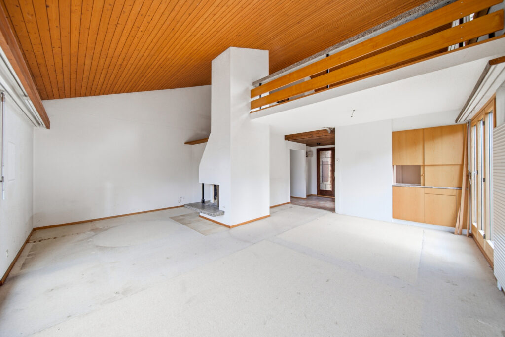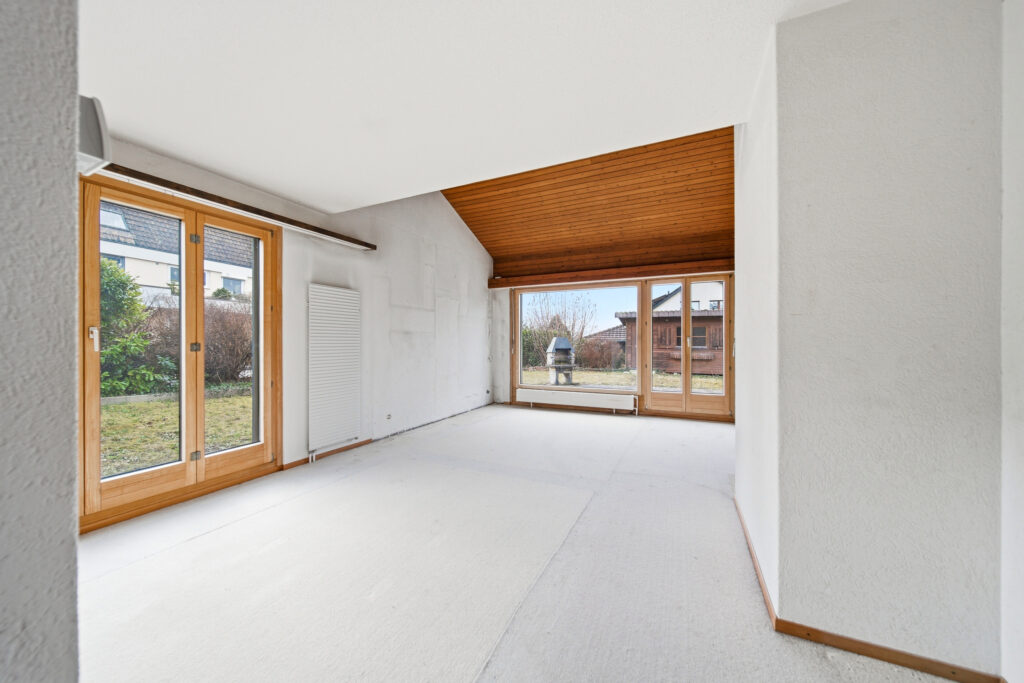 Das Haus besticht durch eine clevere Grundrissgestaltung mit offenem Wohnbereich, der ein angenehmes Raumgefühl vermittelt. Typische architektonische Elemente der 1970er-Jahre prägen den Charakter des Hauses und sorgen dank grosser Fensterflächen für schöne Lichteinflüsse und eine freundliche Wohnatmosphäre.