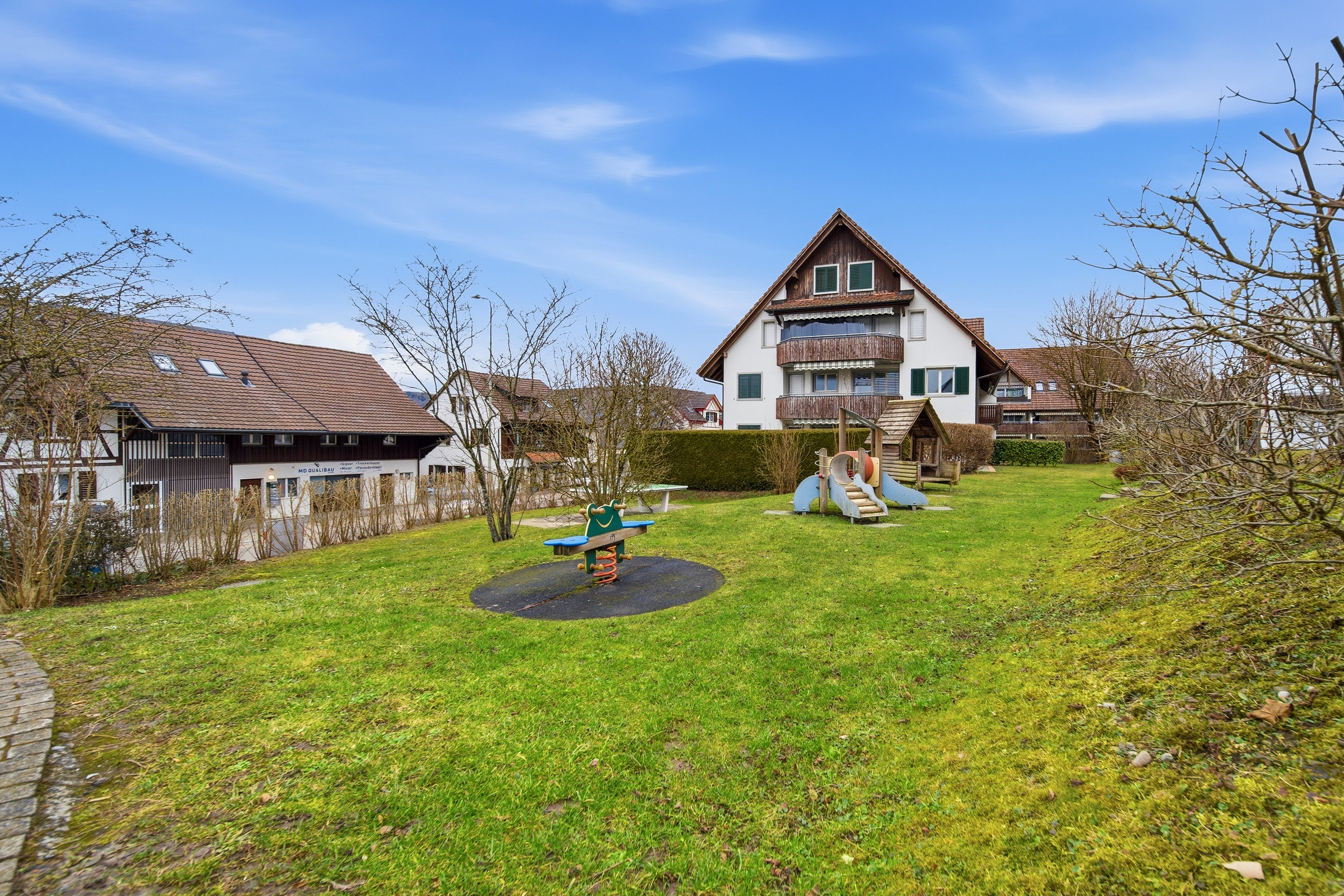 Der Aussenbereich lädt zum Geniessen ein. Ein schöner Gartensitzplatz, eine gepflegte Rasenfläche, ein Aussencheminée sowie ein Gartenhaus schaffen ideale Voraussetzungen für entspannte Stunden im Freien.