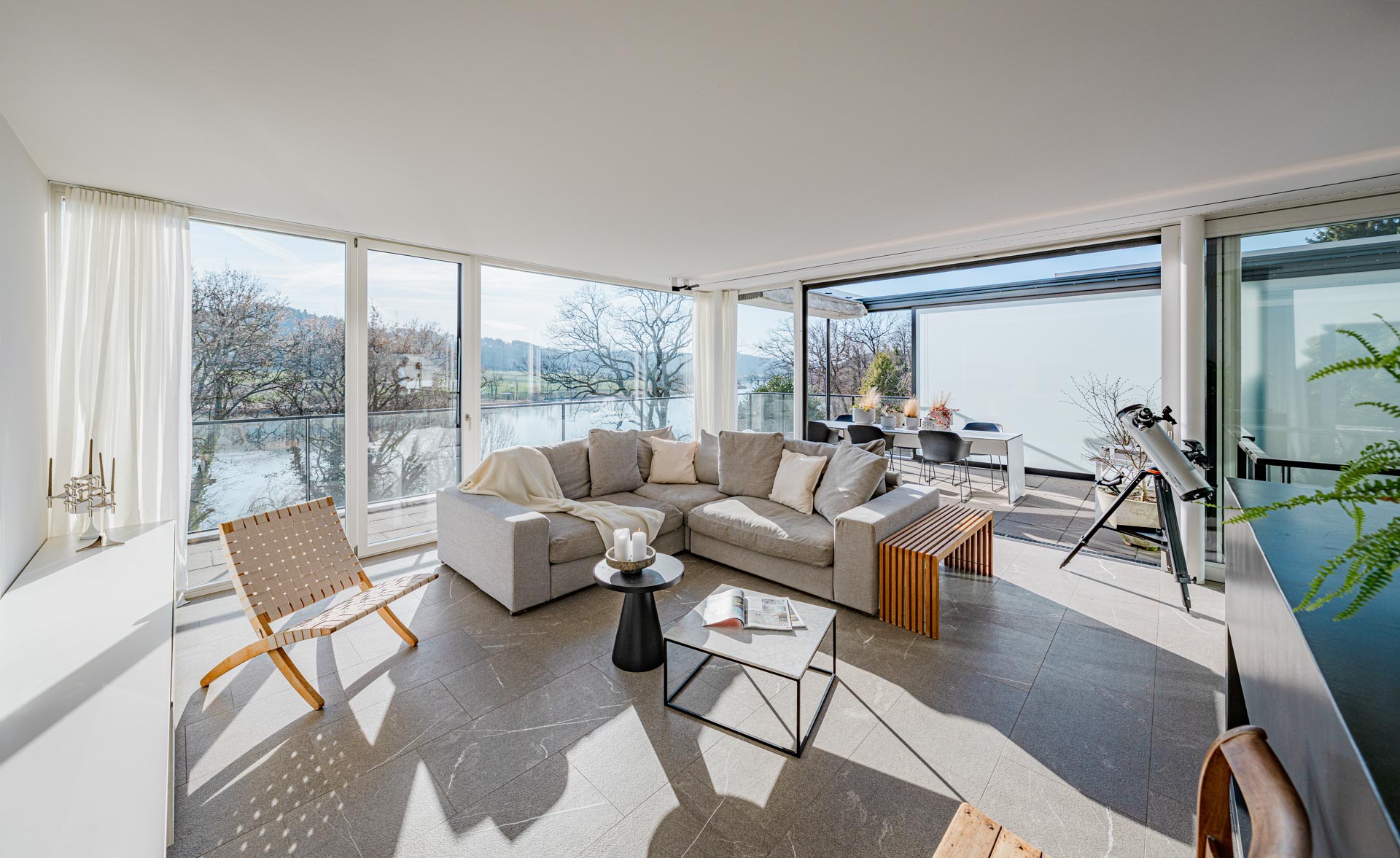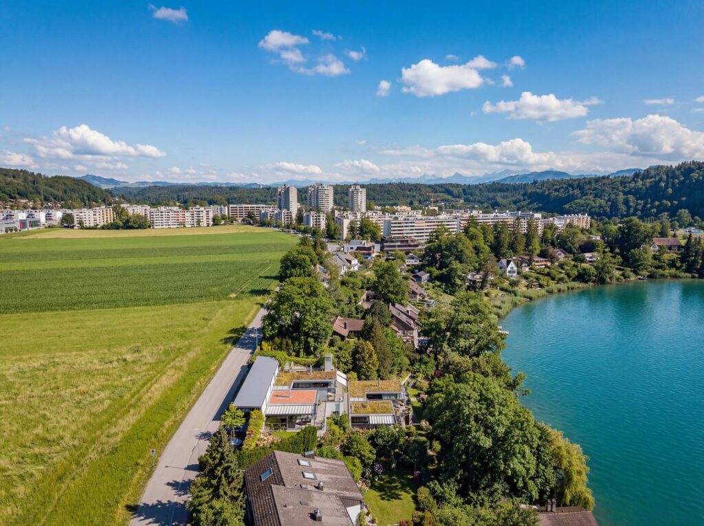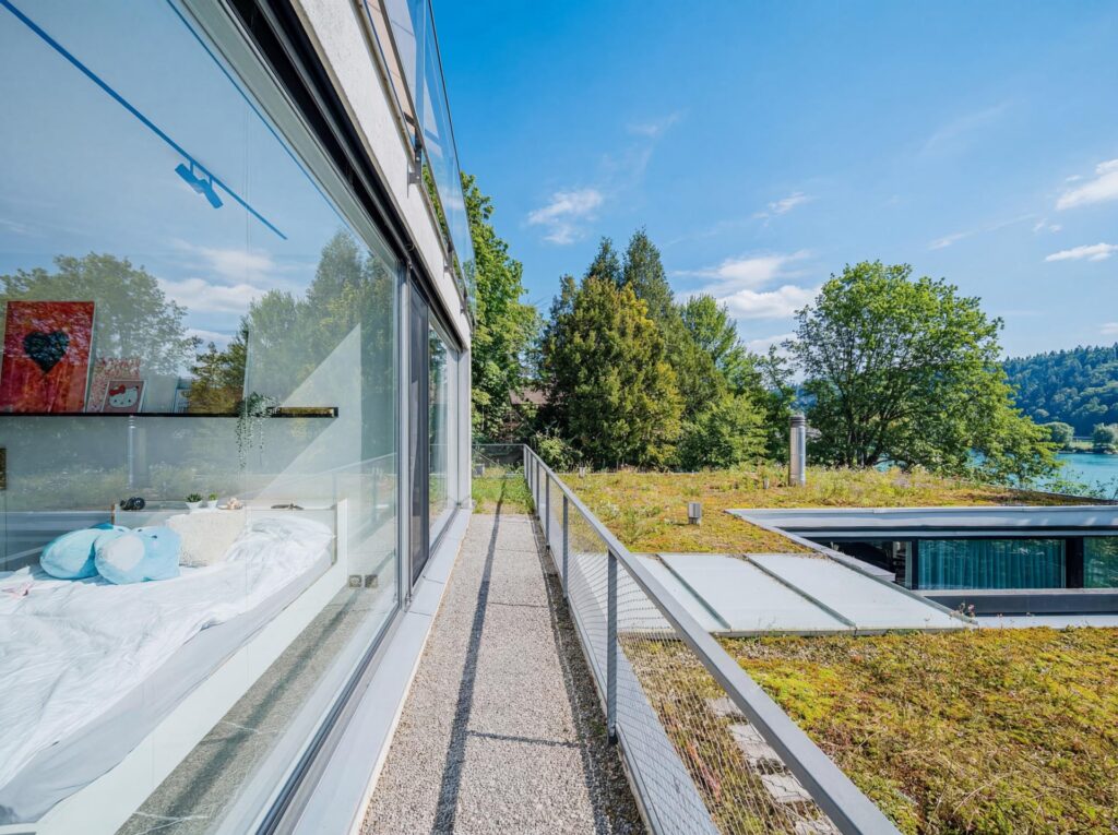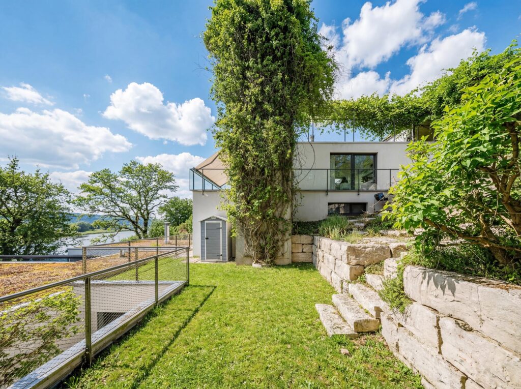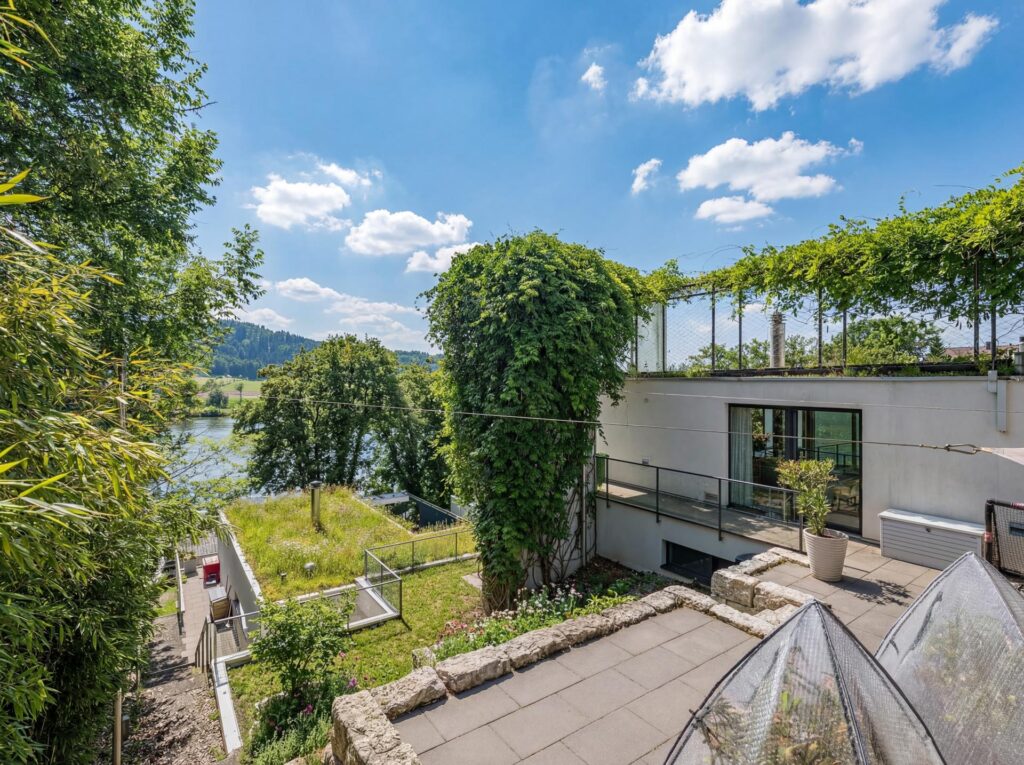 Ein besonderes Highlight ist der grosszügige Aussenbereich. Die weitläufige Terrasse mit raffinierter Beschattungsanlage lädt dazu ein, sonnige Stunden, gesellige Abende und den atemberaubenden Blick auf den See in vollen Zügen zu geniessen. Hier wohnen Sie in einer Umgebung, die Ruhe, Natur und Privatsphäre bietet, ohne auf die Nähe zu Einkaufsmöglichkeiten, Schulen und weiteren Infrastrukturen verzichten zu müssen.