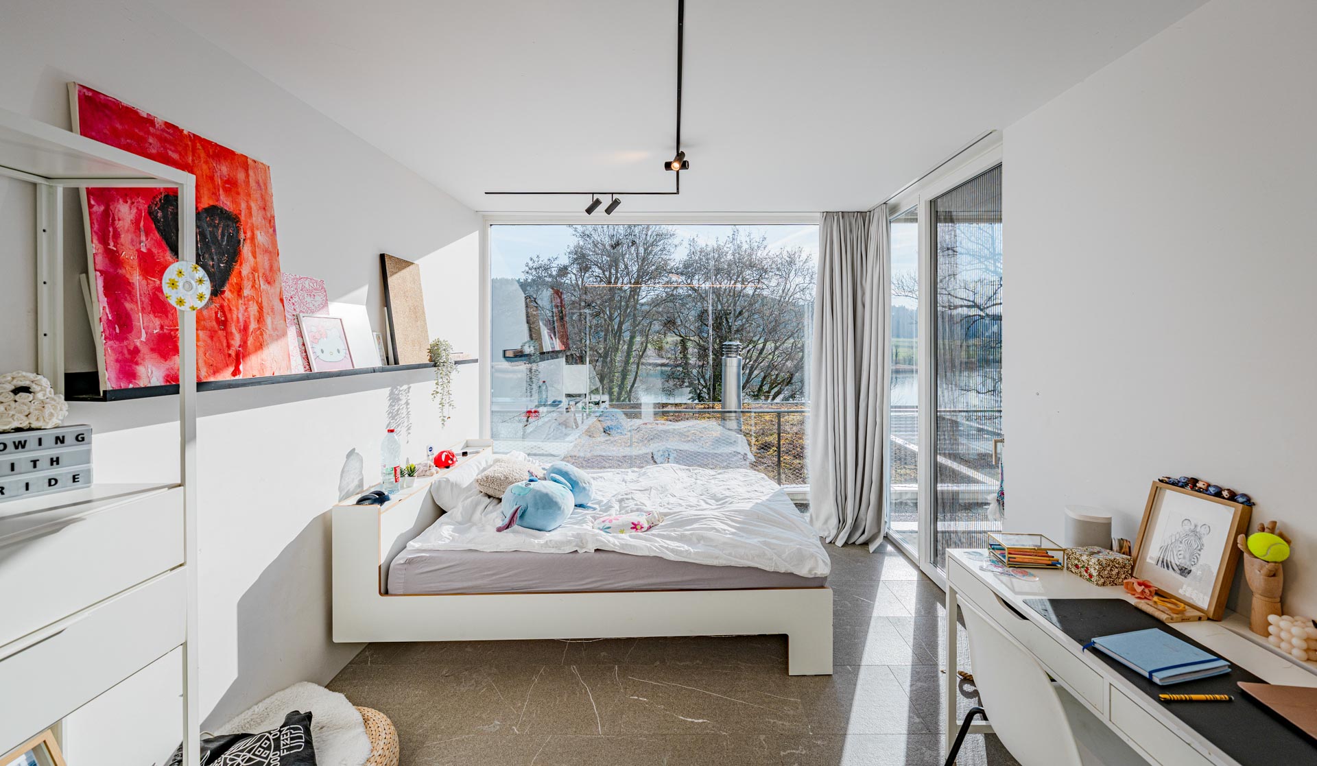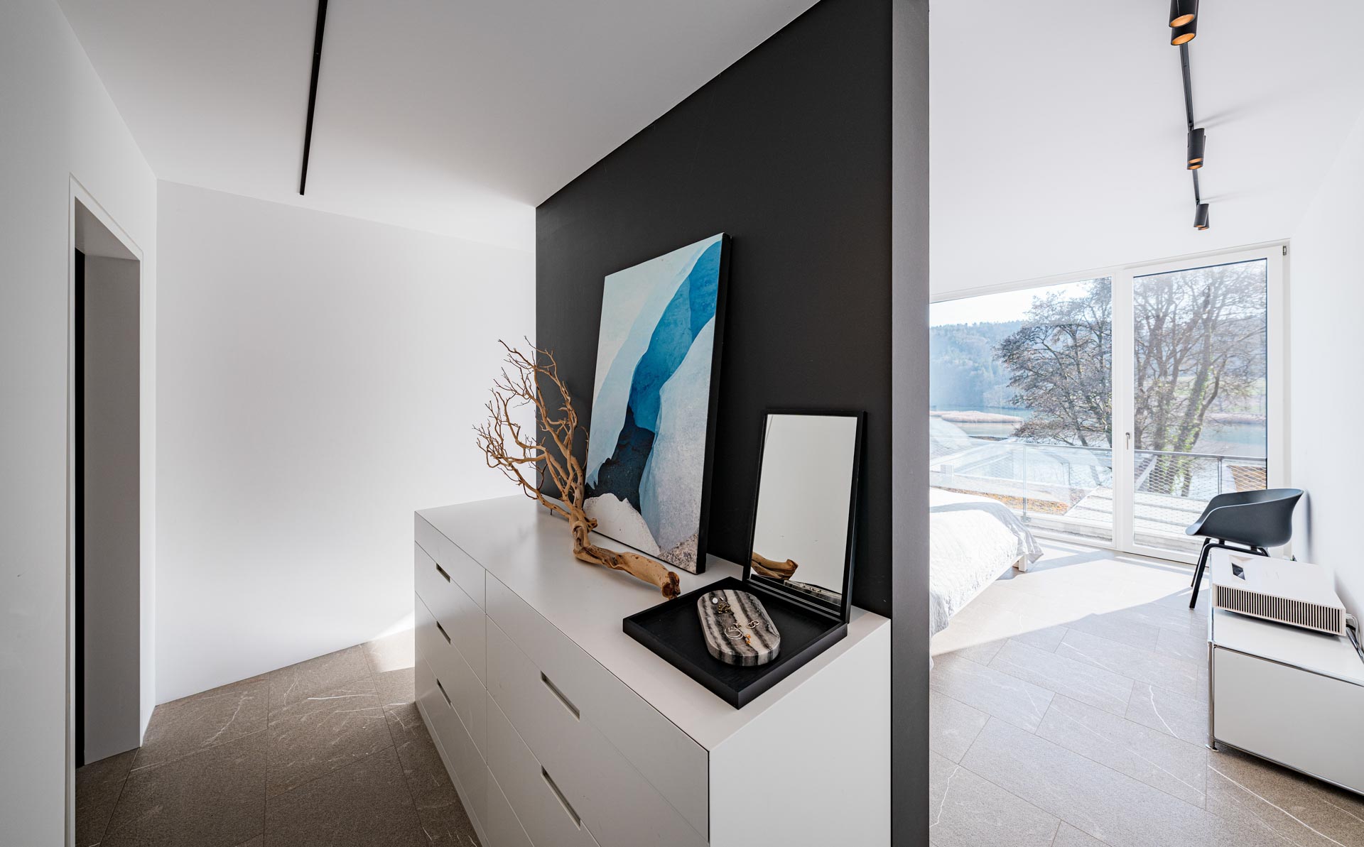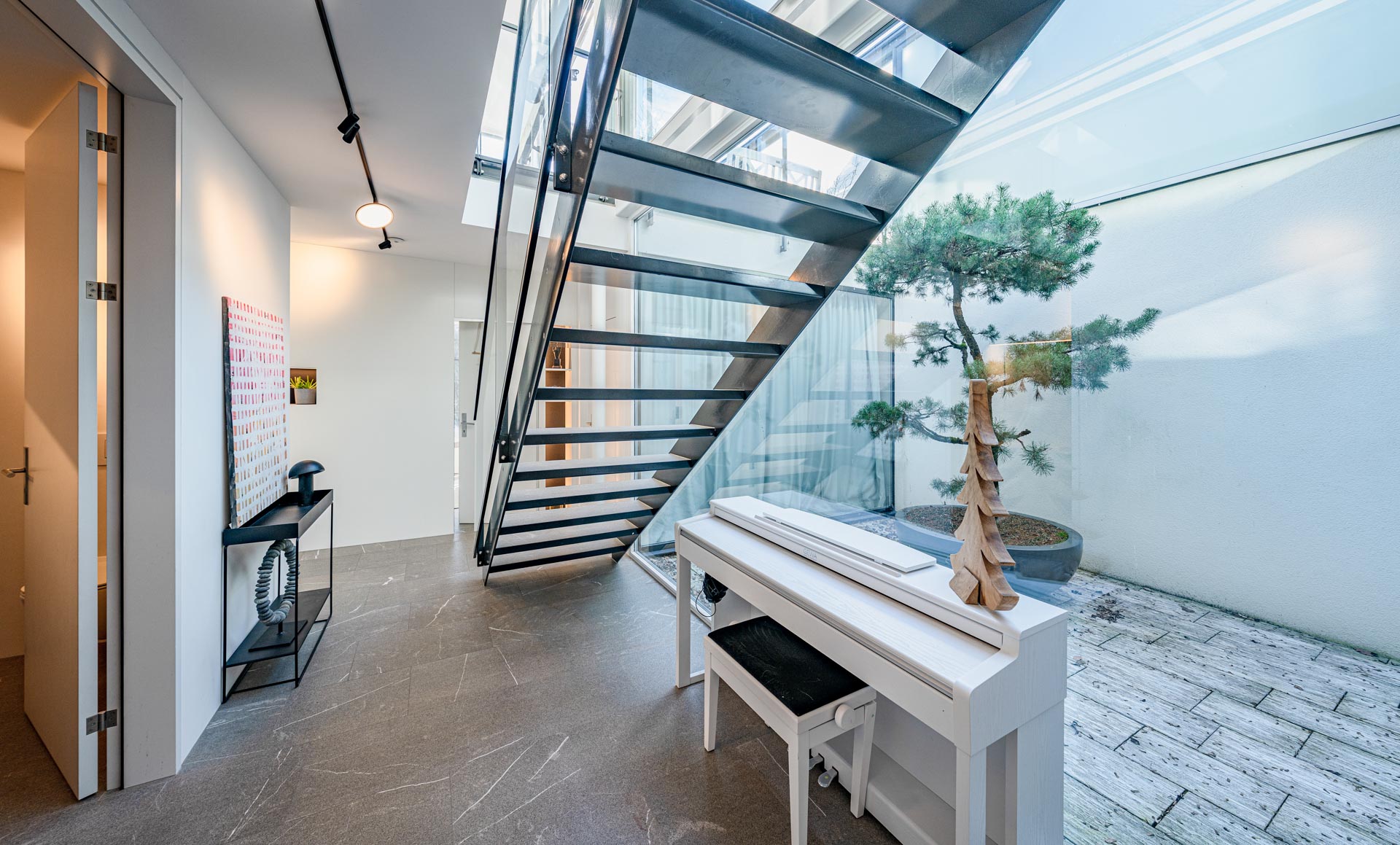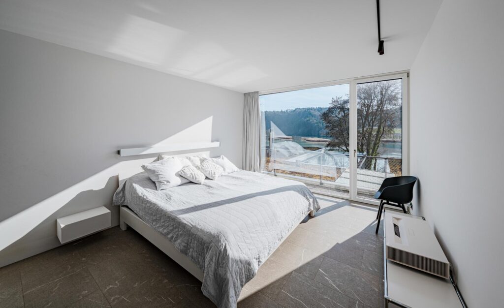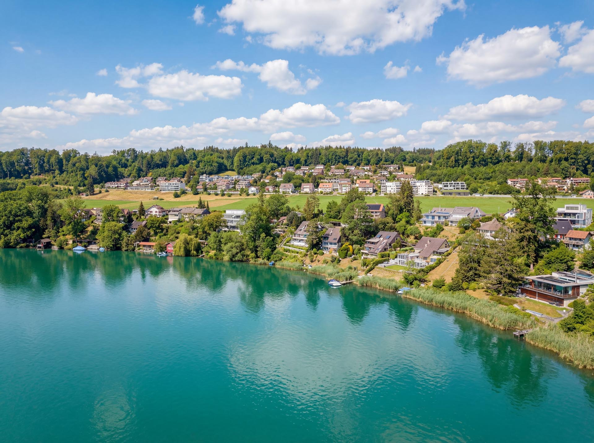 Ein besonderes Highlight ist der grosszügige Aussenbereich. Die weitläufige Terrasse mit raffinierter Beschattungsanlage lädt dazu ein, sonnige Stunden, gesellige Abende und den atemberaubenden Blick auf den See in vollen Zügen zu geniessen. Hier wohnen Sie in einer Umgebung, die Ruhe, Natur und Privatsphäre bietet, ohne auf die Nähe zu Einkaufsmöglichkeiten, Schulen und weiteren Infrastrukturen verzichten zu müssen.