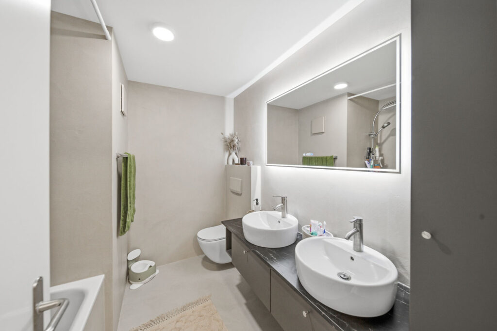 Die Eigentumswohnung präsentiert sich in einem guten und gepflegten Zustand. Regelmässige Investitionen durch die Eigentümerschaft haben dazu beigetragen, dass sich die Liegenschaft heute sehr gut unterhalten zeigt. Besonders hervorzuheben sind die zwei neuwertigen Nasszellen: ein modernes Bad mit WC sowie ein zusätzliches separates WC, die den Wohnkomfort im Alltag deutlich erhöhen.