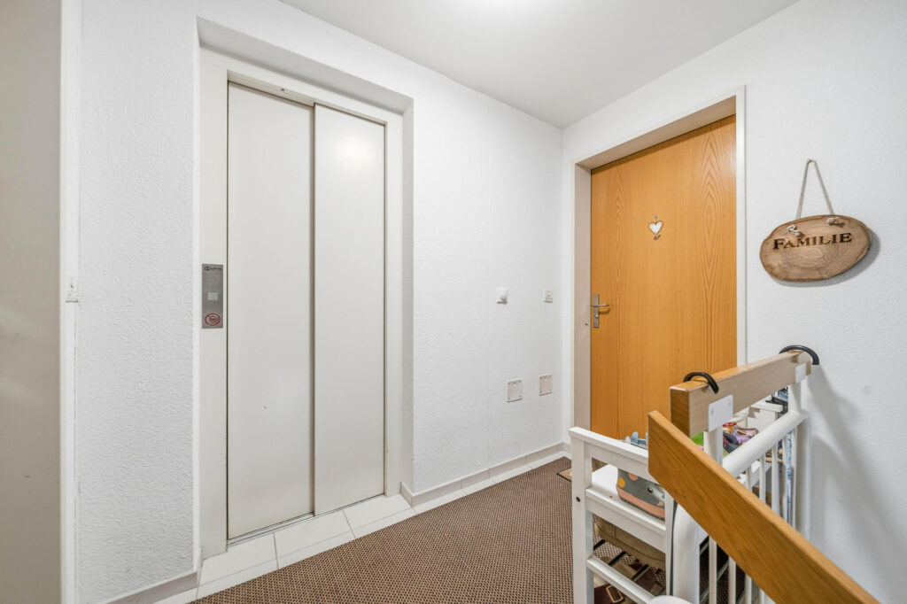 Ein Personenlift im Gebäude sorgt für komfortablen Zugang zur Wohnung. Für Ihr Fahrzeug steht zudem ein Einstellhallenplatz zur Verfügung, der bereits im Verkaufspreis enthalten ist.