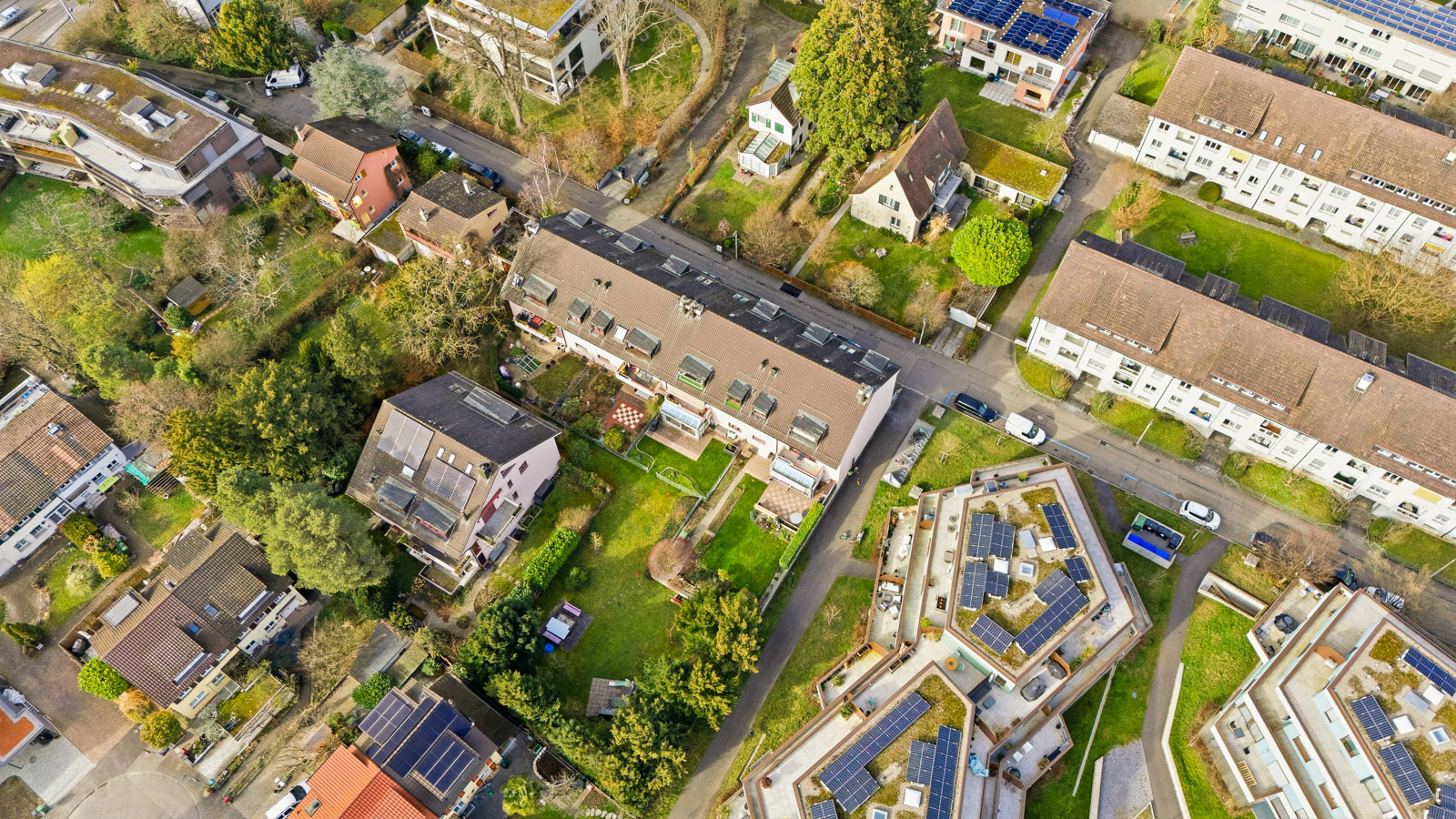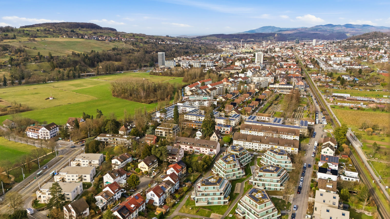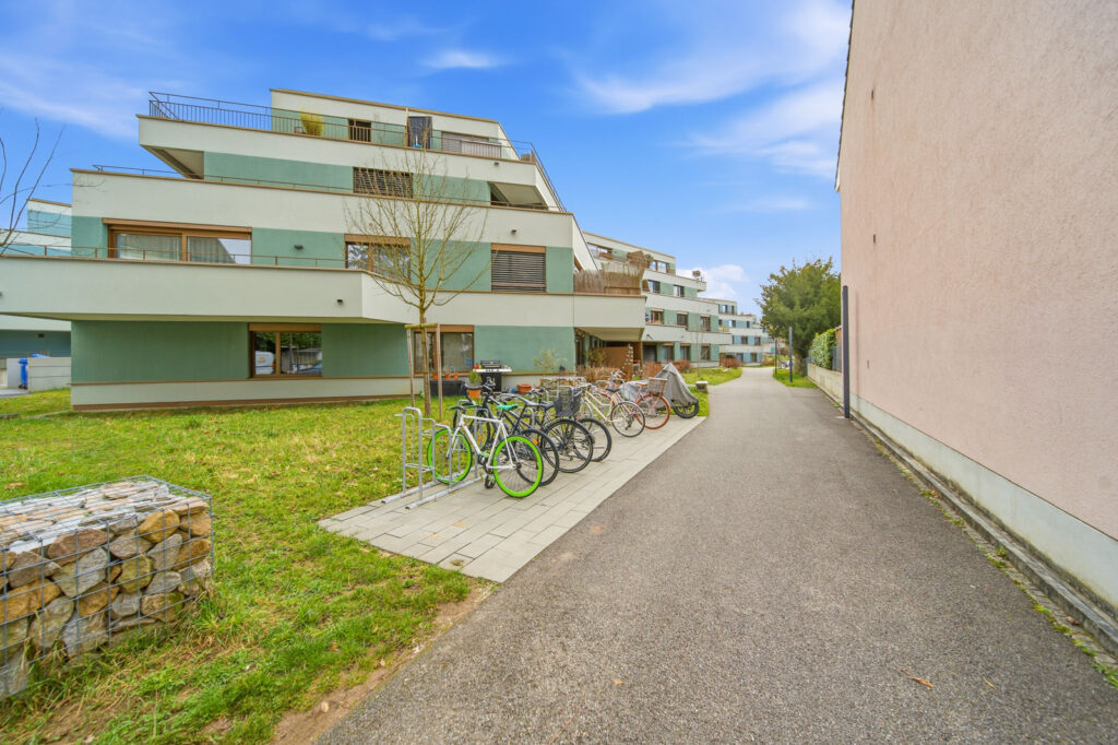 Die Lage bietet eine ausgezeichnete Anbindung: Das Zentrum von Basel ist in rund 15 Minuten erreichbar, während die deutsche Nachbarstadt Lörrach nur etwa 10 Minuten entfernt liegt. Damit verbindet diese Wohnung ruhiges Wohnen in einer grünen Umgebung mit den Vorteilen einer urbanen Infrastruktur.