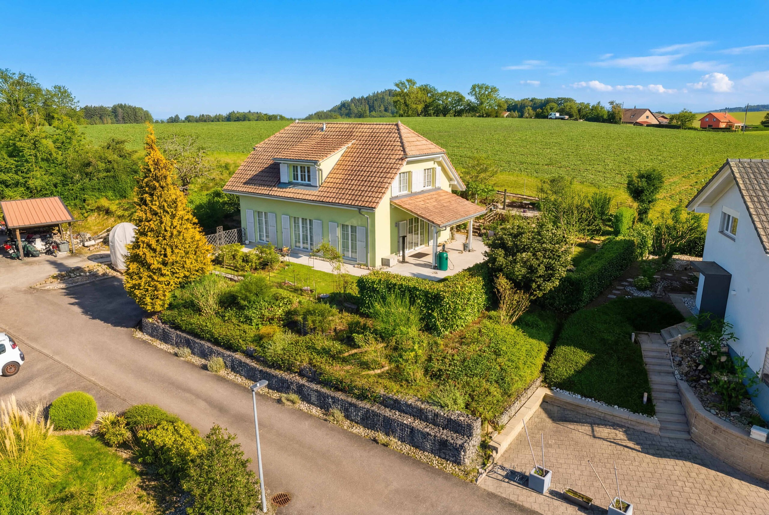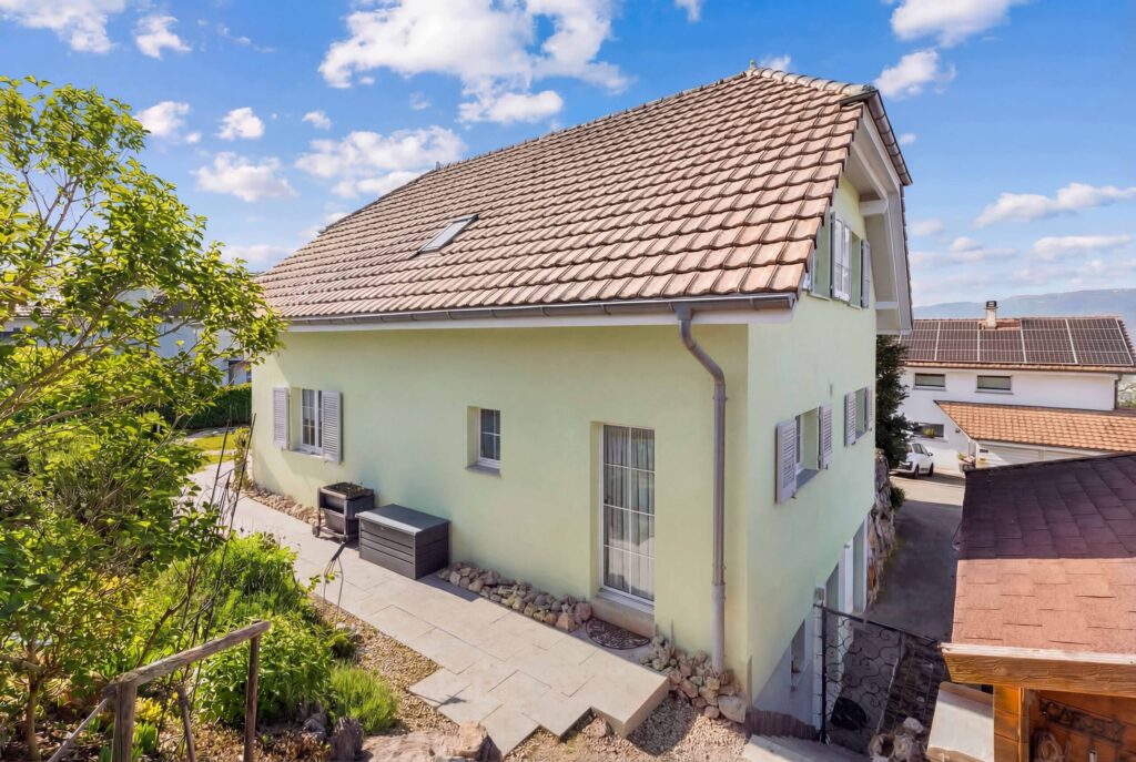 Willkommen in Ihrem neuen Zuhause in Châbles FR! Dieses charmante 5.5-Zimmer-Einfamilienhaus bietet Ihnen 140 m² Wohnraum, verteilt auf zwei Etagen. Es wurde 2004 erbaut und besticht durch seine helle, einladende Atmosphäre. Dies mit einem grosszügigen Wohn- und Essbereich mit bodentiefen Fensterfronten und direktem Zugang zur Terrasse. Die offene Küche mit Granitabdeckung, separater Kücheninsel und hochwertigen Miele-Geräten bietet viel Platz für kulinarische Kreationen. Zwei Bäder und eine eigene Sauna sorgen für Wellness und Komfort im Alltag.