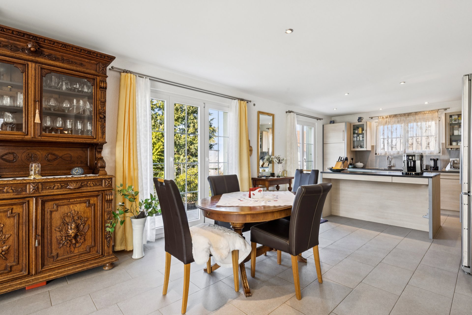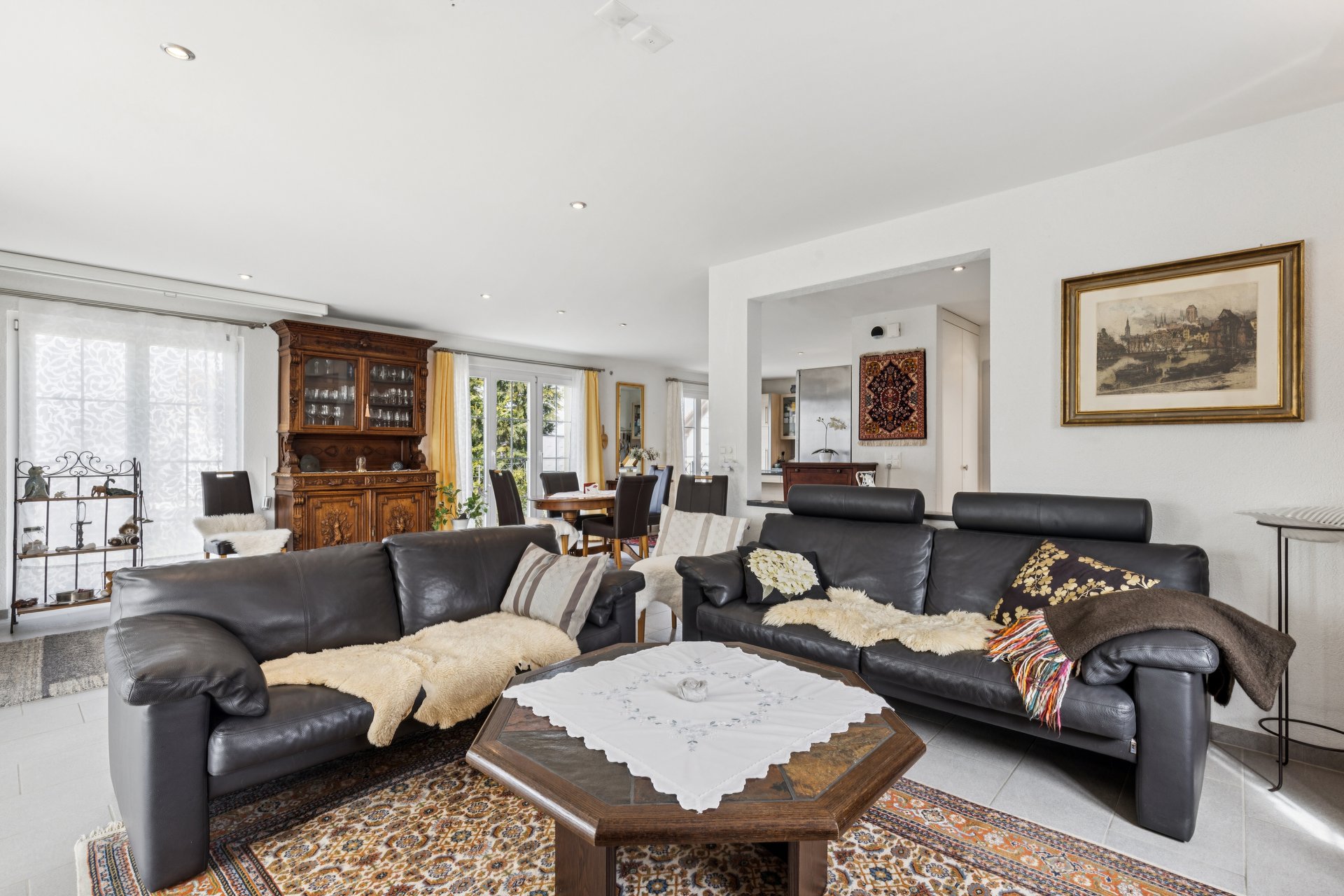 - Stilvolles Raumkonzept: Grosser, offener und heller Wohn- und Essbereich mit bodentiefen Fensterfronten und direktem Zugang zur Terrasse
