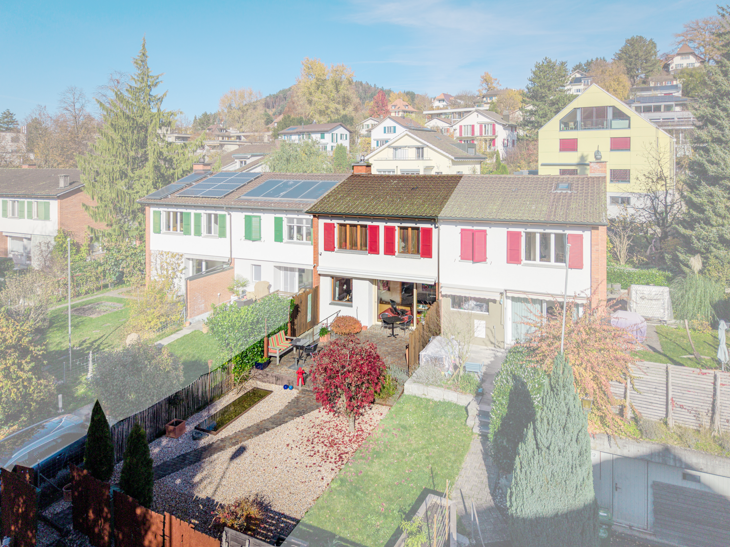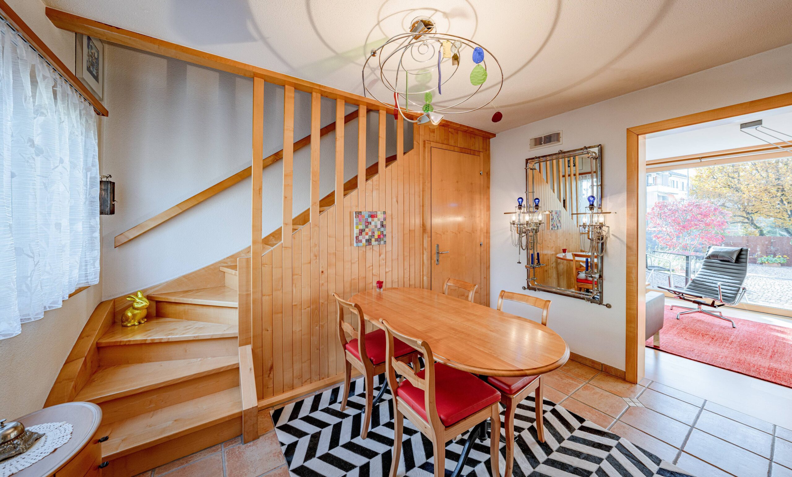 Dank regelmässiger Sanierungen präsentiert sich das Haus in gutem Zustand. Die zeitgemässe Innenarchitektur kombiniert ein freundliches Farbkonzept mit mutigen, frechen Akzenten – besonders eindrucksvoll in den Nassbereichen. Hier wurde nicht einfach renoviert, sondern gestaltet.