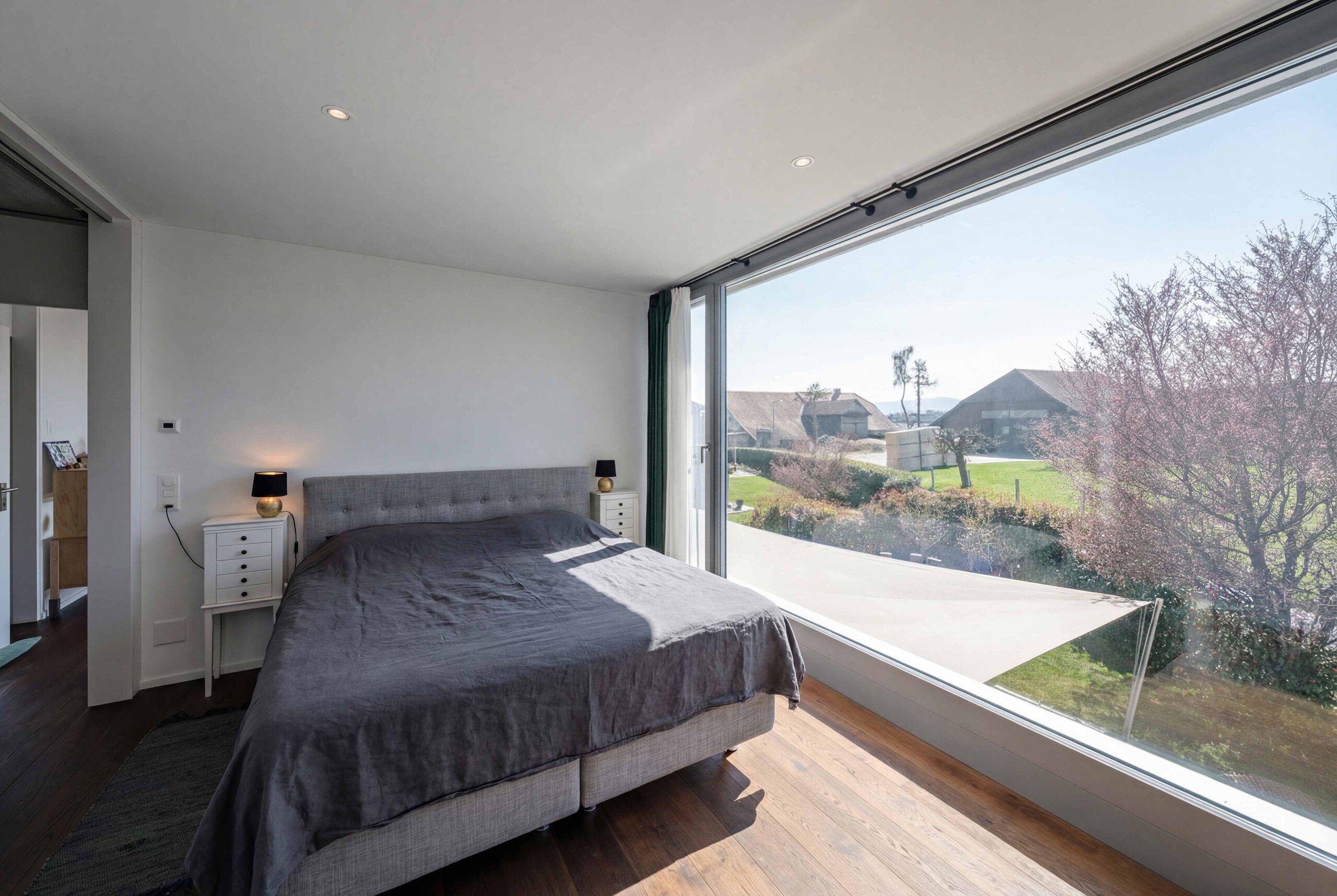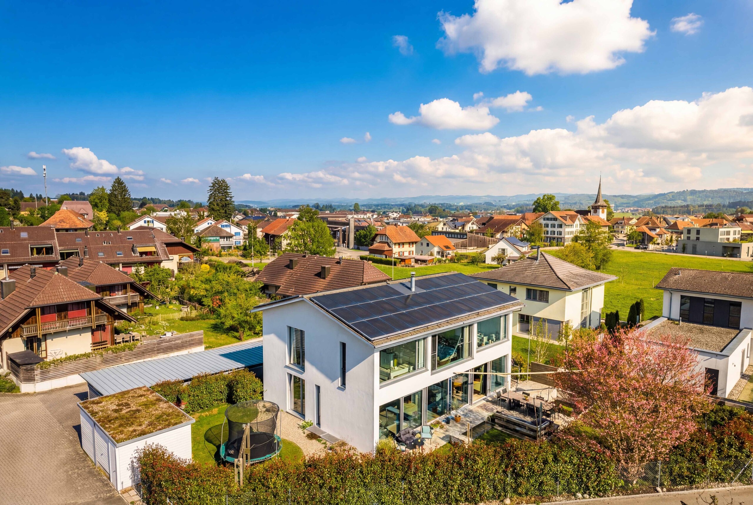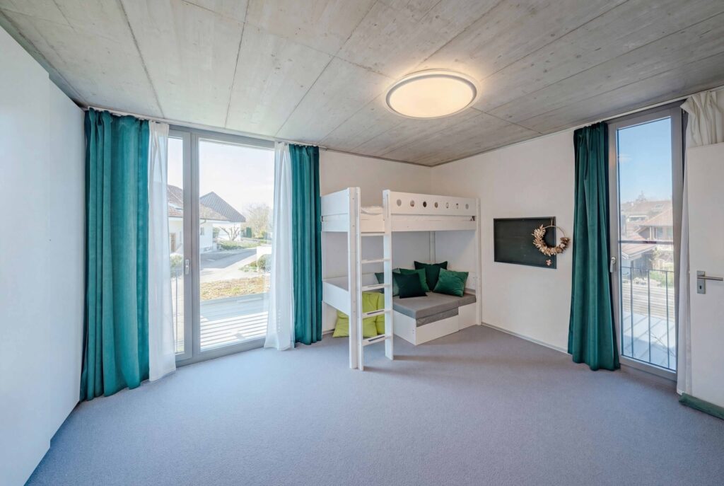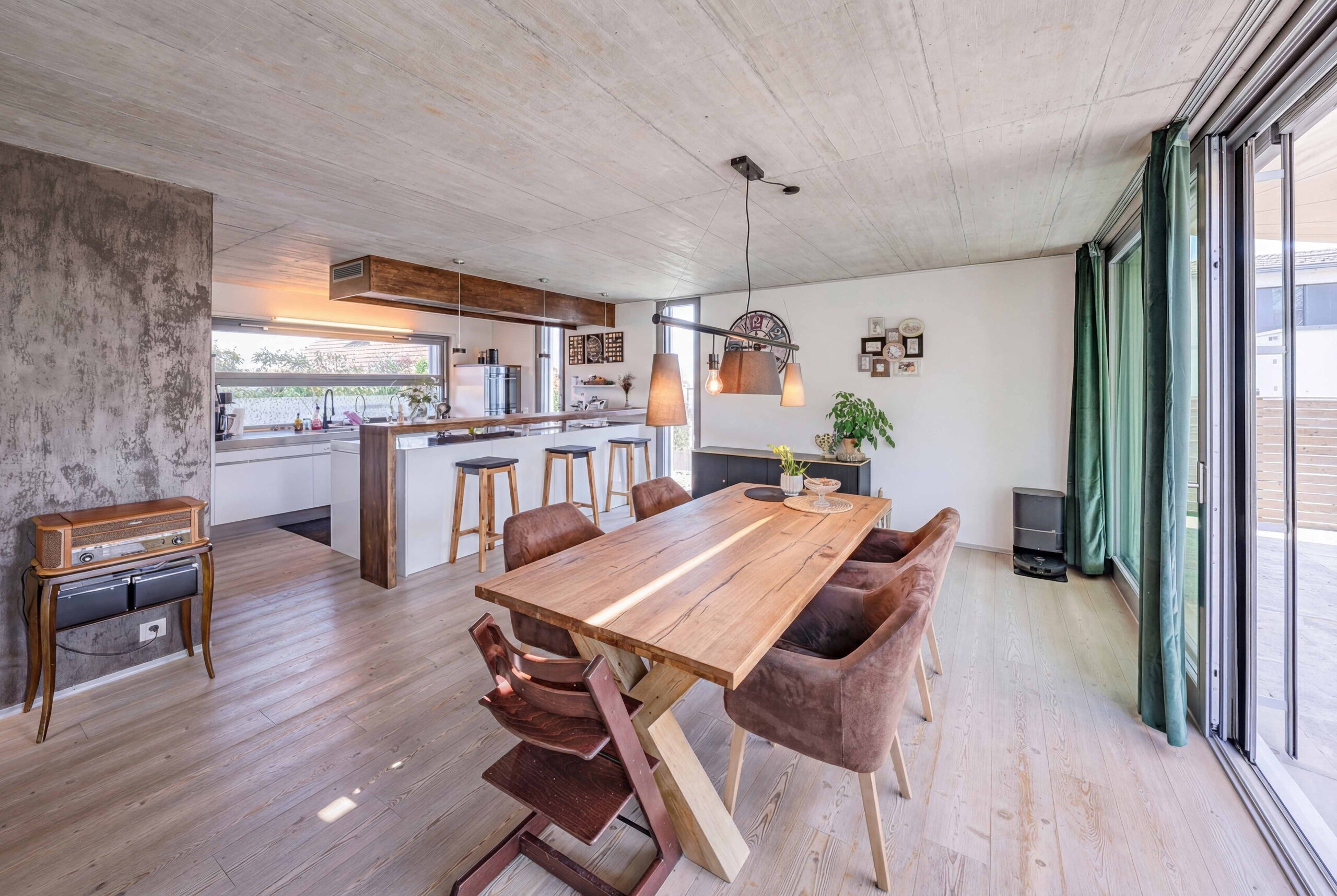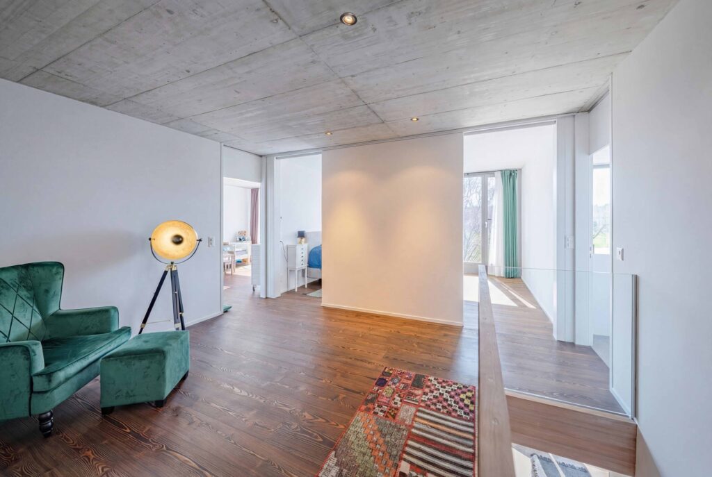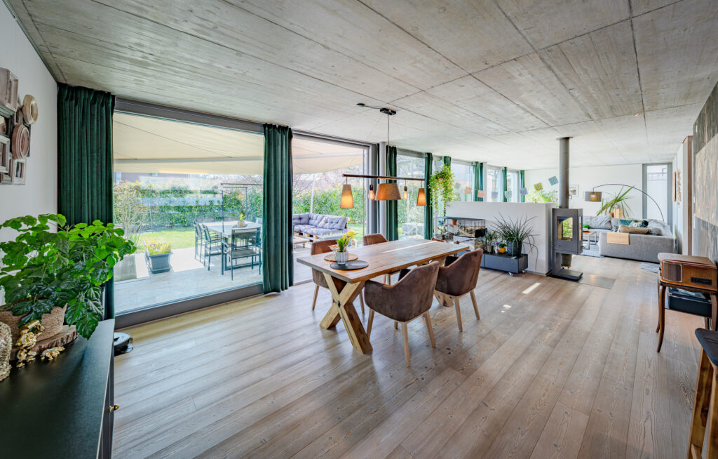 Dieses grosszügige 7 Zimmer Einfamilienhaus in Jegenstorf verbindet moderne Architektur, durchdachte Raumgestaltung und zeitgemässe Haustechnik auf überzeugende Weise. Auf rund 240 m² Wohnfläche erwartet Sie ein helles und offenes Wohnkonzept, das dank optimaler Südausrichtung und grosszügigen Fensterflächen von natürlichem Licht durchflutet wird. Die Kombination aus Sichtbetondecken und warmen Holzböden schafft dabei eine stilvolle und gleichzeitig behagliche Atmosphäre.