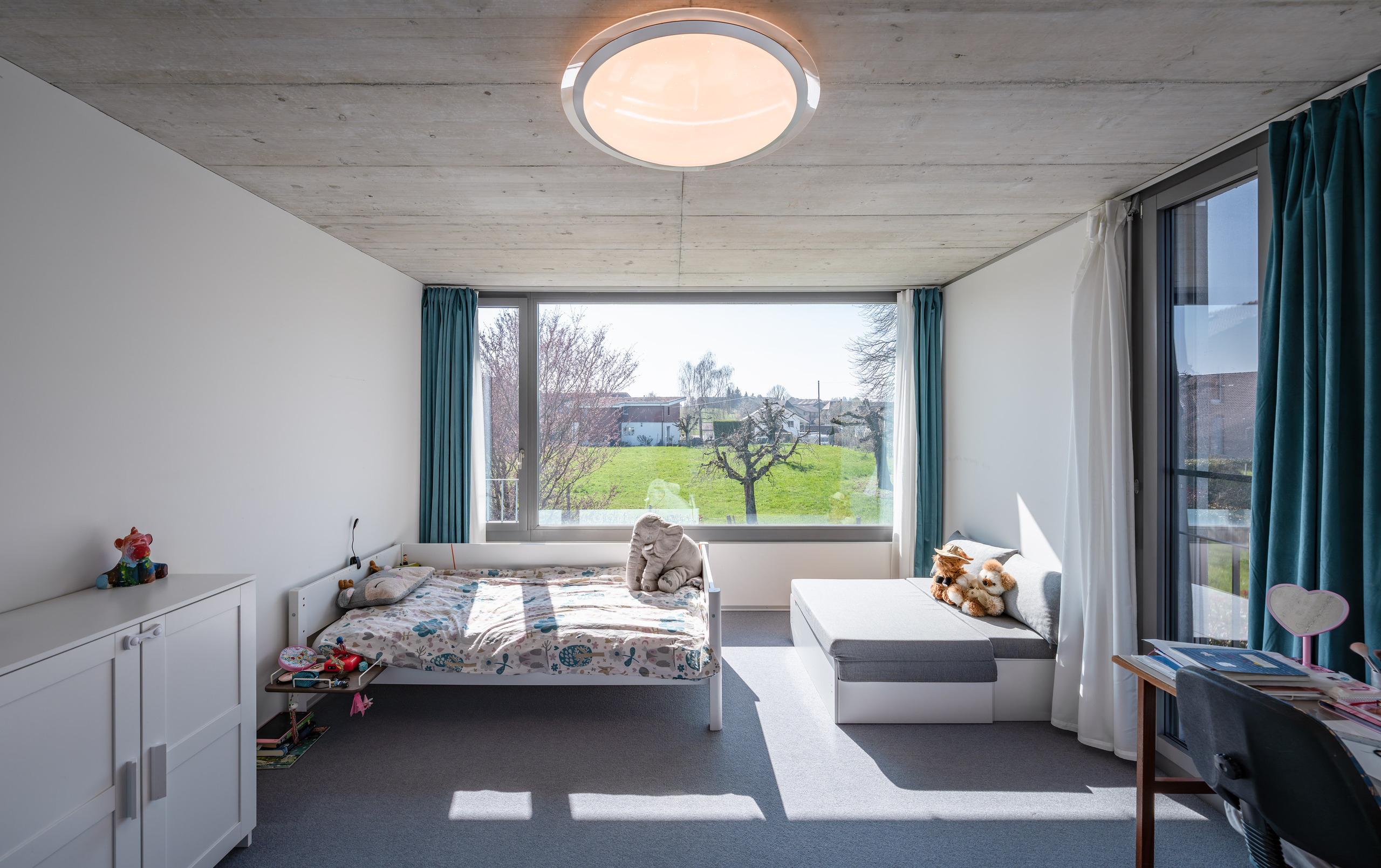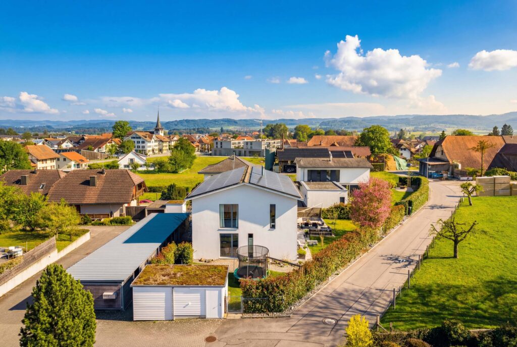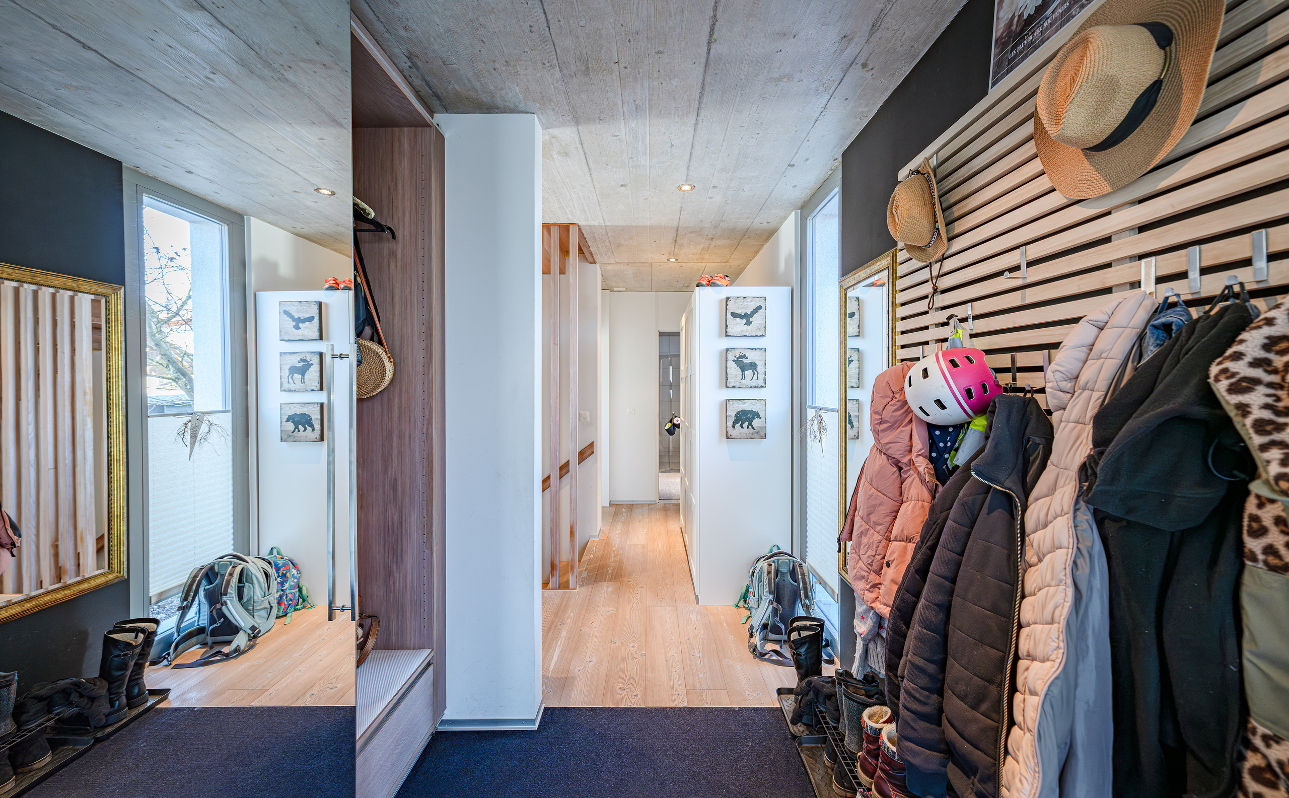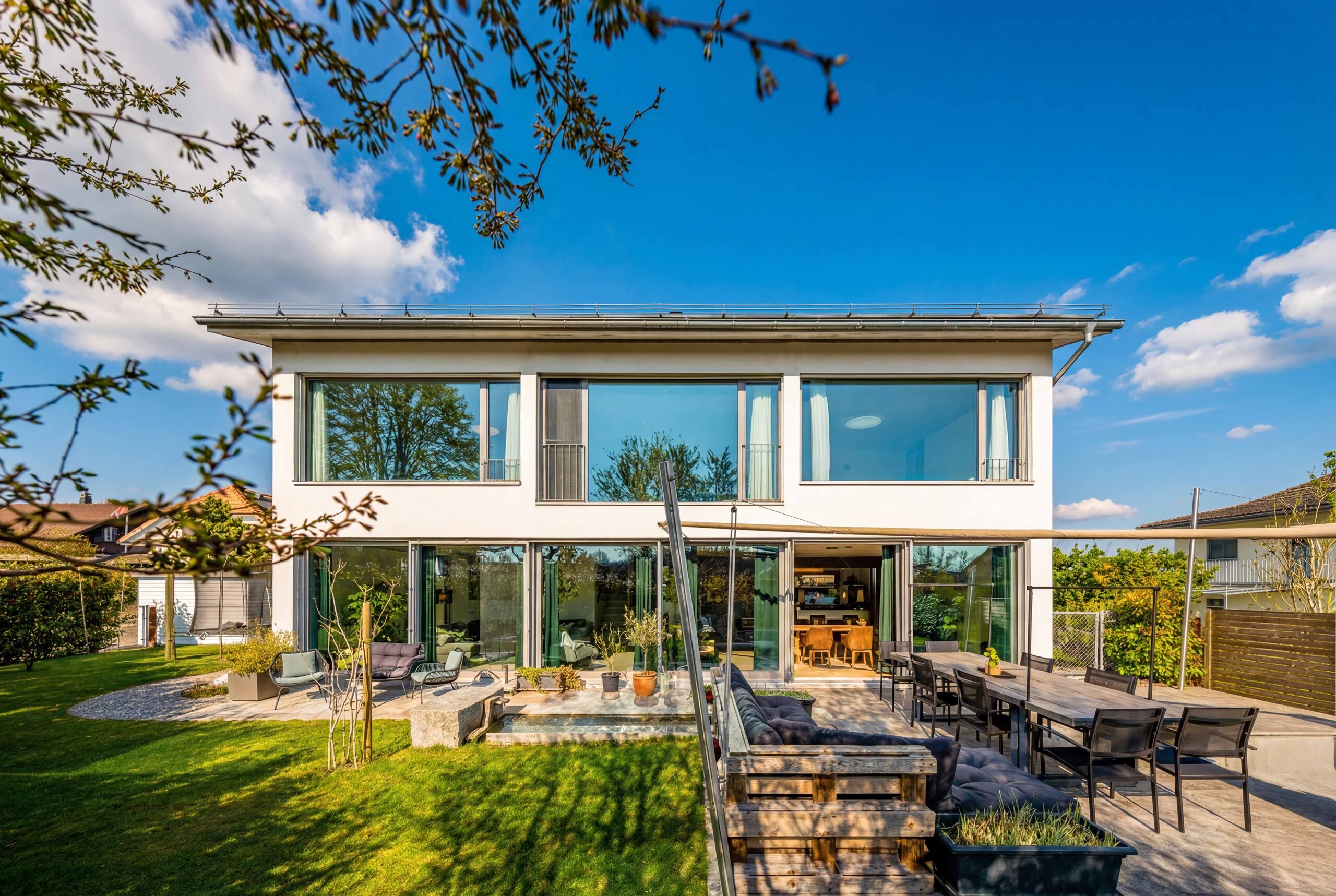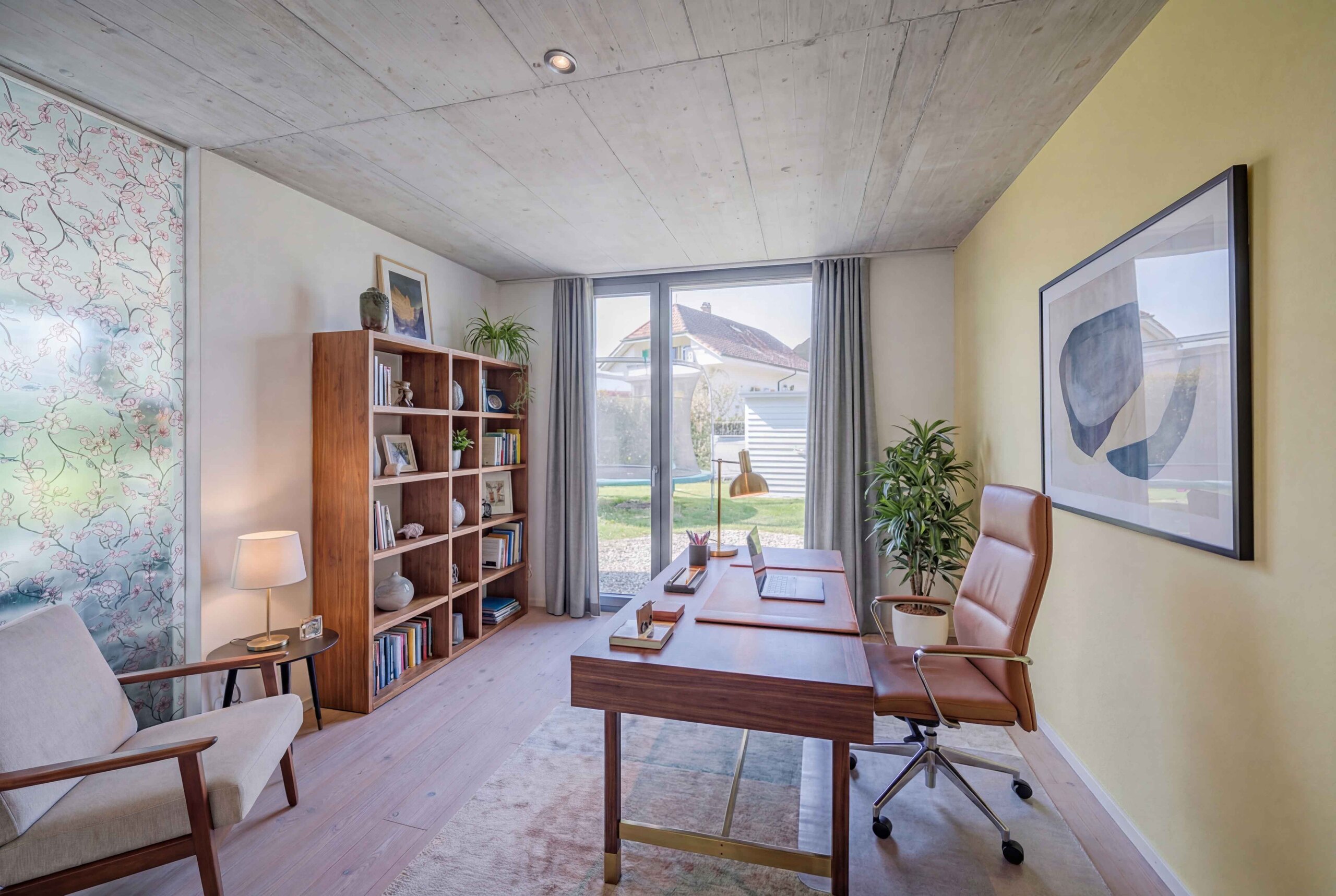 Dieses grosszügige 7 Zimmer Einfamilienhaus in Jegenstorf verbindet moderne Architektur, durchdachte Raumgestaltung und zeitgemässe Haustechnik auf überzeugende Weise. Auf rund 240 m² Wohnfläche erwartet Sie ein helles und offenes Wohnkonzept, das dank optimaler Südausrichtung und grosszügigen Fensterflächen von natürlichem Licht durchflutet wird. Die Kombination aus Sichtbetondecken und warmen Holzböden schafft dabei eine stilvolle und gleichzeitig behagliche Atmosphäre.