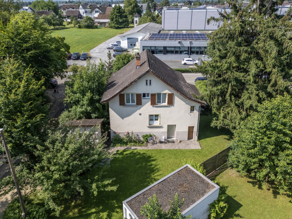 Vier Wohneinheiten auf 379 m² Wohnfläche, zusätzliche Bürofläche, grosses Grundstück mit Garten, beheiztem Schwimmbad und Sauna. Laufend renoviert, inkl. Garage und Aussenparkplätzen.