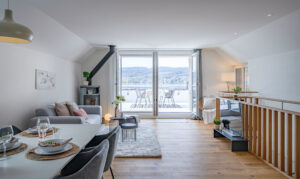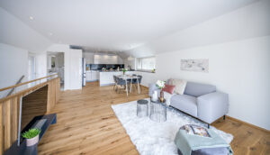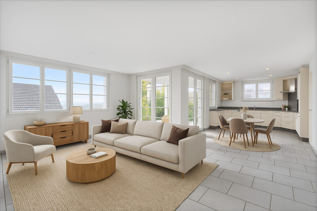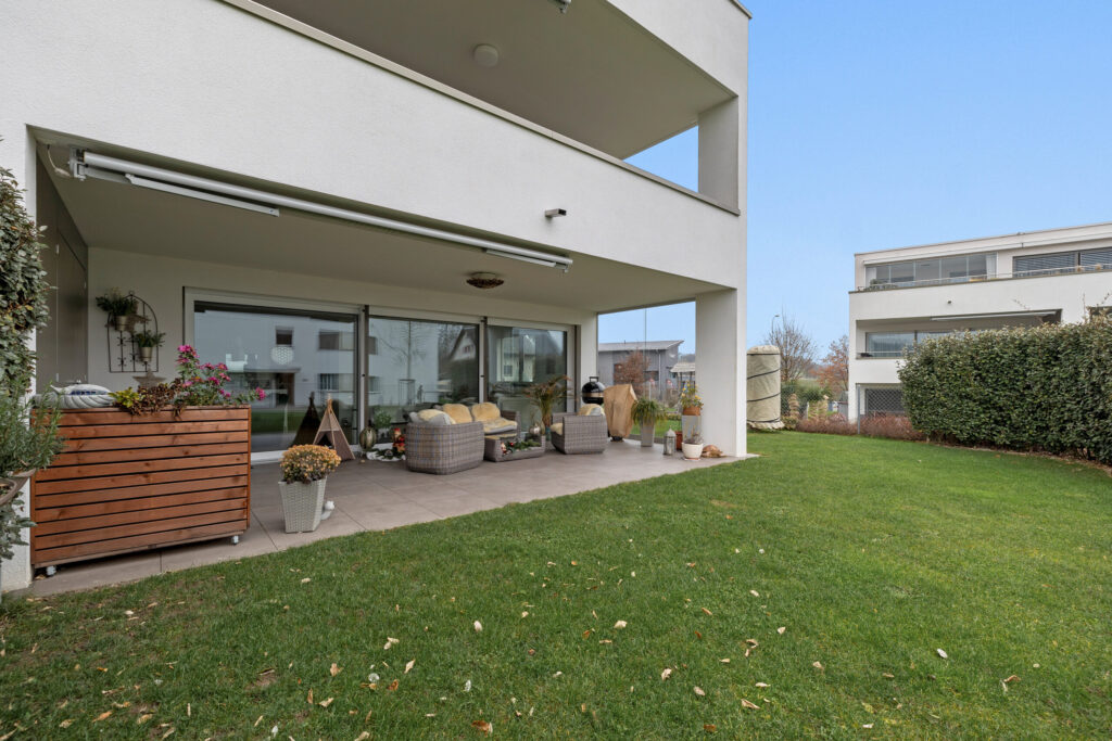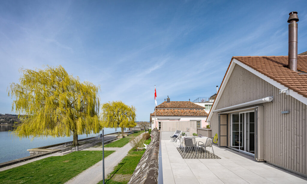Clever aufgeteiltes 5.5-Zimmer-Reihenhaus nahe der Altstadt von Diessenhofen mit 125 m² Wohnfläche auf vier Geschossen. Heller Wohnbereich mit Cheminée und hoher Raumwirkung, praktische U-Küche und vielseitiges Galeriezimmer im Dachgeschoss. Zwei grosse Balkone mit Blick auf Altstadt und Innenhof, pflegeleichter Garten, sehr grosse Garage plus Aussenabstellplatz.