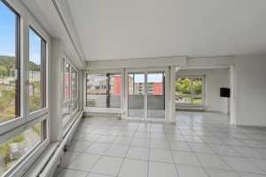 Diese elegante Dachwohnung bietet 114 m² Wohnfläche, einen hellen Wohnbereich mit Schwedenofen, einen gedeckten Balkon mit Blumenbeet sowie zwei Nasszellen (Bad/WC mit Dusche und Gäste-WC). Dank Sanierungen 2020/2022 (Bad, Küchengeräte, Wärmepumpe) präsentiert sich die Wohnung in gepflegtem Zustand. Wärmepumpe, Bodenheizung, Keller, Abstellraum und Velokeller runden das Angebot ab. Zwei Einstellhallenplätze können für je CHF 30’000.– dazu gekauft werden. Ruhige Lage mit optimaler Anbindung nach Bern, Zürich und Basel.