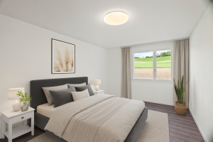 95 m² Wohnfläche, elegante Innenarchitektur, grosse Schlafzimmer, zwei Nasszonen und zwei Sitzplätze mit 46 m². Inklusive Keller und Einstellhallenplatz. Erweiterbar auf 4.5 Zimmer.