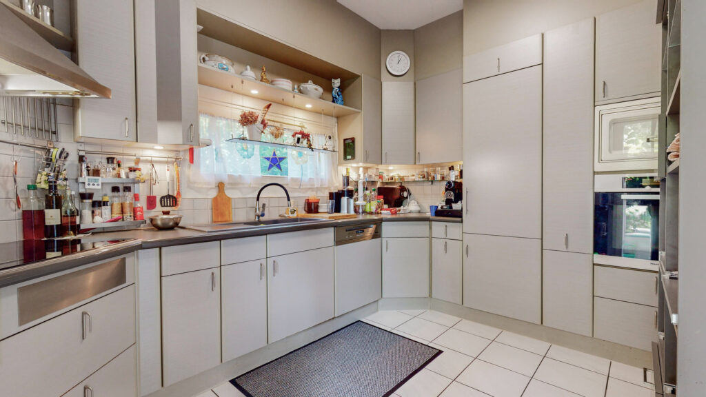 One highlight is the extremely spacious garden with arbor and pergola as well as three balconies on the upper floor, which provide different retreats in the outdoors . A double garage and a storage room are included in the purchase price.