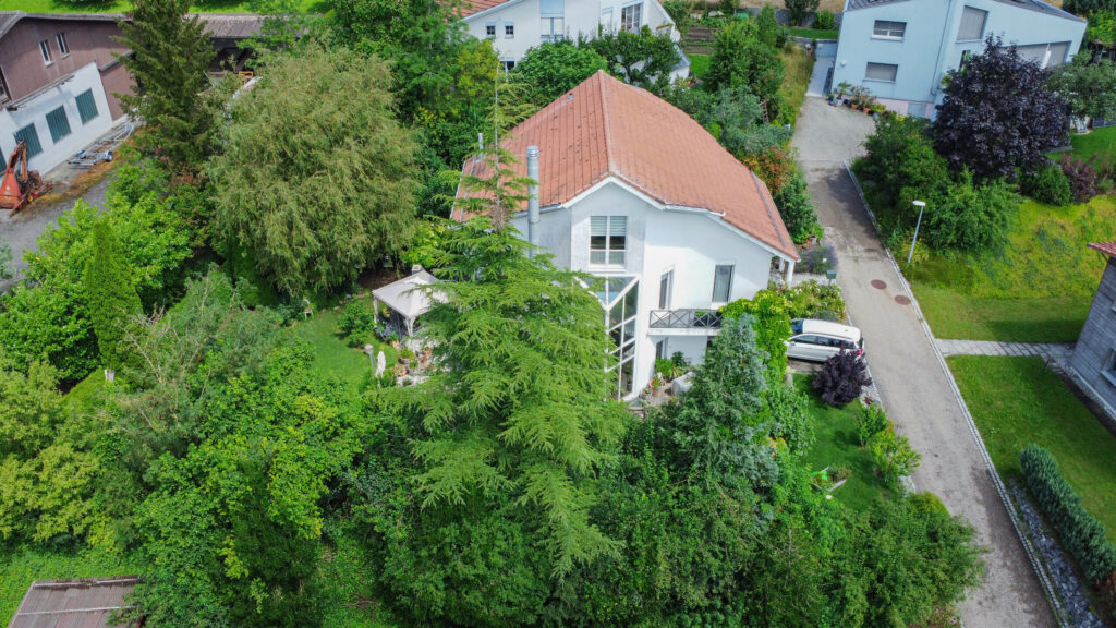 In Raperswilen we are selling an exceptionally large, detached house with right of residence, which with an impressive total usable area of 407 m² and an unobstructed Alpine view with 230° panorama inspires.