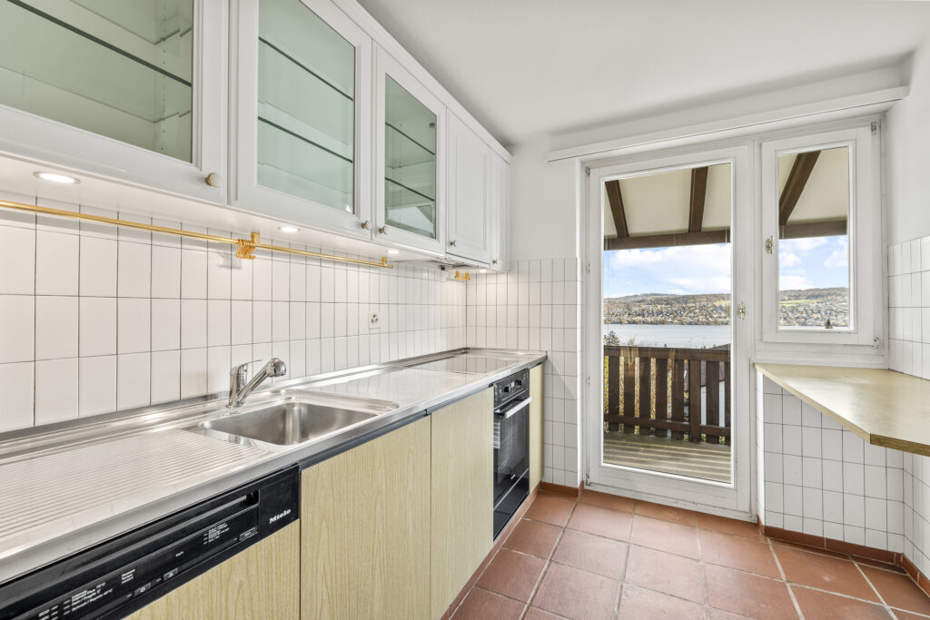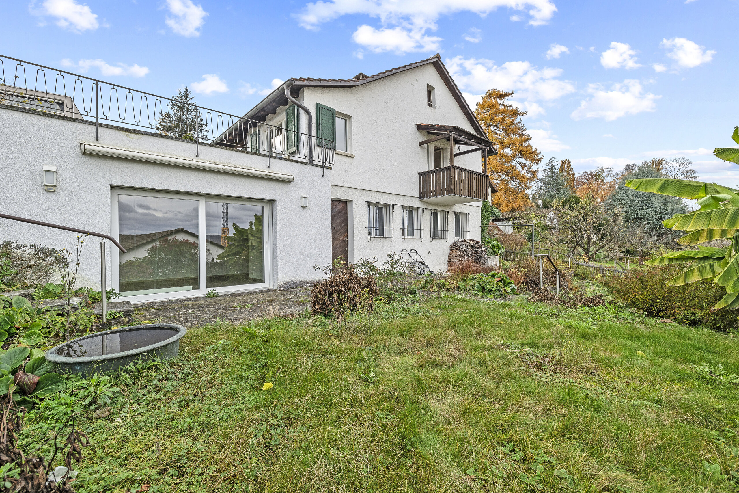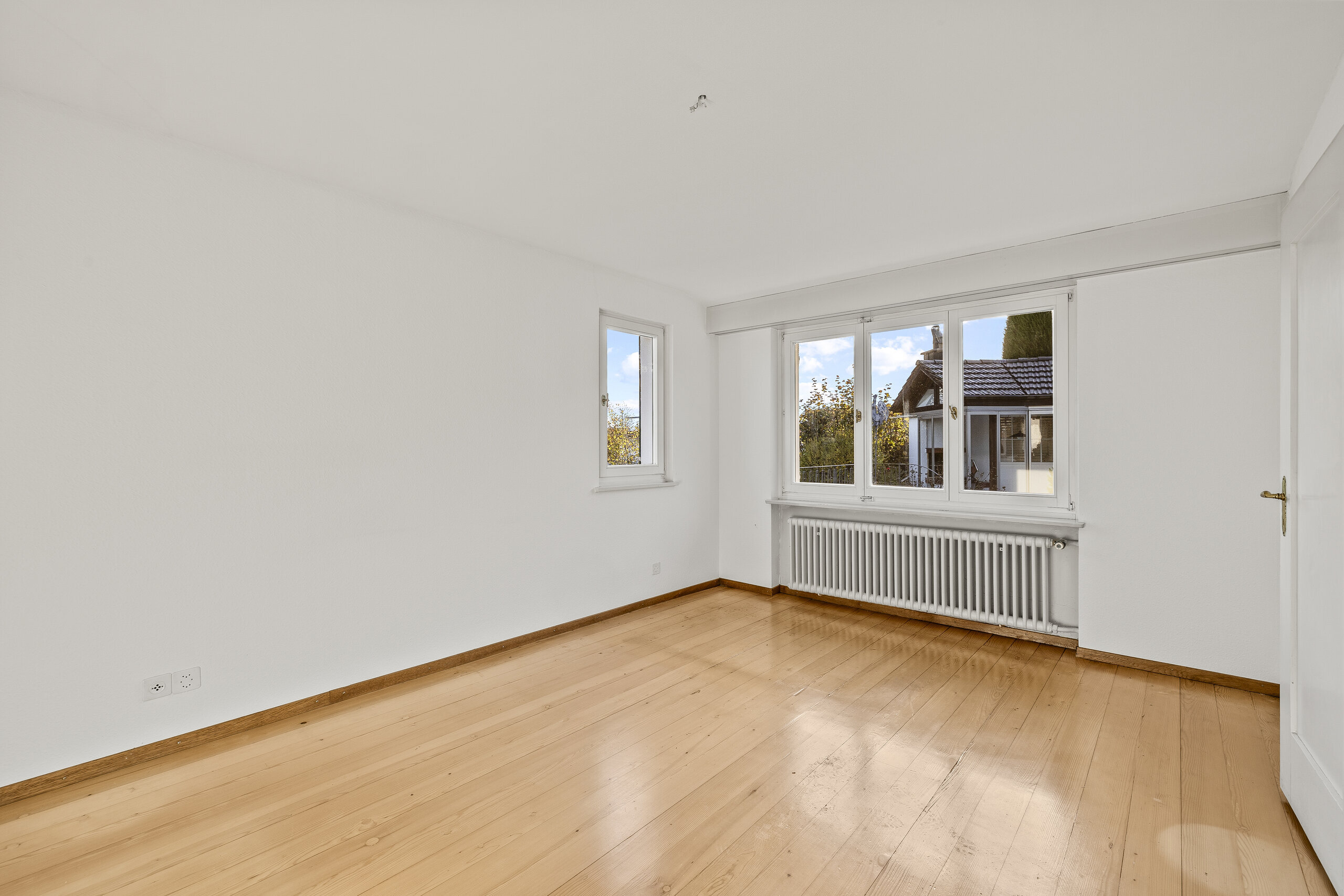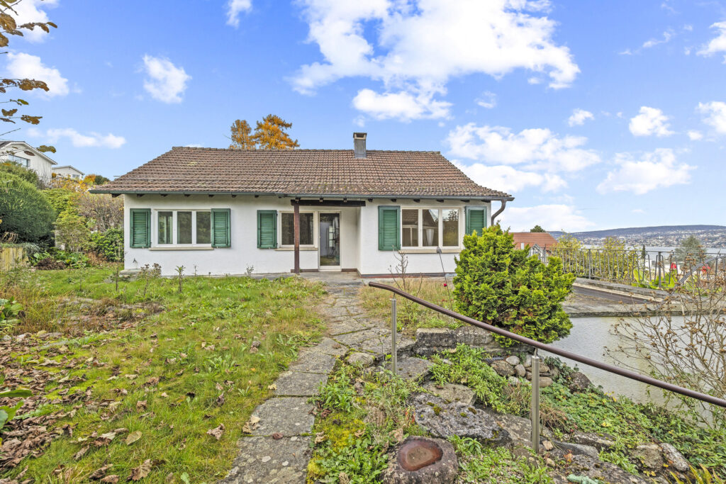 In Thalwil we rent this charming, detached family home with beautiful garden and breathtaking views over Lake Zurich. With a generous total usable area of 214 m², distributed over 5.5 rooms, ancillary rooms and two floors, the house offers plenty of space for families and couples with sophisticated requirements.