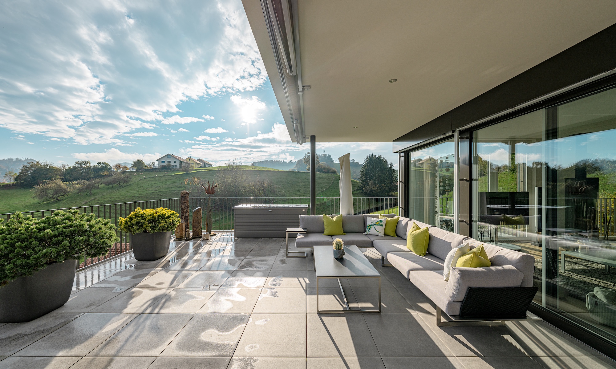 Particularly impressive is the huge, partially covered attic terrace with sun blinds, which gives you an incomparable view into the expanse - a perfect place to relax, enjoy and receive guests.