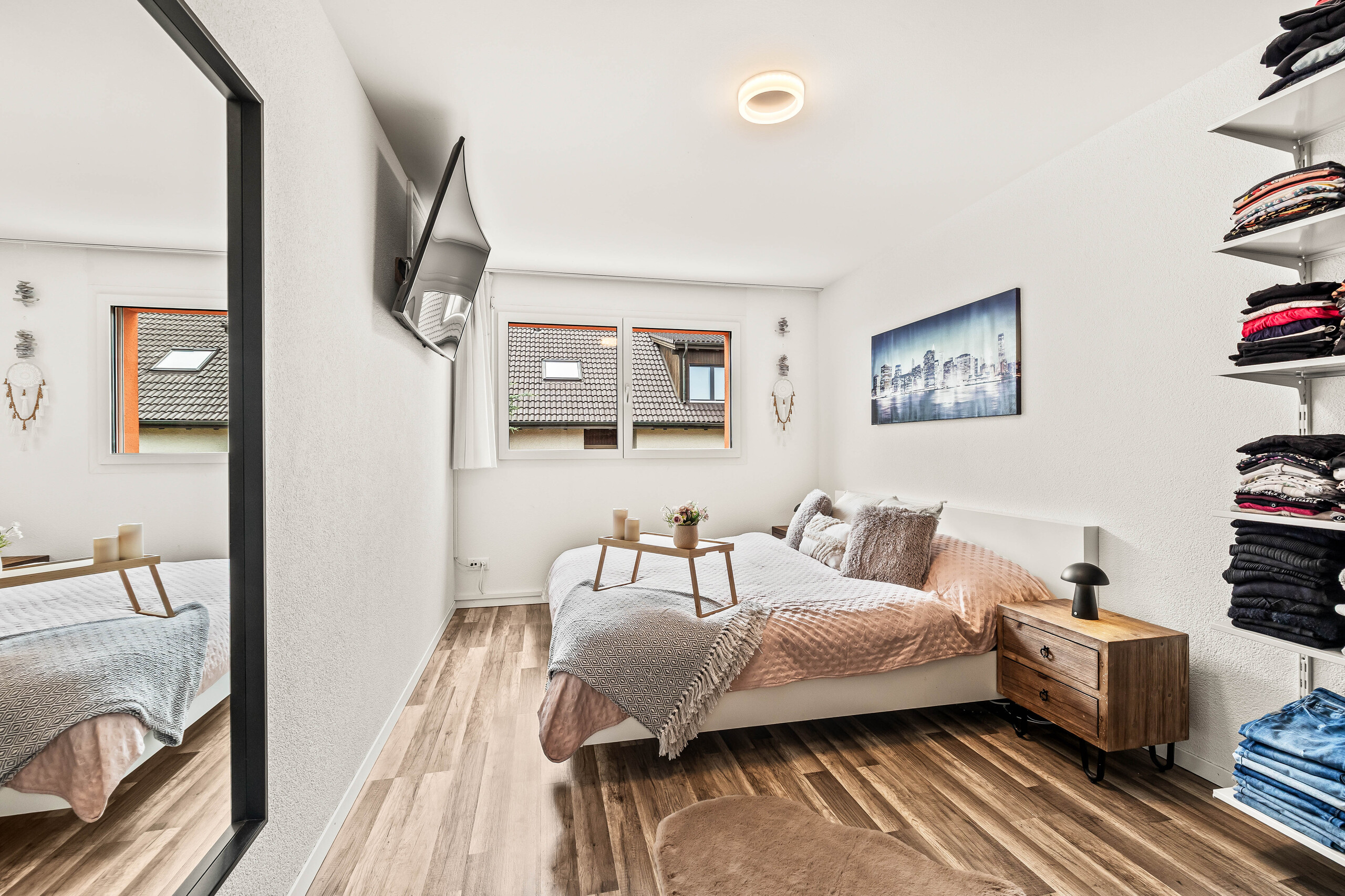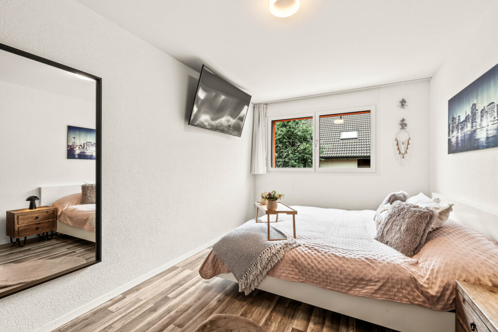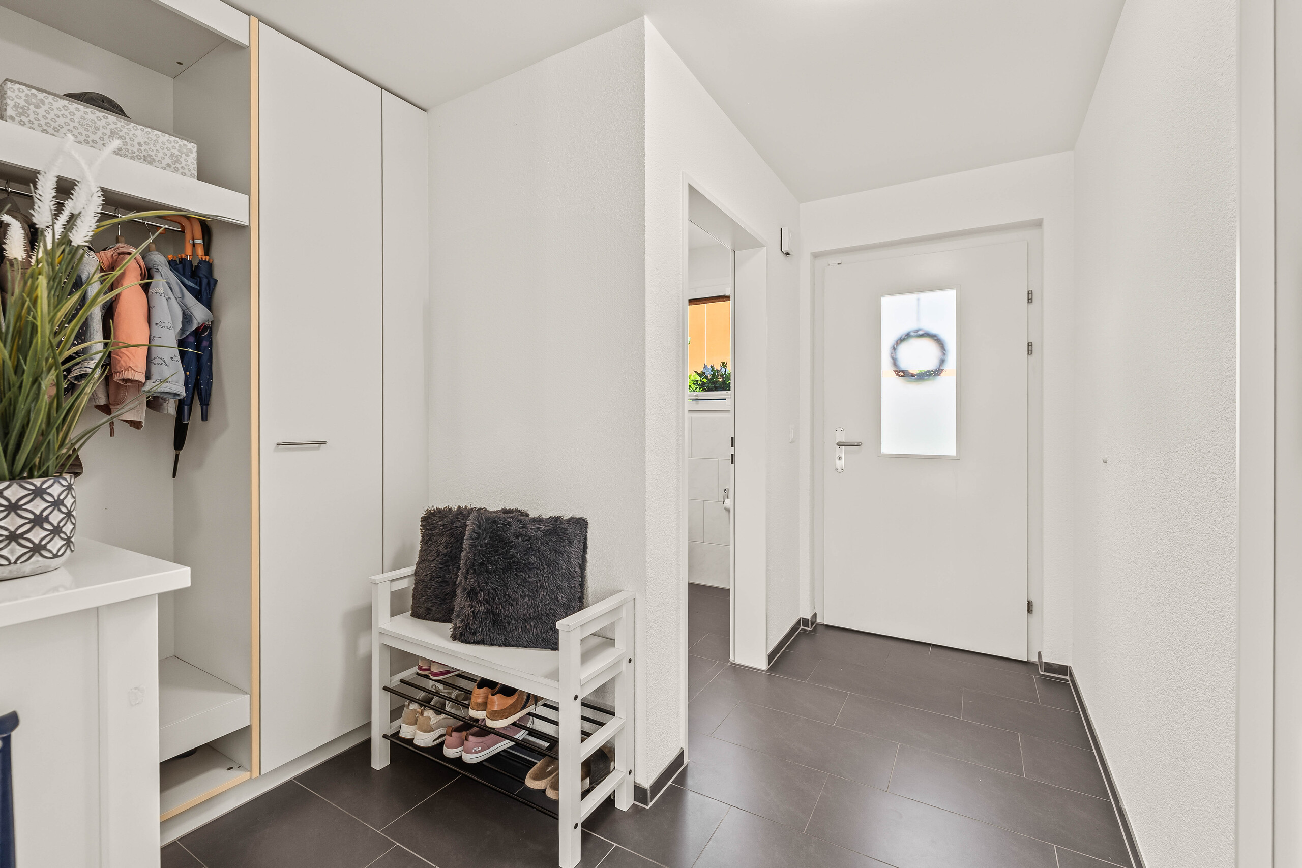 The open living and dining area is flooded with light and offers direct access to the terrace and the well-tended garden. The open kitchen with granite top and plenty of storage space blends harmoniously into the living concept . Two neat wet areas - a bathroom with shower/WC and a separate guest toilet - ensure comfort in everyday life.