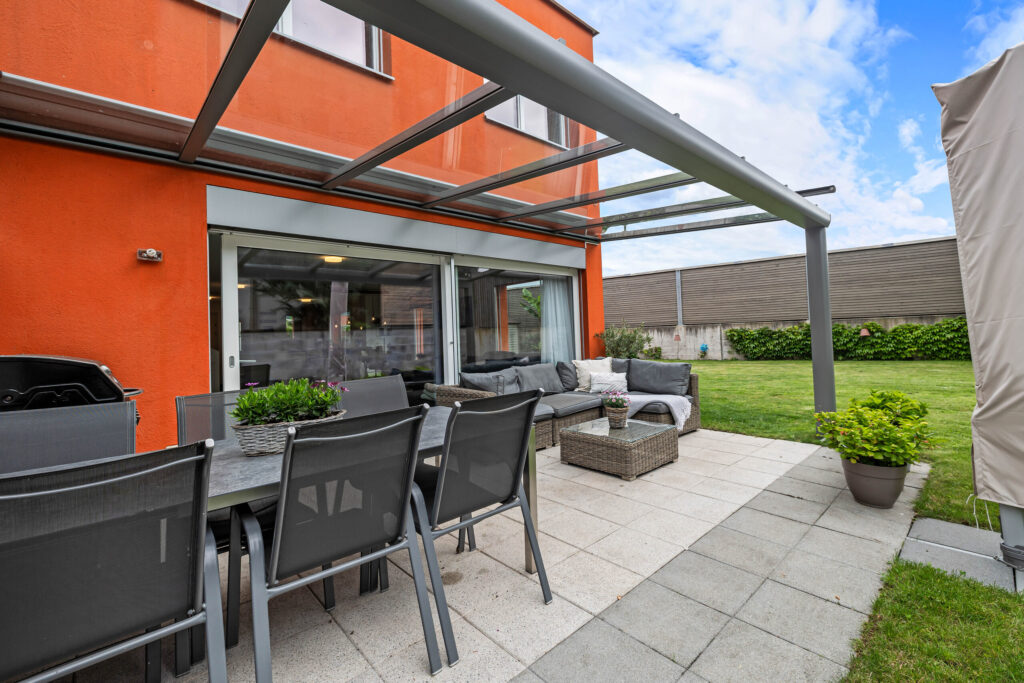 The covered terrace creates space for a lounge, a dining table or a barbecue and extends the living outdoors. The spacious garden with beautiful green space offers plenty of space for relaxation and leisure.