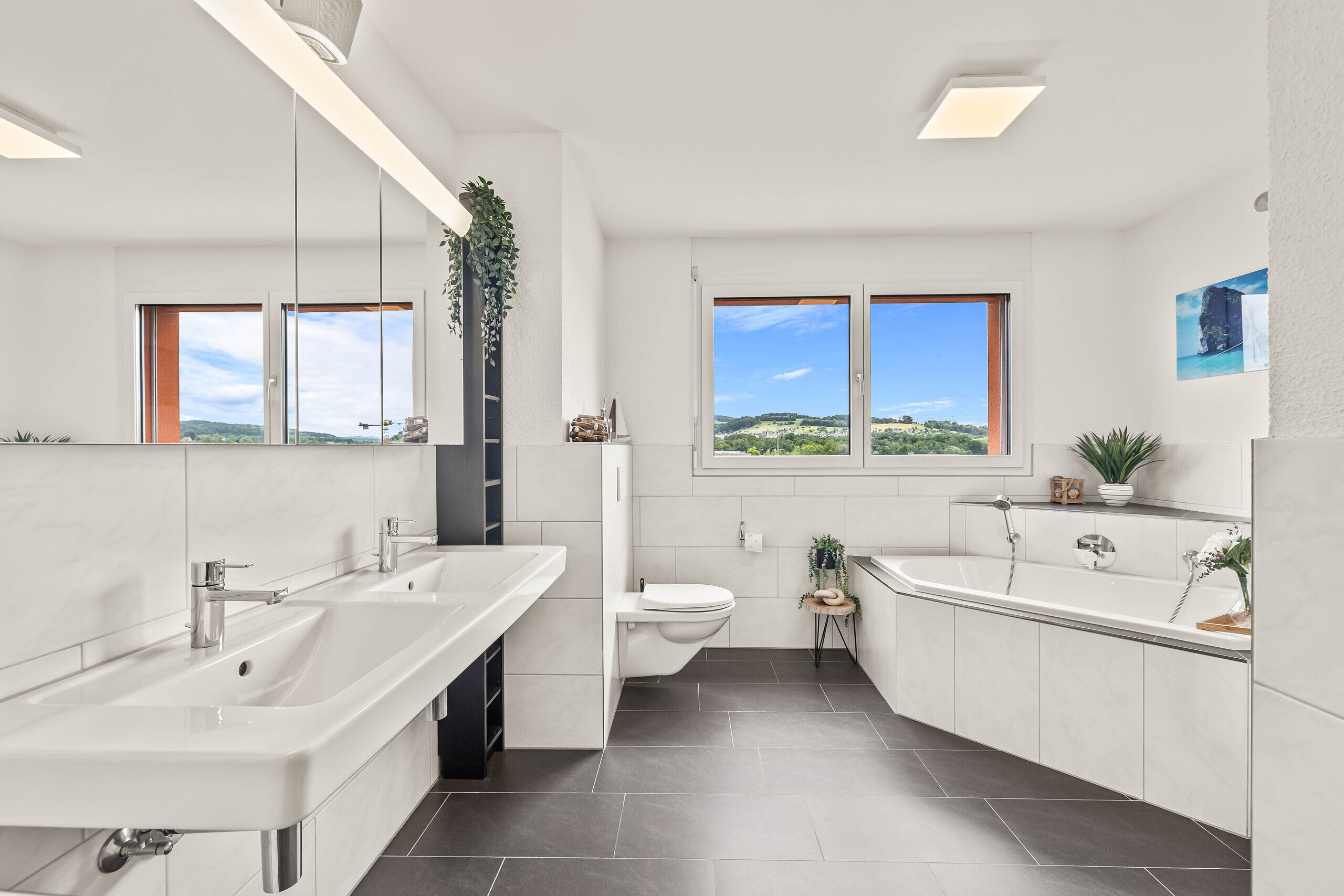 This modern semi-detached house impresses with its natural location, which nevertheless offers practical transport connections . With 208 m² of total usable space, distributed over 4.5 rooms, three floors and additional ancillary rooms, the house combines spaciousness, comfort and functionality.