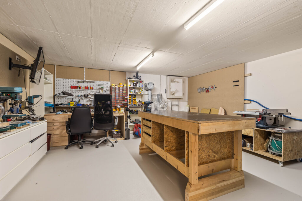 Practical ancillary rooms such as a large cellar and a workroom open up additional space and open space for creative ideas.Two indoor parking spaces can be purchased if required in addition to this.